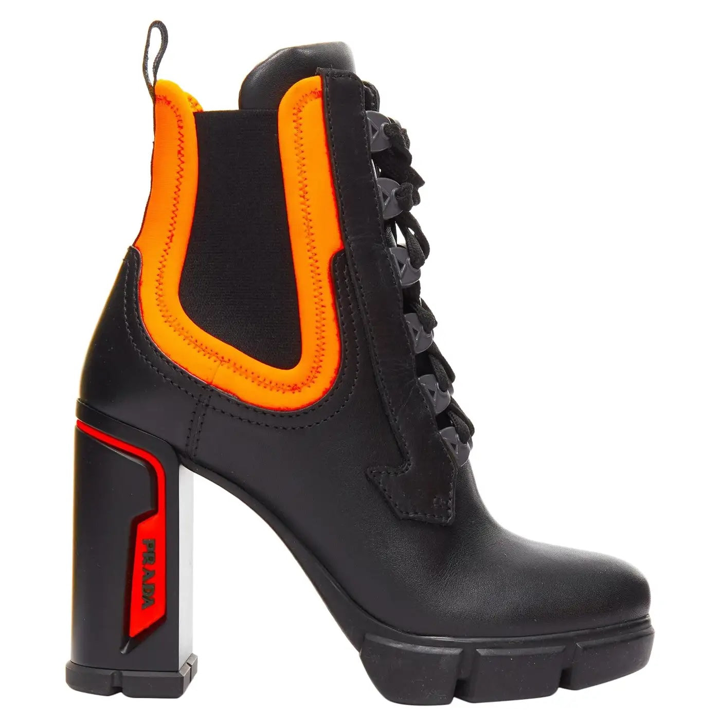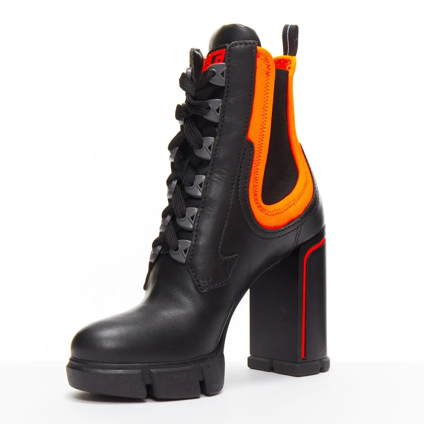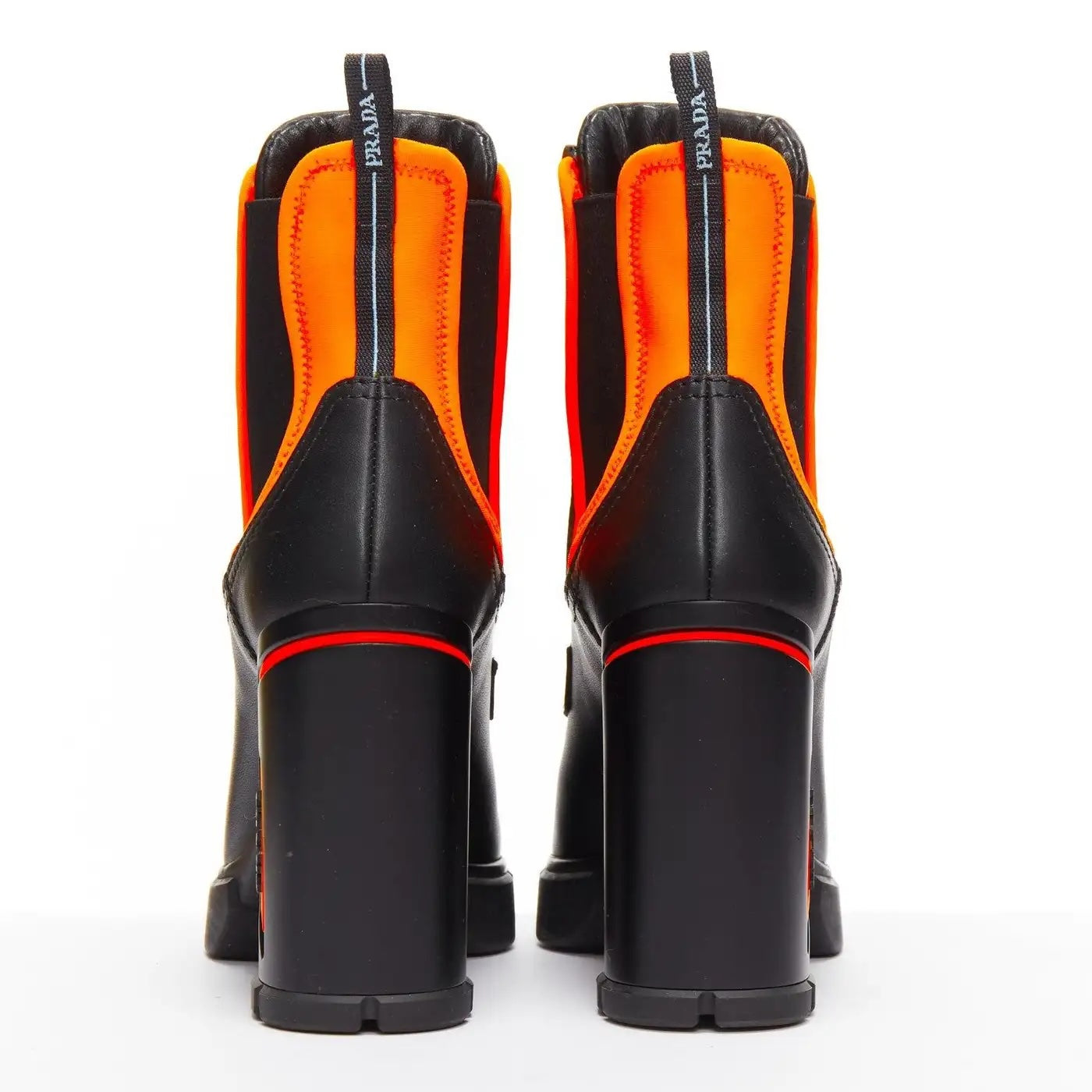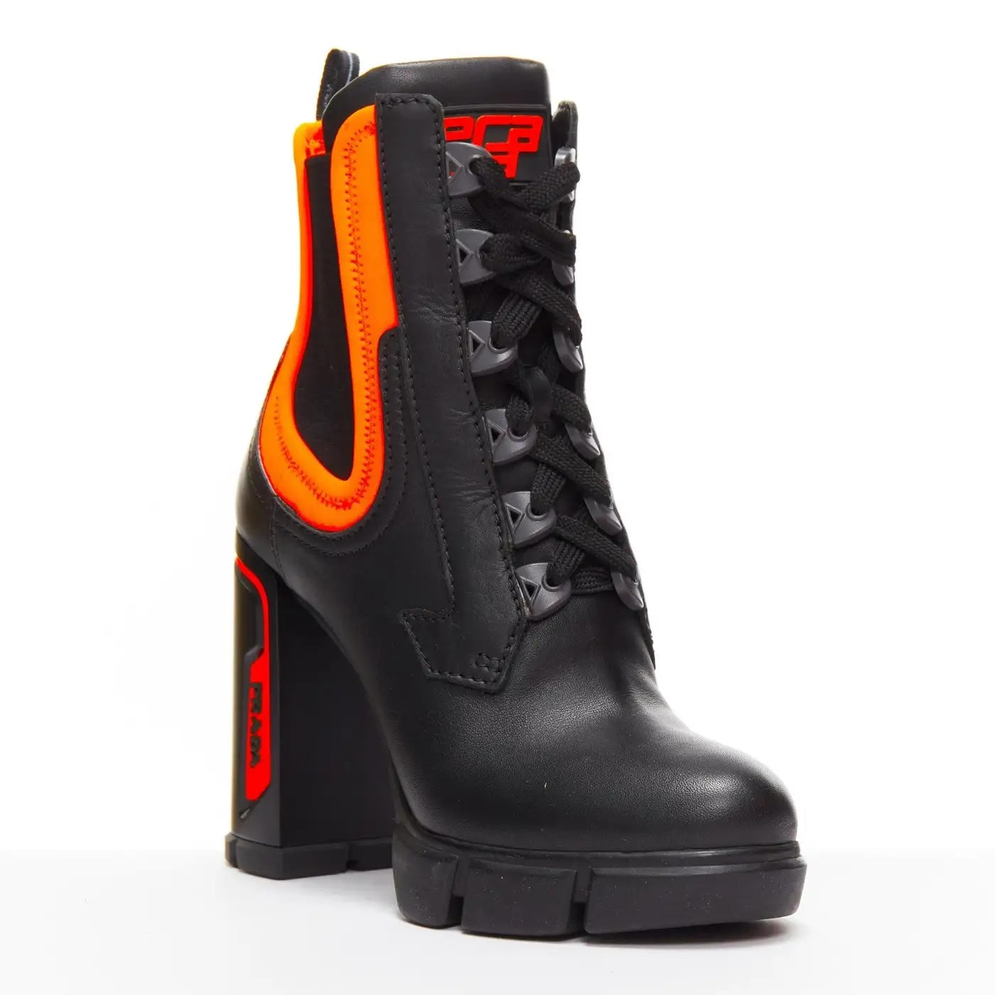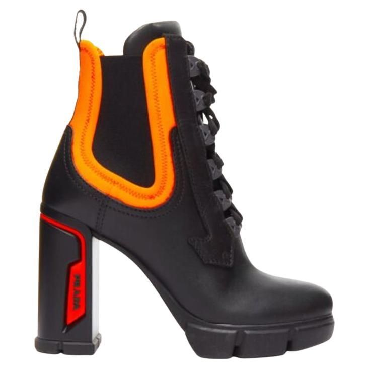 PRADA RUNWAY COLLECTION NEON NEOPRENE CALFSKIN LOGO BOOTS