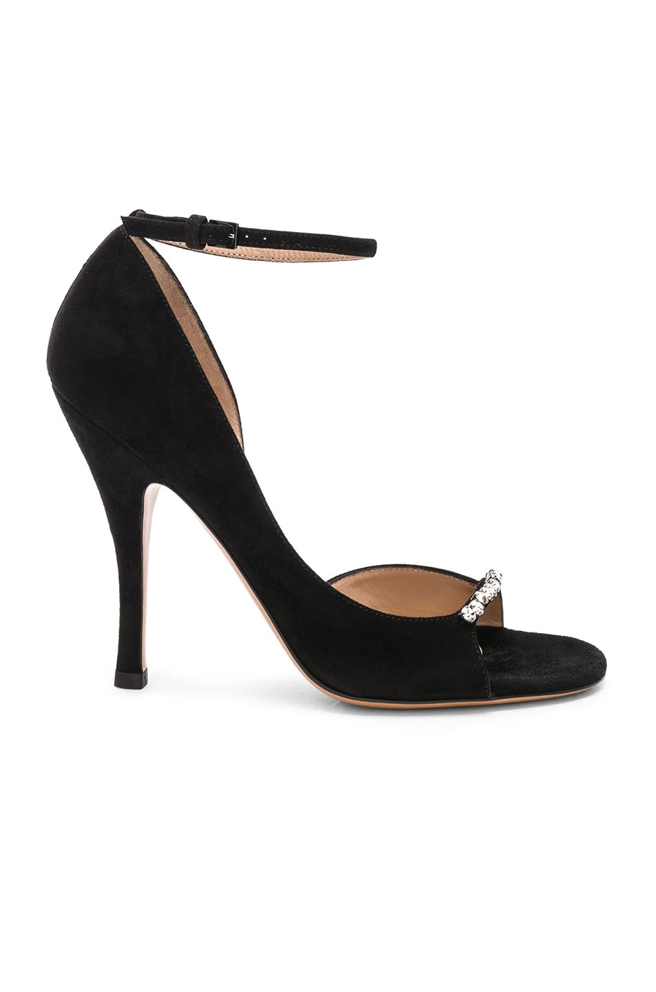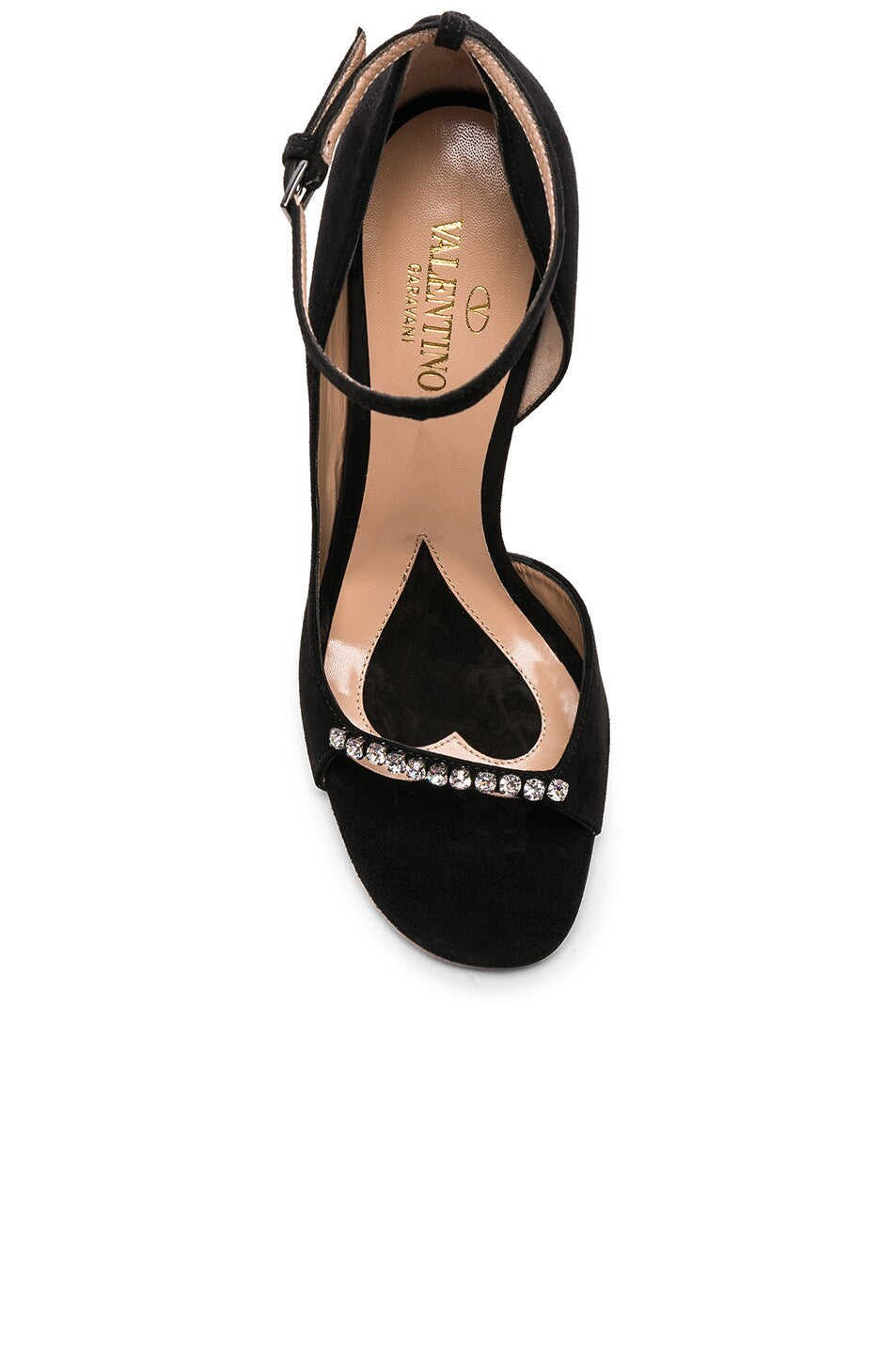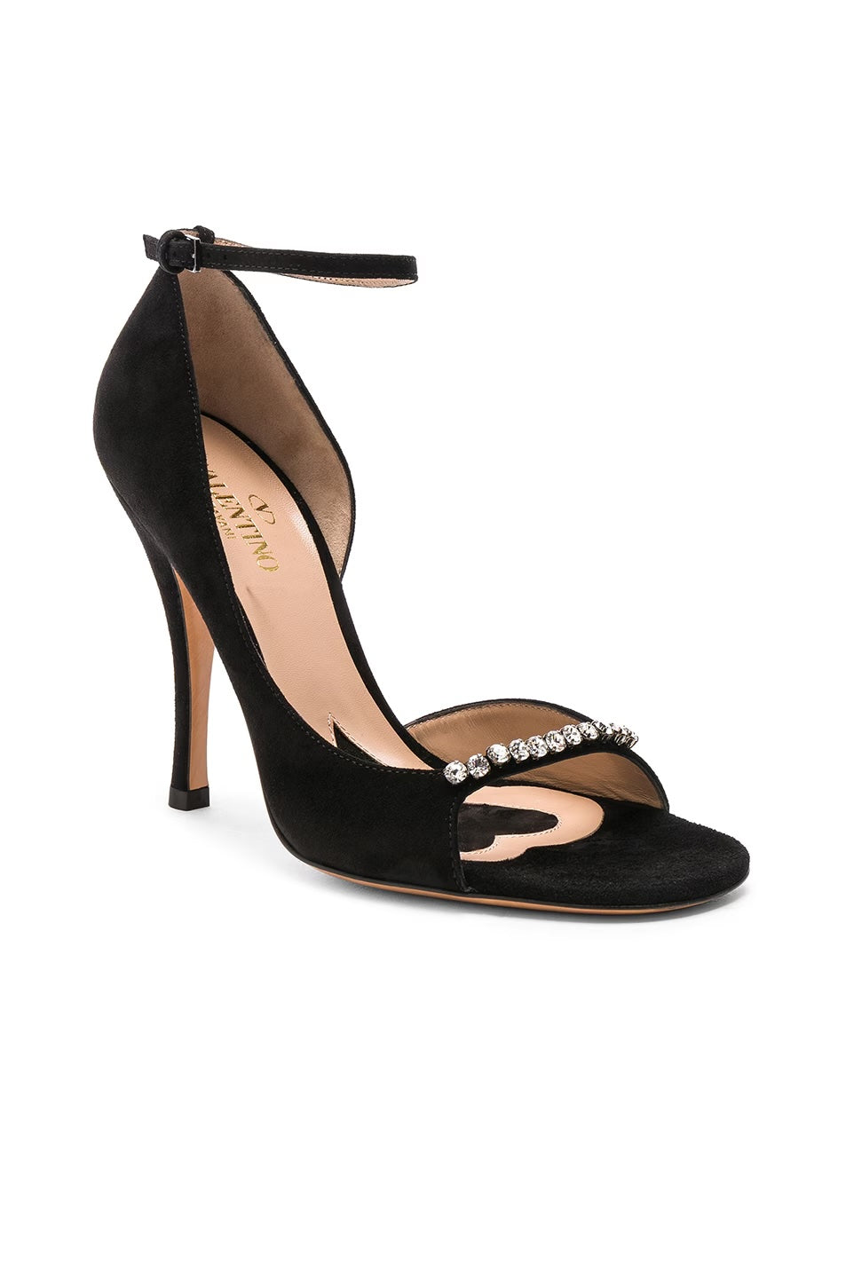 Step into glamour with these stunning Valentino Garavani heels, exquisitely crafted from rich suede and adorned with shimmering crystal embellishments. A perfect fusion of luxury and elegance, these heels are designed to catch the light—and attention—with every step.