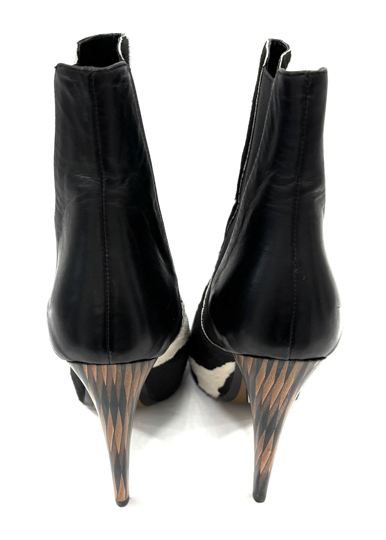 FENDI WOMEN'S BLACK AND WHITE LEATHER HIGH HEEL BOOTS