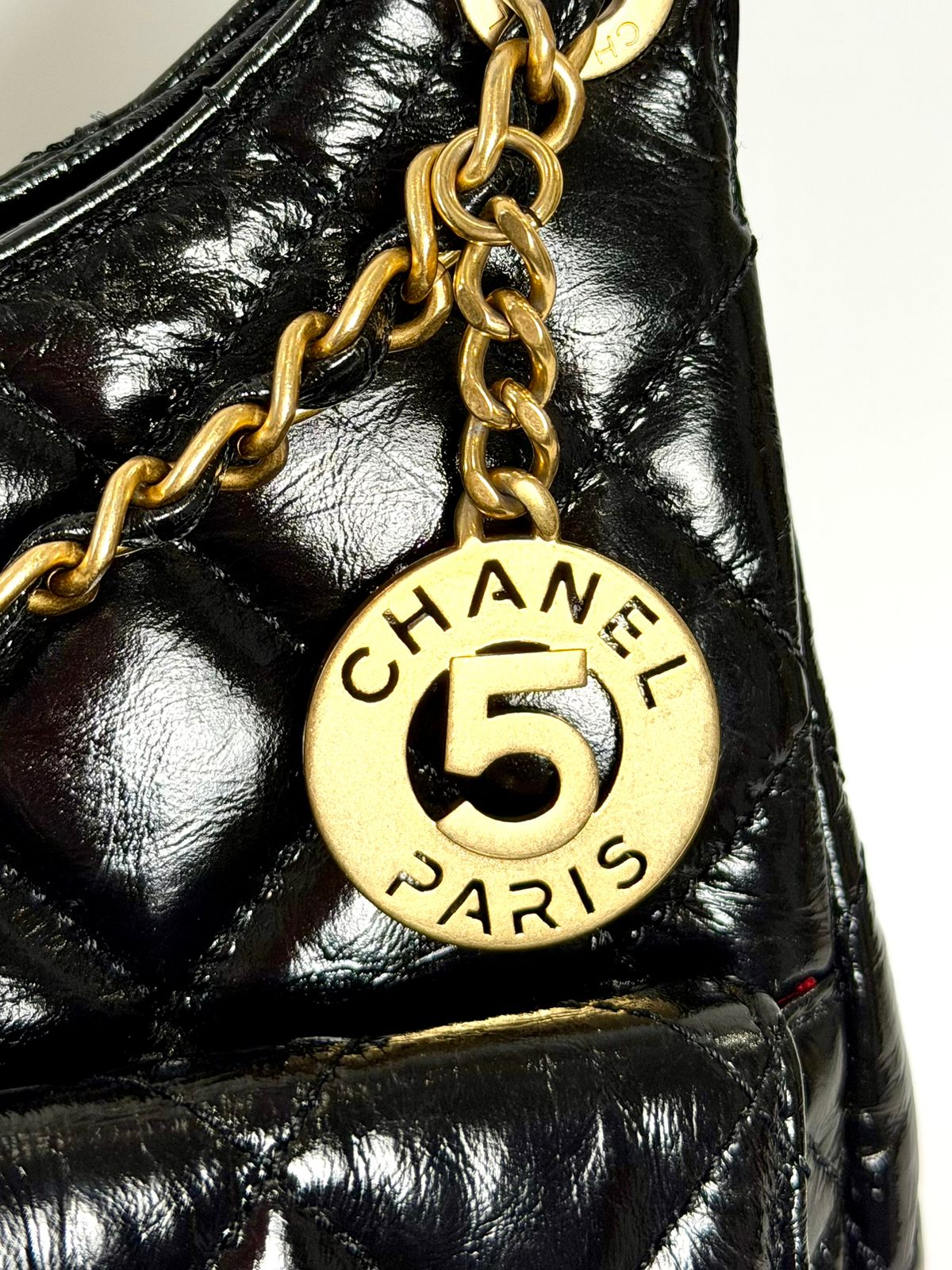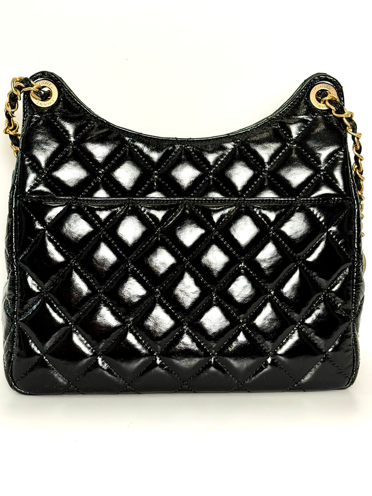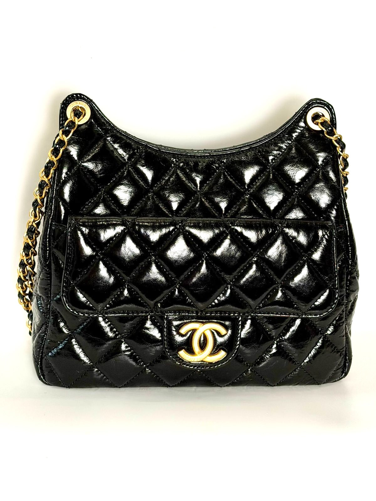 CHANEL CC SHINY CRUMPLED CALFSKIN QUILTED WAVY MEDIUM HOBO BAG