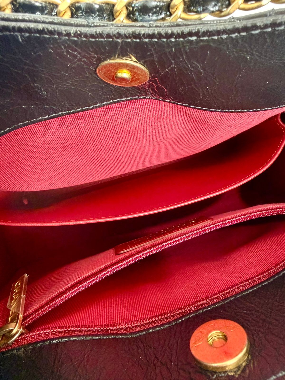 • Gold-tone CC hardware and chain-leather shoulder strap