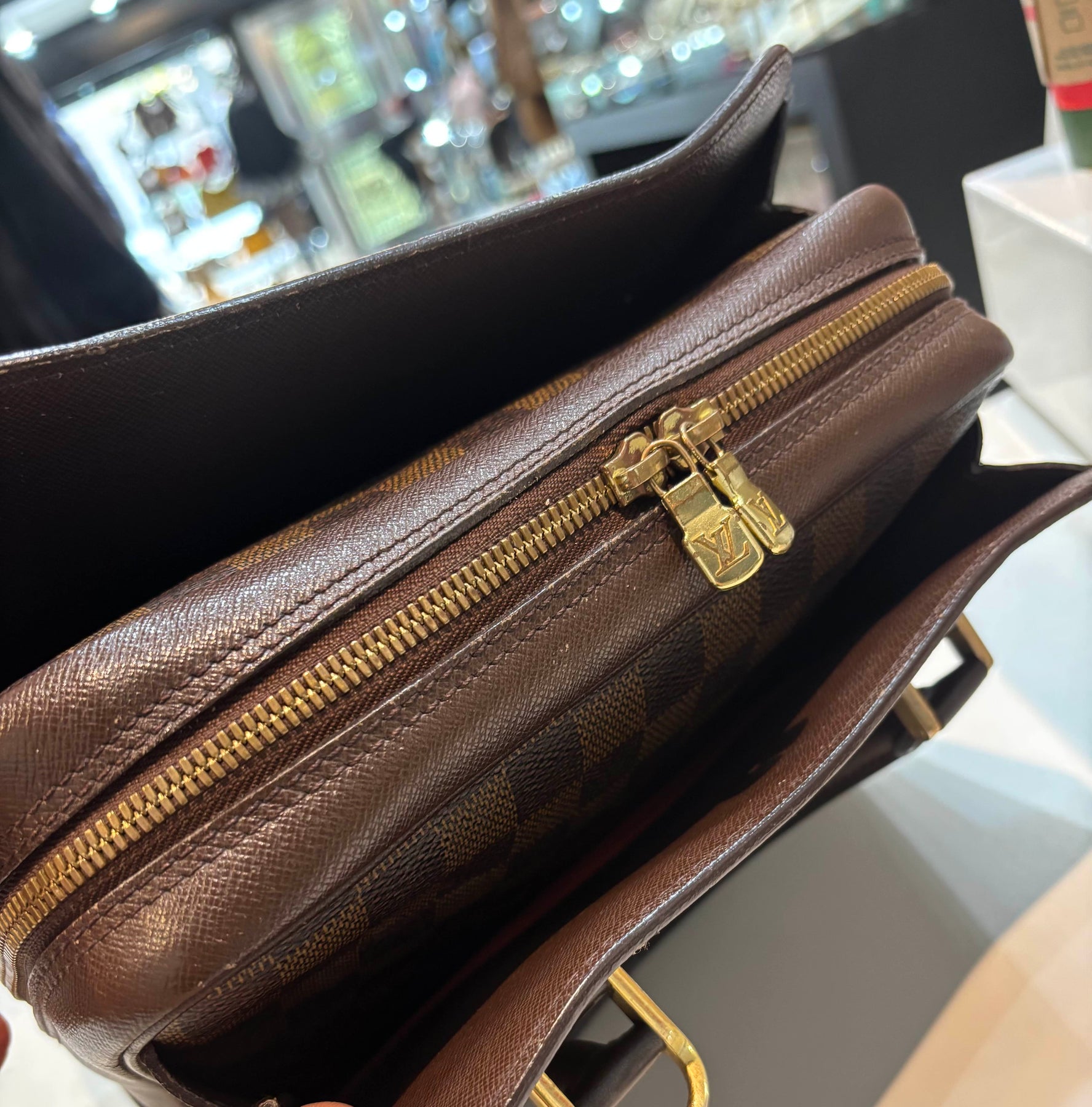 • Damier Ebene coated canvas body in two-tone brown check pattern