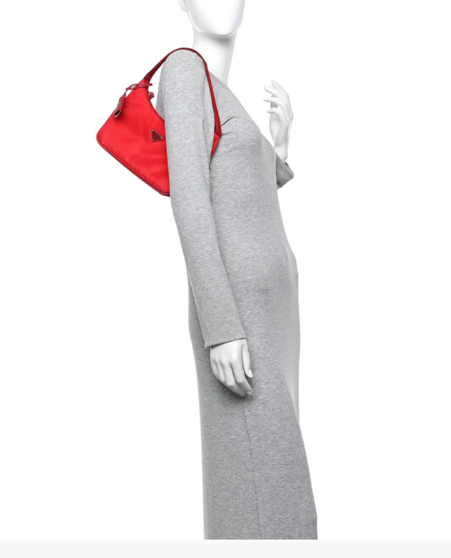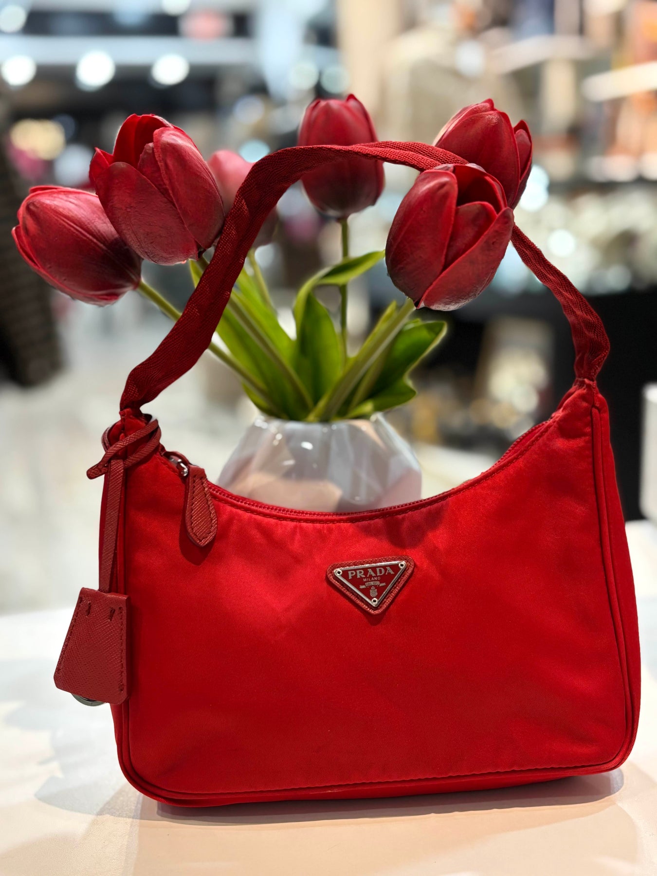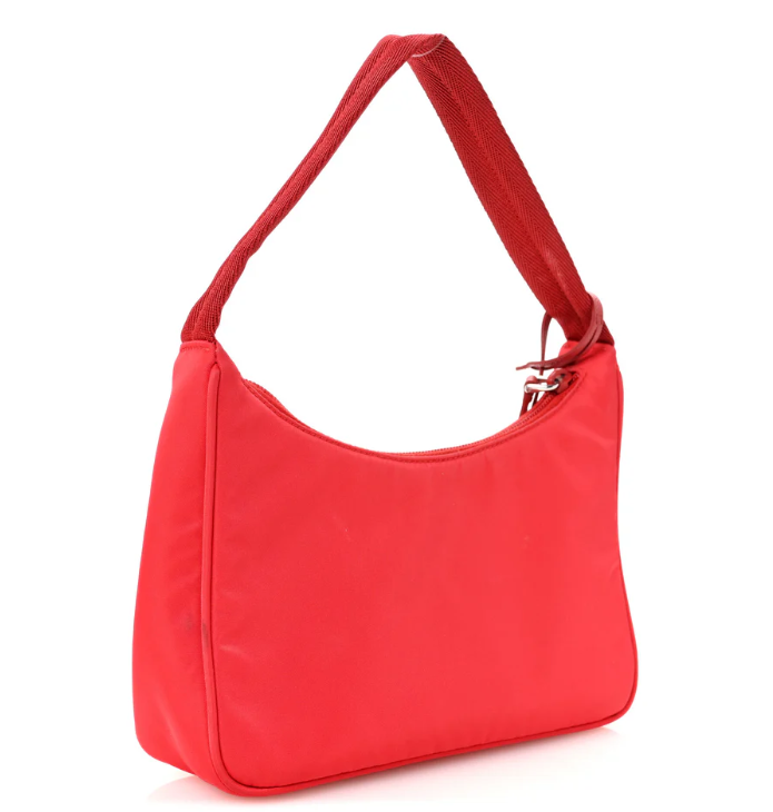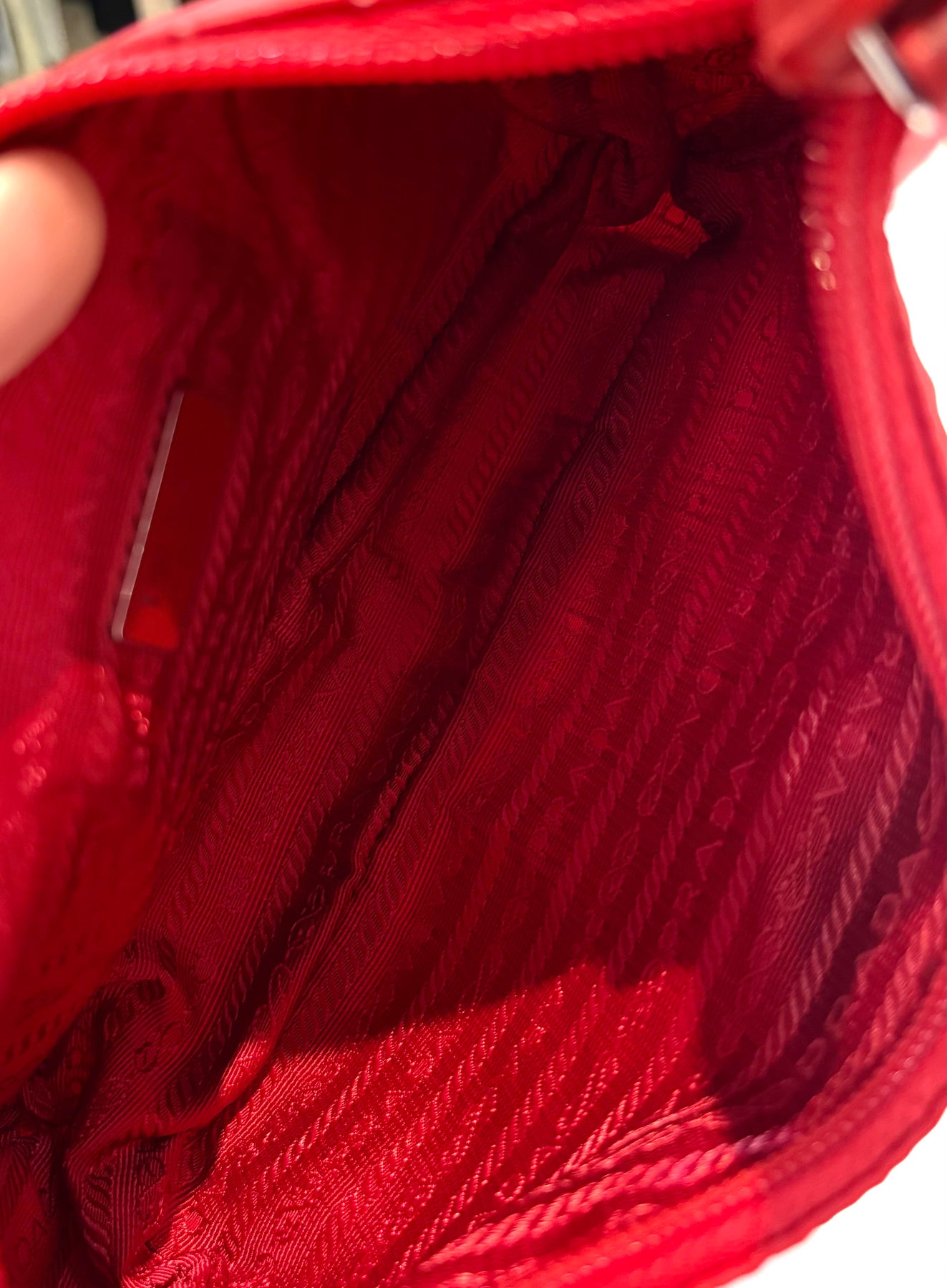 A perfect blend of contemporary style and iconic Italian craftsmanship, the Prada Red Nylon Shoulder Bag is crafted from durable, signature nylon fabric with sleek leather accents. Its bold red hue makes a striking statement, while the structured silhouette ensures both style and practicality. Designed with a comfortable shoulder strap and a secure zip closure, this bag offers a well-organized interior for daily essentials. Finished with the signature Prada logo plaque, it embodies effortless elegance, versatility, and timeless luxury.