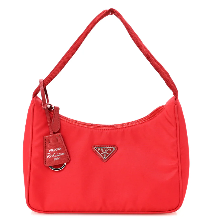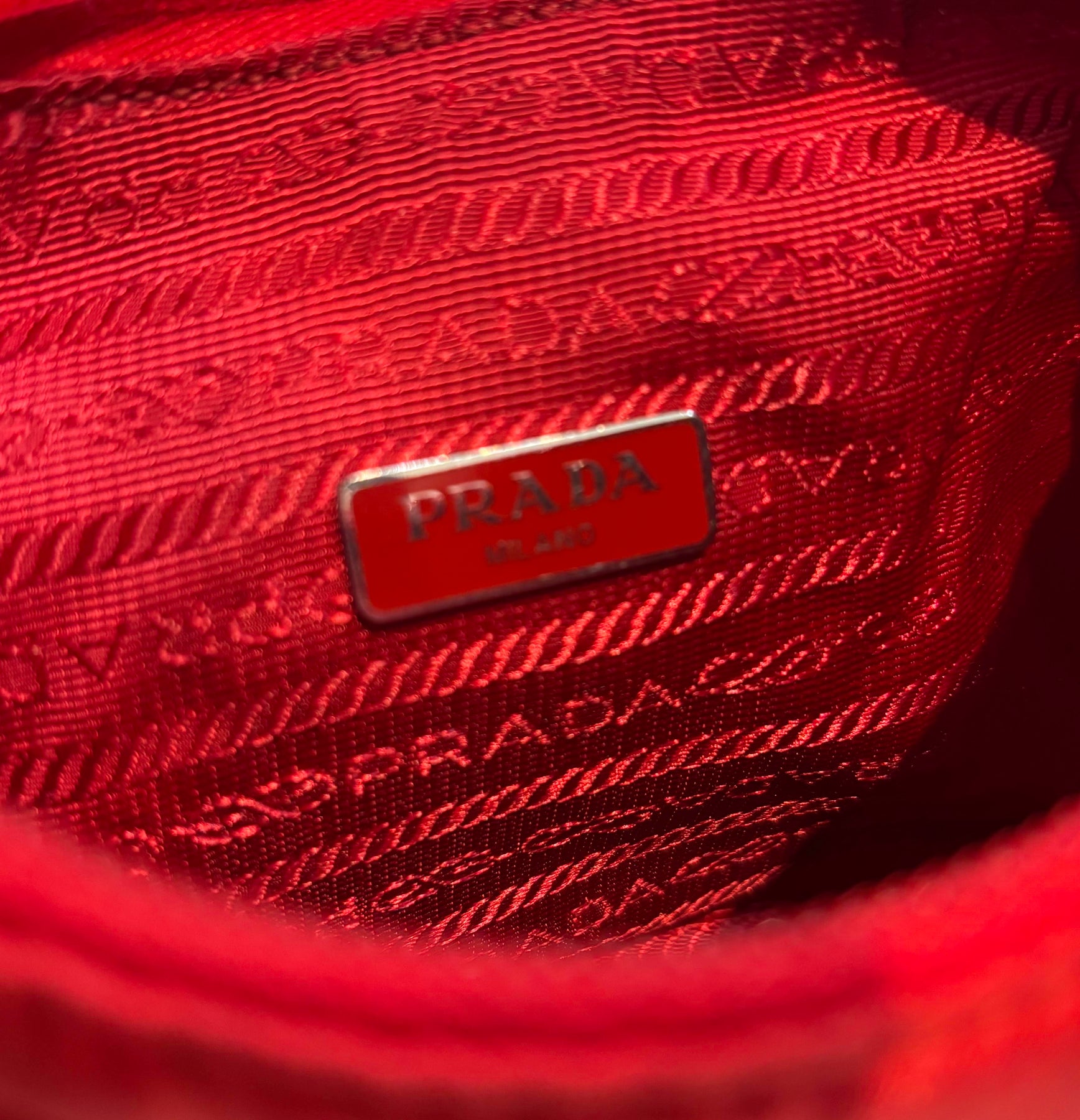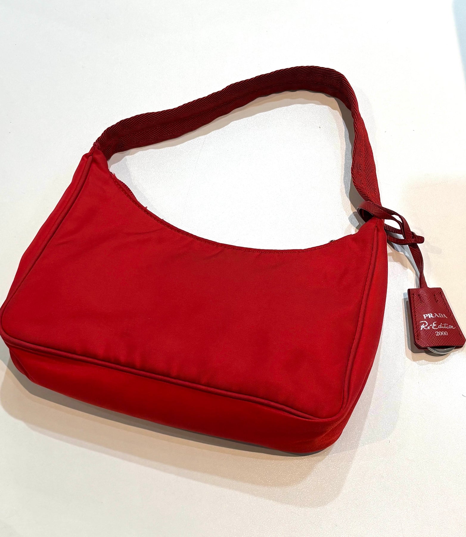 PRADA TESSUTO NYLON MINI RE-EDITION SHOULDER BAG IN ROSSO