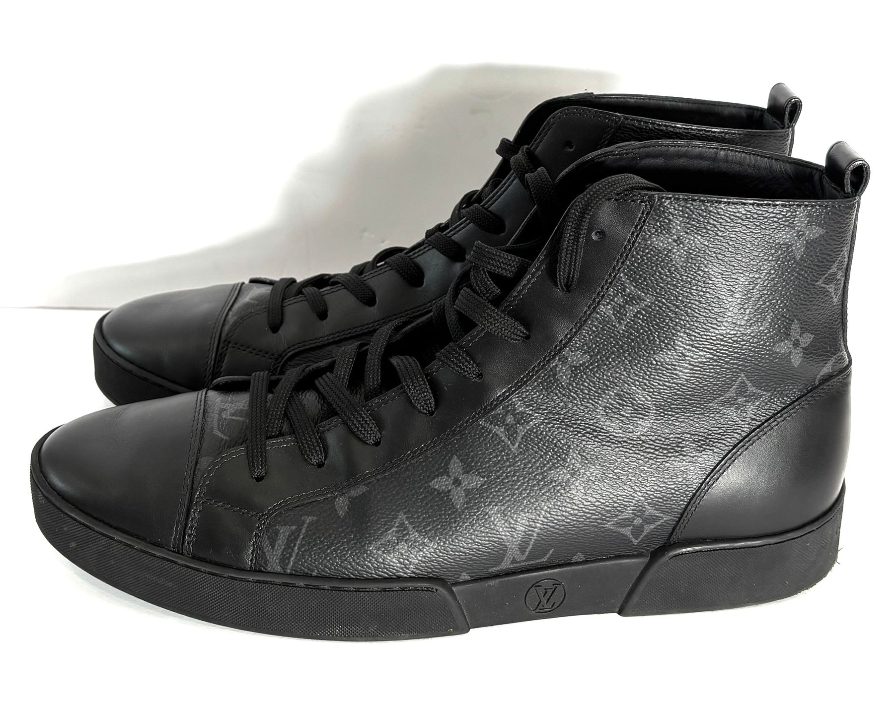 Modern design meets iconic craftsmanship in the Louis Vuitton Monogram Eclipse Canvas Sneakers — a sleek, versatile shoe that embodies contemporary luxury with a distinctly masculine edge. Crafted from the brand’s signature Monogram Eclipse canvas & Lather, these sneakers combine refined detailing with everyday comfort.