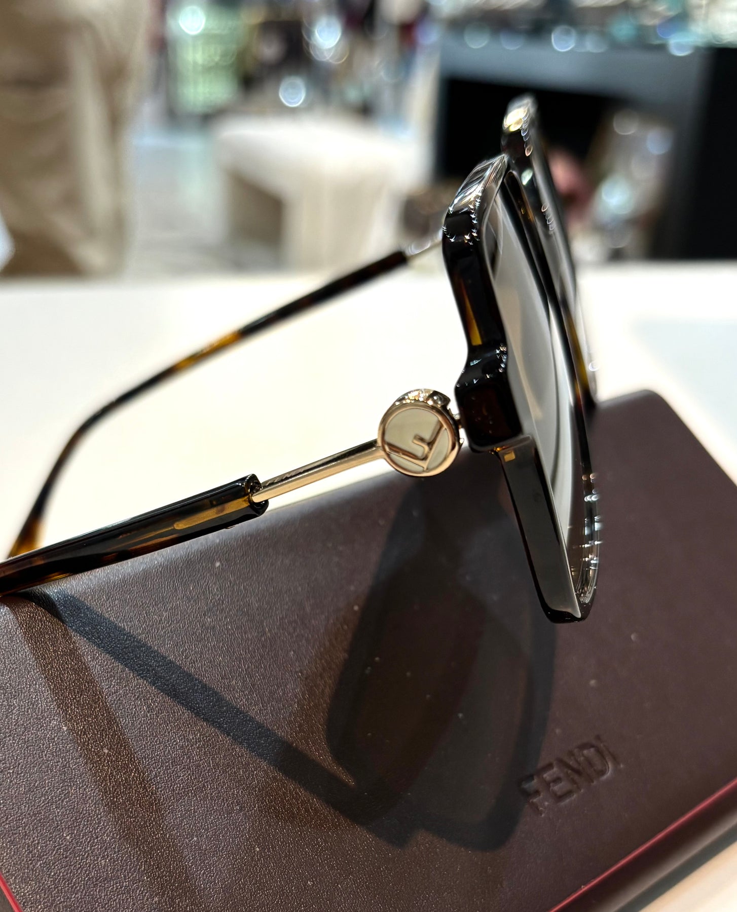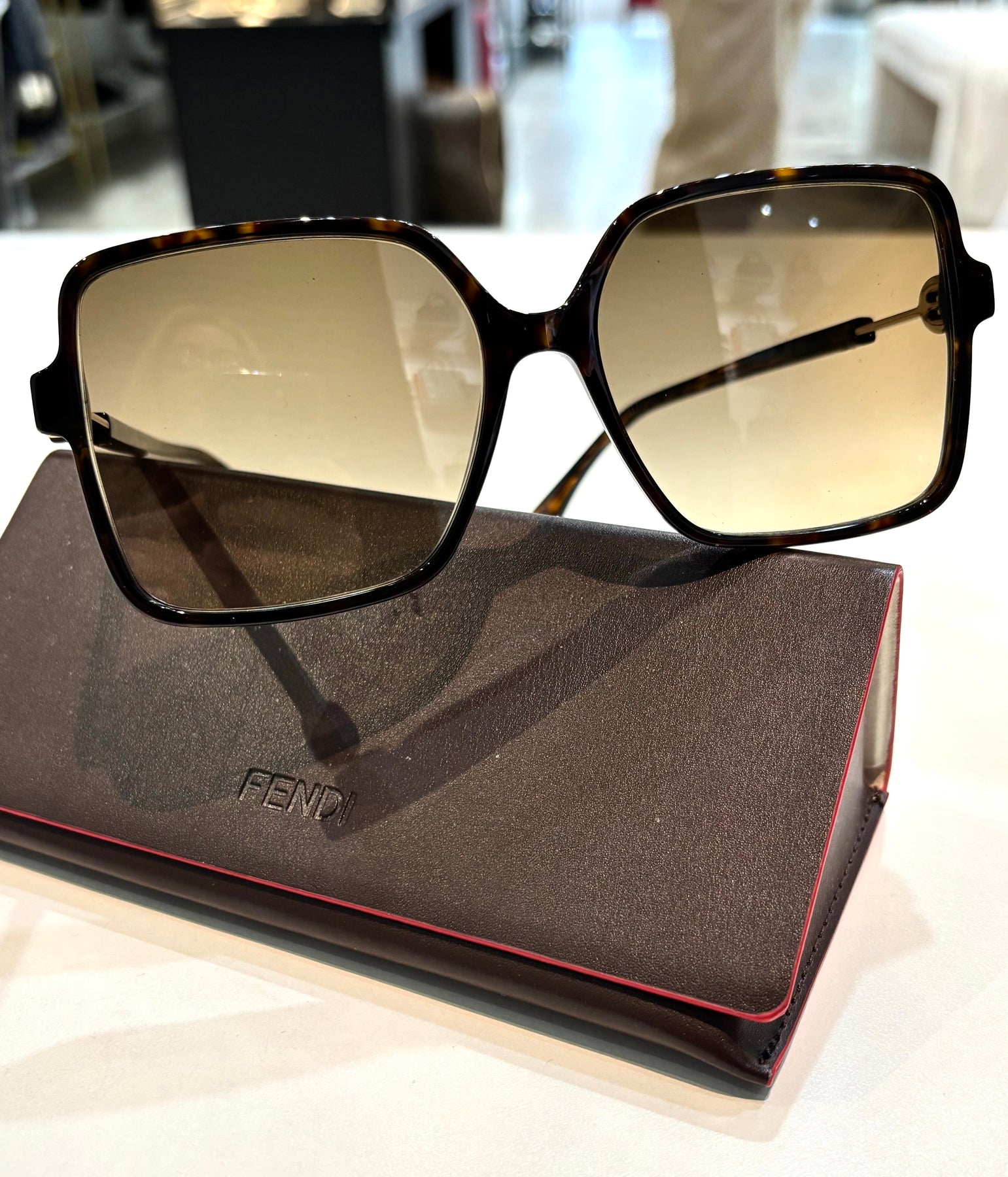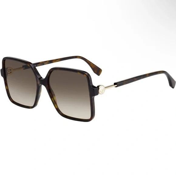 FENDI TORTOISE SHELL ACETATE SQUARE FRAME SUNGLASSES
