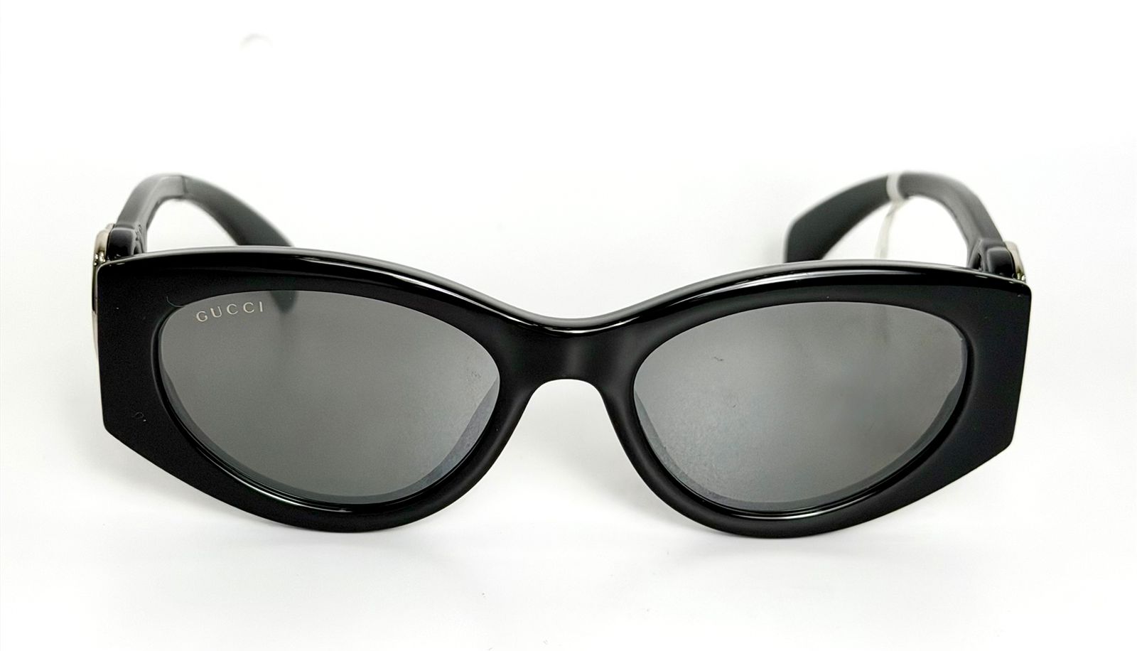 Designed to elevate any look, the silhouette blends bold proportions with subtle Gucci branding on the temples, ensuring a signature luxury touch without overpowering the style. The mirrored finish enhances visual impact while reducing glare in bright light, making them as functional as they are fashionable. Complete with a protective case and cleaning cloth, these sunglasses are the perfect blend of modern flair and timeless Italian elegance — ideal for sunny days or elevating urban outfits.