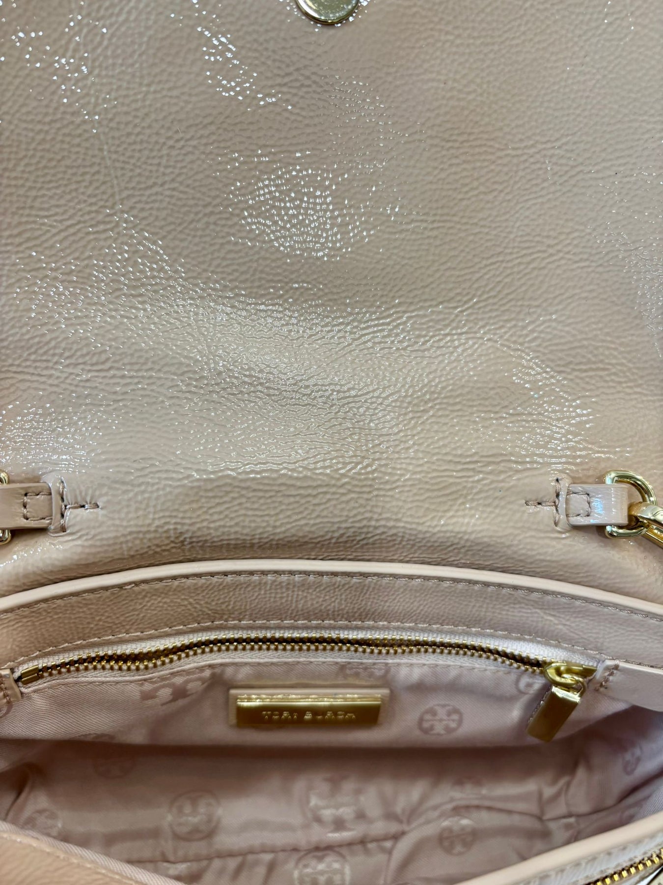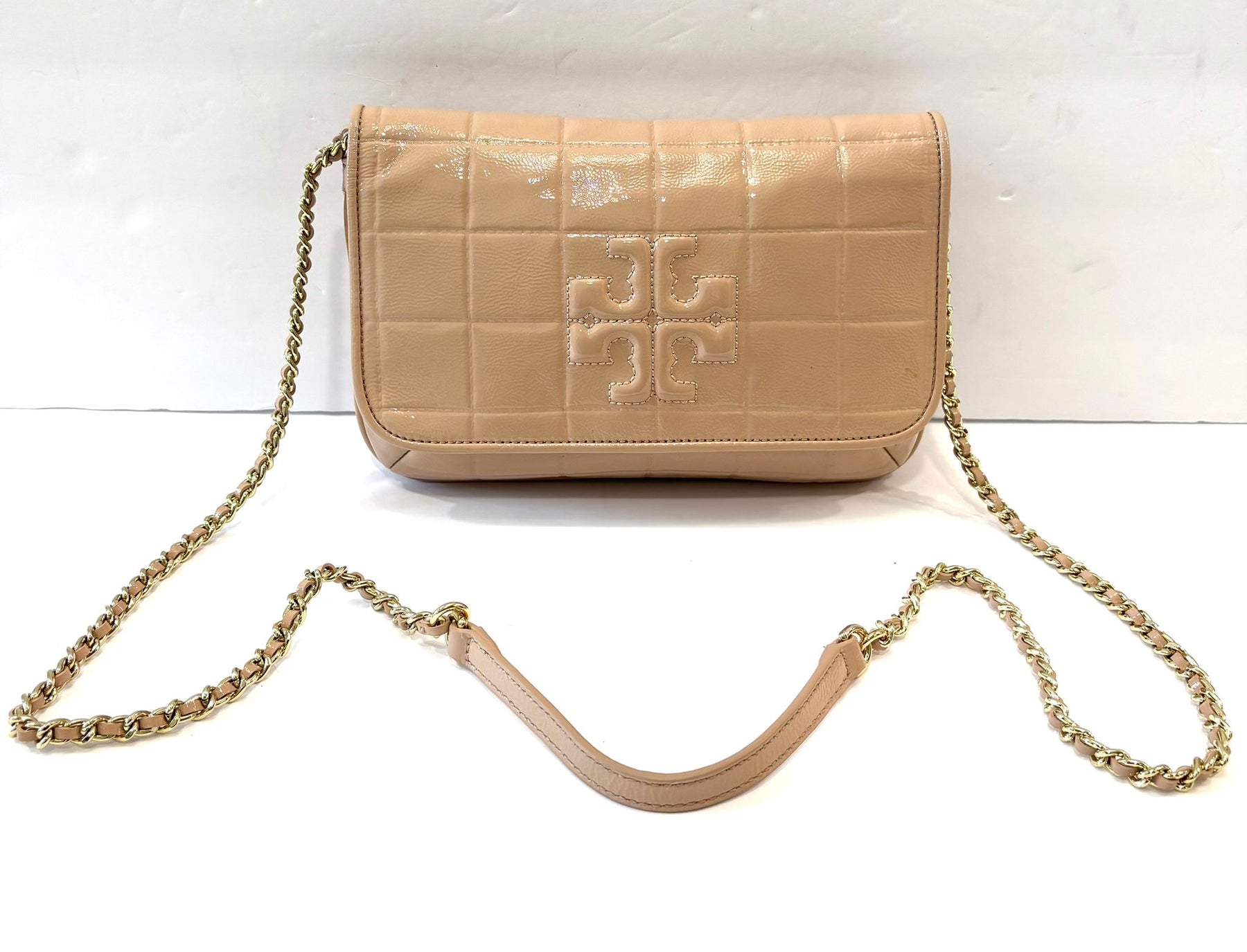 • Logo: Embossed Tory Burch double-T logo on front