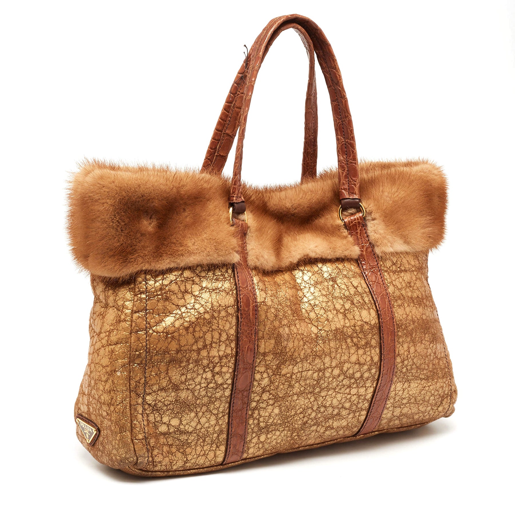 PRADA SHEARLING MINK TRIM TOTE