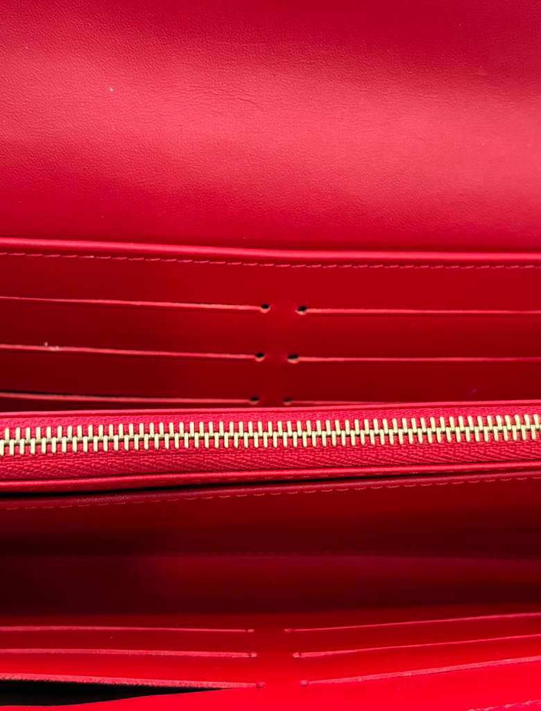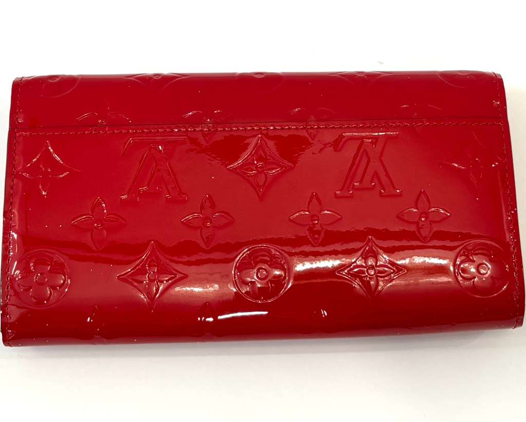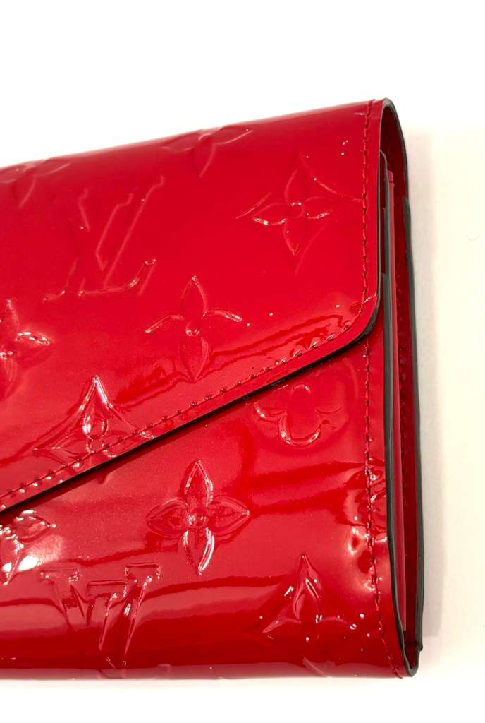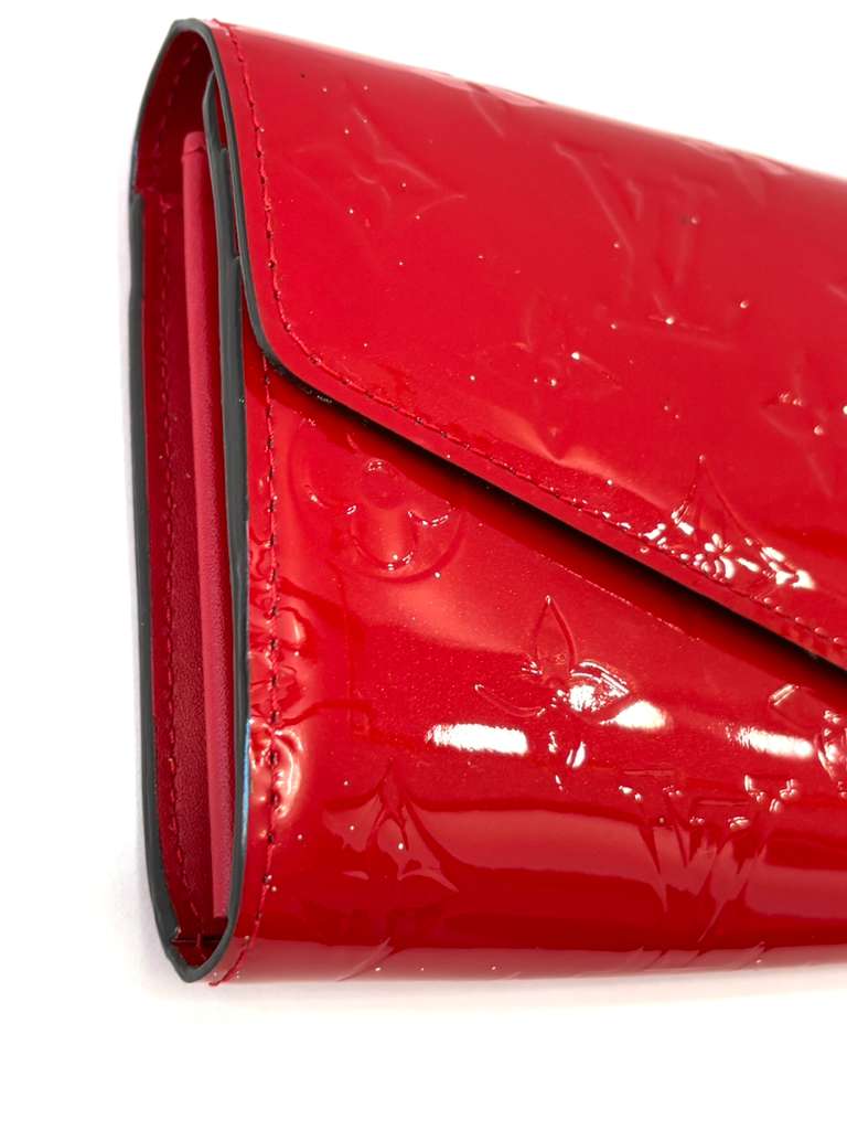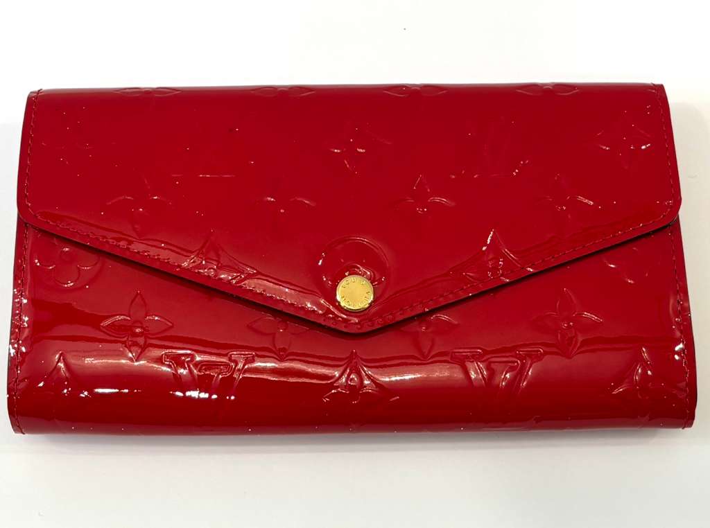 Elegant and Timeless, the Louis Vuitton Monogram Vernis Sarah Wallet is crafted from glossy patent Vernis leather, embossed with the iconic LV monogram. Designed in the signature envelope silhouette, this refined wallet offers both style and exceptional organization, making it a classic accessory for everyday luxury.