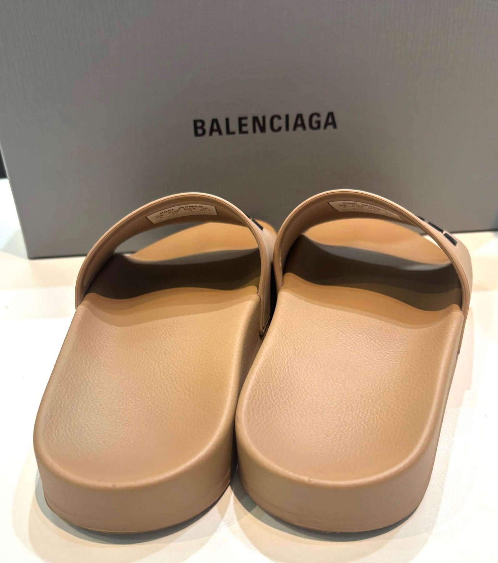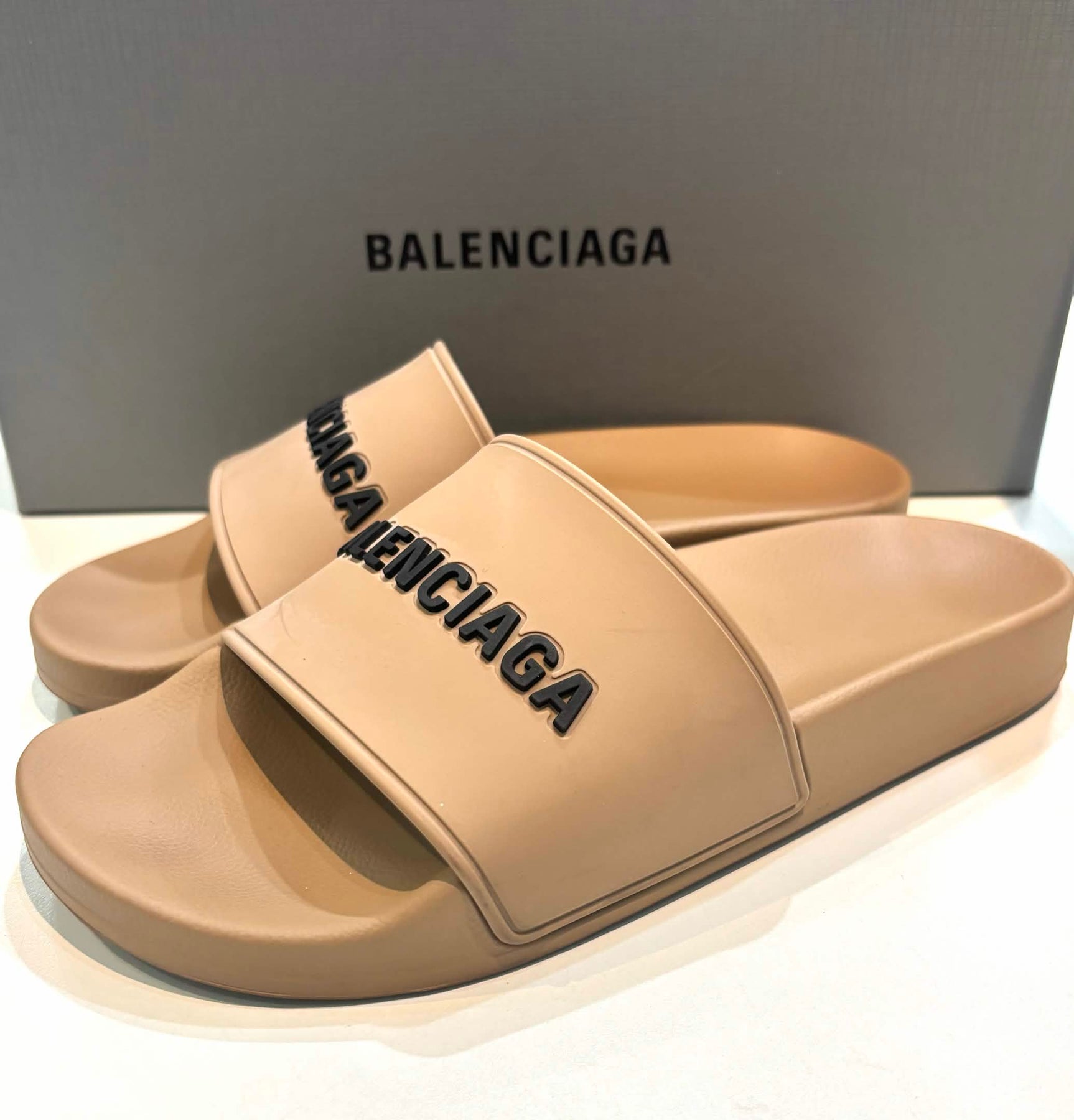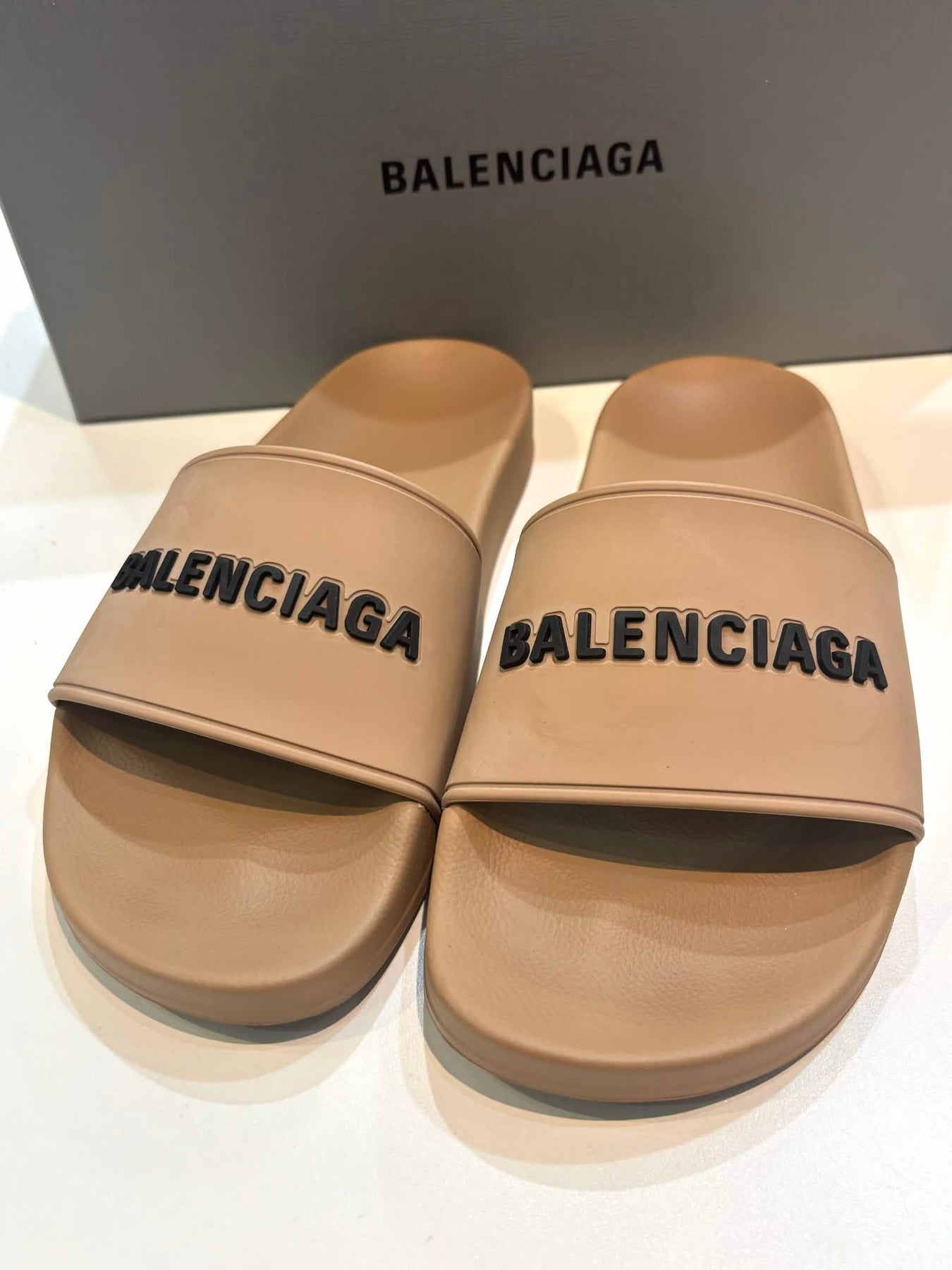 Elevate your warm‑weather wardrobe with these iconic Balenciaga pool slides — a minimalist yet bold luxury essential designed for summer style and everyday comfort. Crafted from high‑quality molded rubber, the sleek open‑toe silhouette features a logo‑embossed strap across the upper that delivers instantly recognizable designer flair with a sporty edge. The contoured footbed ensures comfort underfoot, while the slip‑on construction makes them perfect for poolside lounging, beach walks, or casual city looks with denim and tees. Lightweight, durable, and effortlessly chic, these slides blend Balenciaga’s avant‑garde aesthetic with practical wearability.