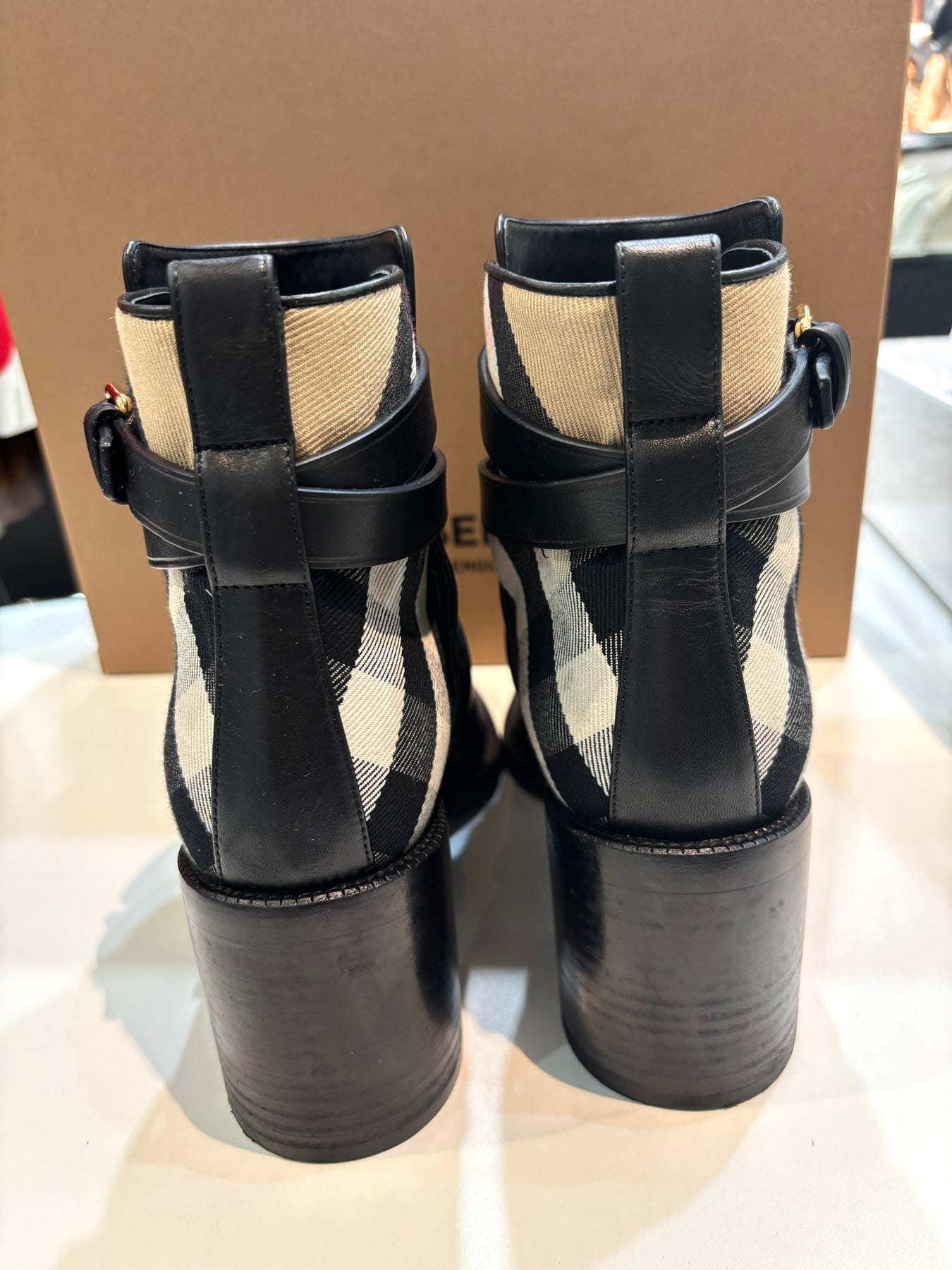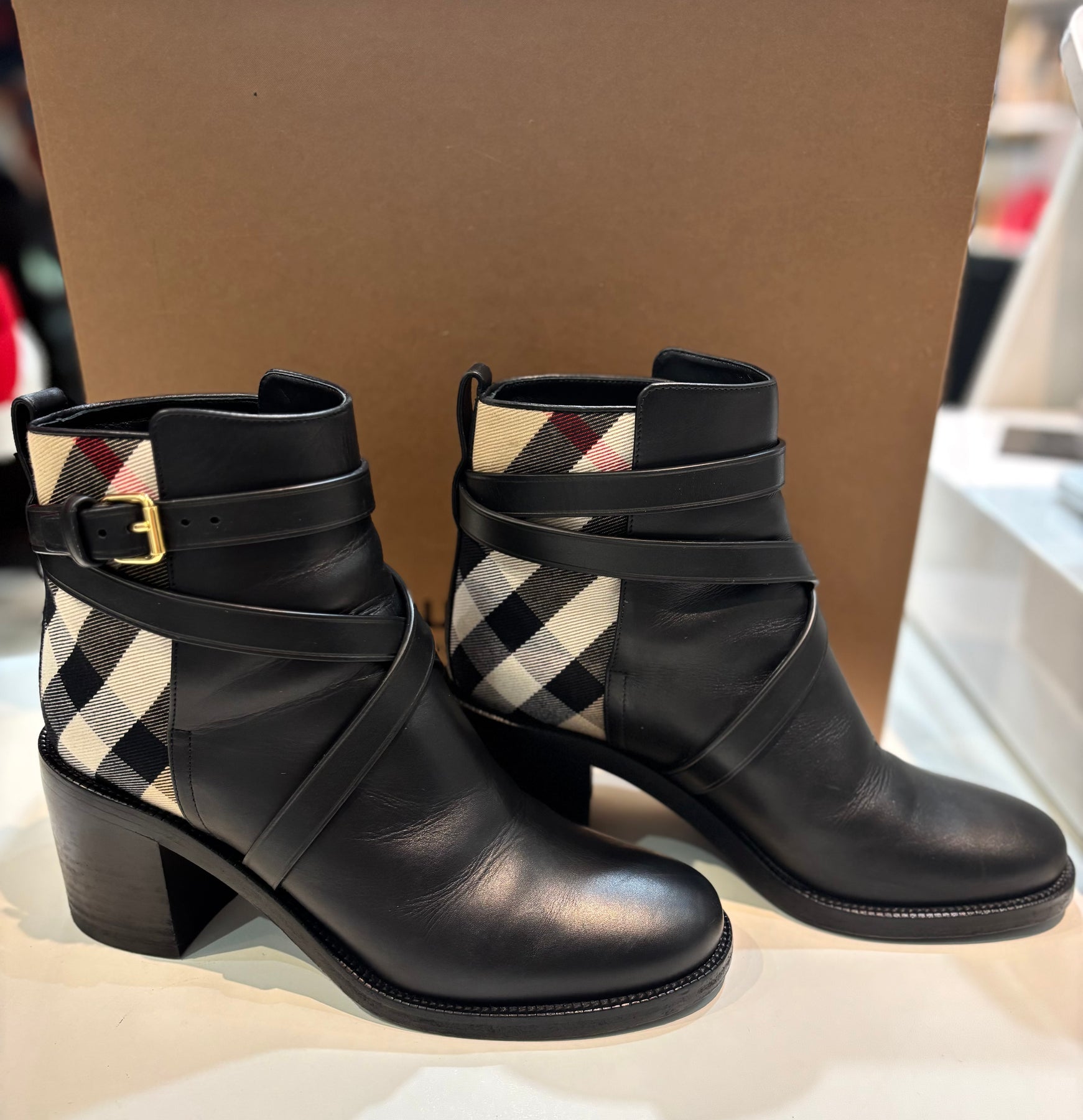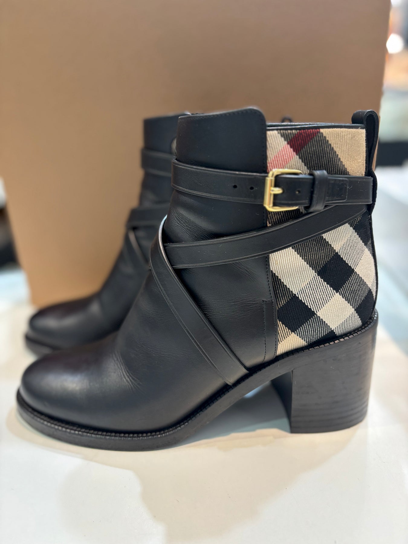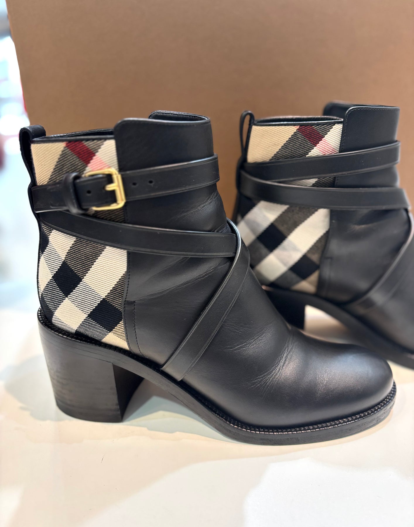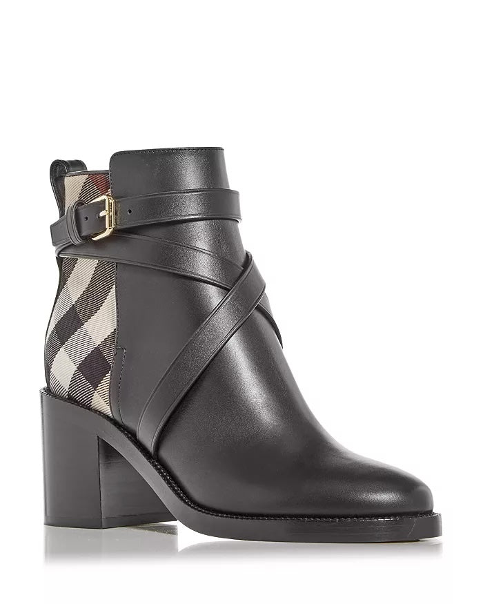 BURBERRY HOUSE CHECK PRYLE LEATHER ANKLE BOOTS