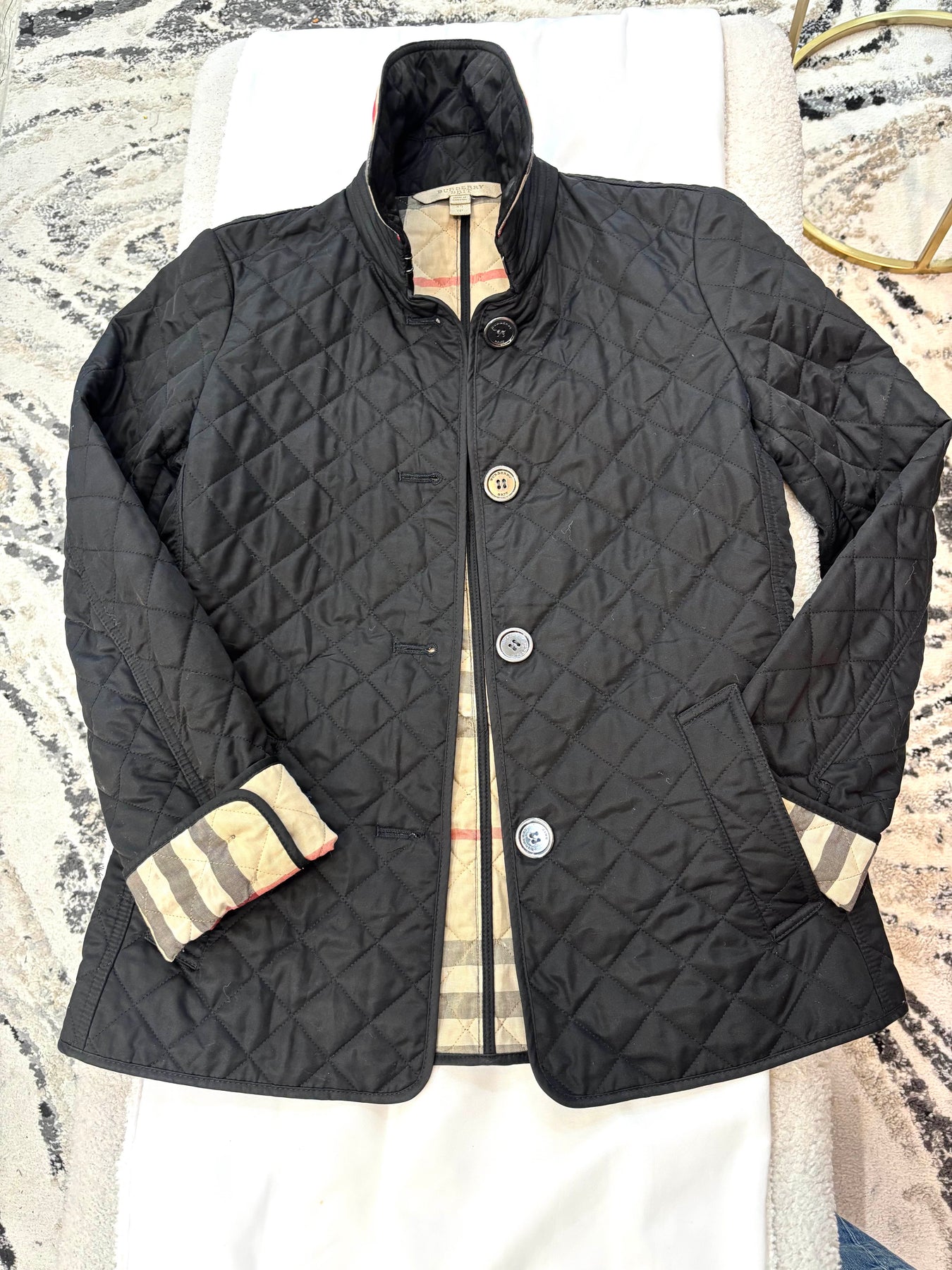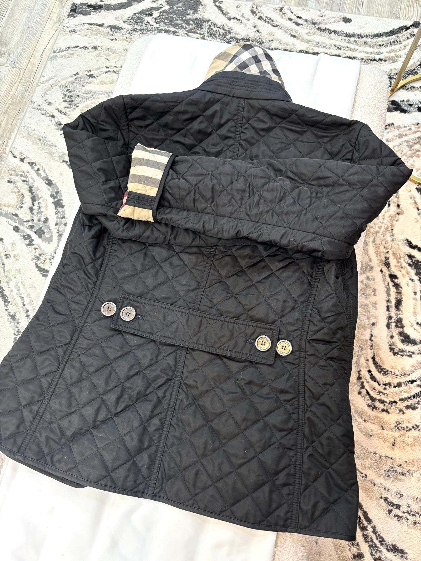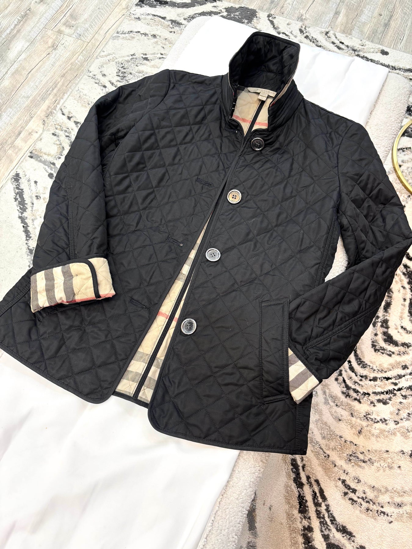 Elevate your outerwear collection with the Burberry Quilted Black Jacket, crafted in a classic diamond-quilted design that blends luxury with modern practicality. Tailored in size XS for a flattering, streamlined fit, this jacket features smooth black fabrication, tonal stitching, and refined detailing inspired by Burberry’s heritage.