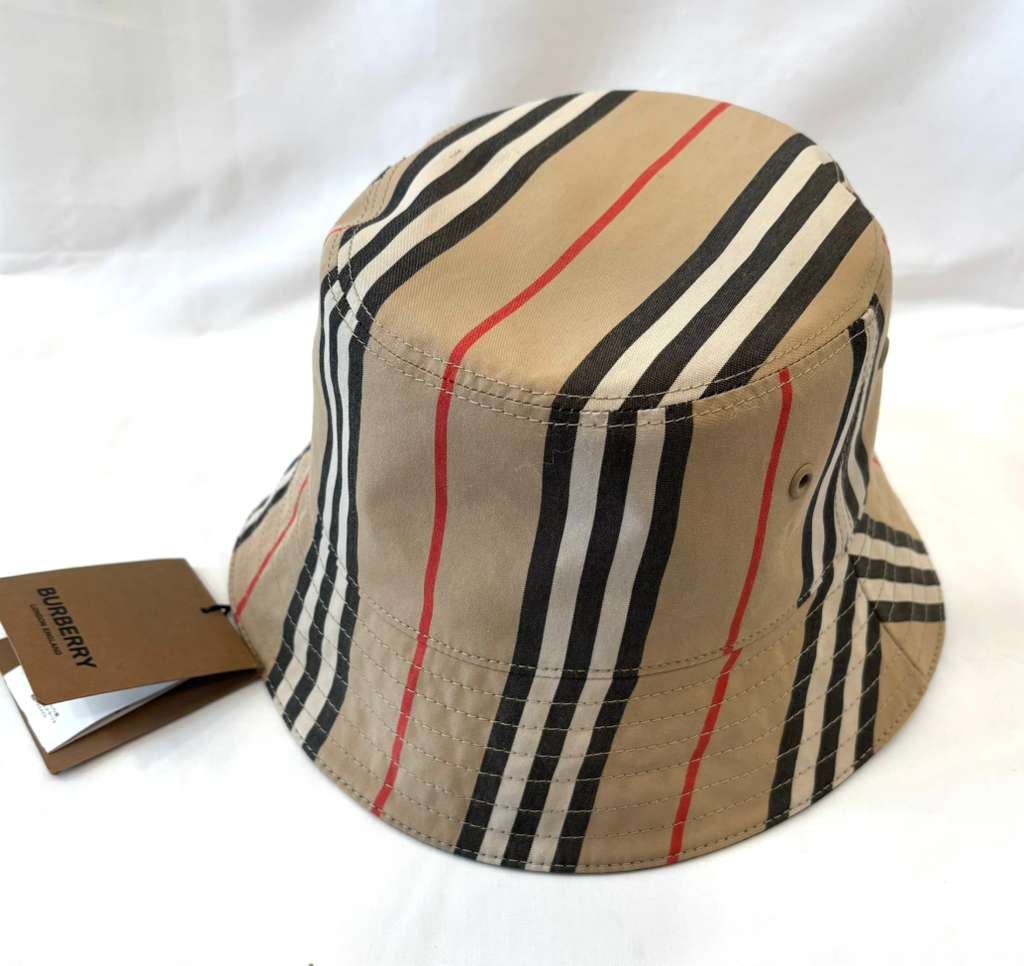 Effortlessly combining casual cool with British heritage style, the Burberry Stripe Bucket Hat is a modern essential that adds refined flair to any look. Crafted from premium materials and detailed with Burberry’s signature stripe pattern — a contemporary twist on the brand’s iconic check — this bucket hat delivers laid-back sophistication with a luxury finish. The classic silhouette features a softly sloped brim and comfortable fit, making it perfect for everyday wear season after season. Whether paired with streetwear staples or elevated vacation styles, this hat brings timeless appeal and understated designer charm to your wardrobe.