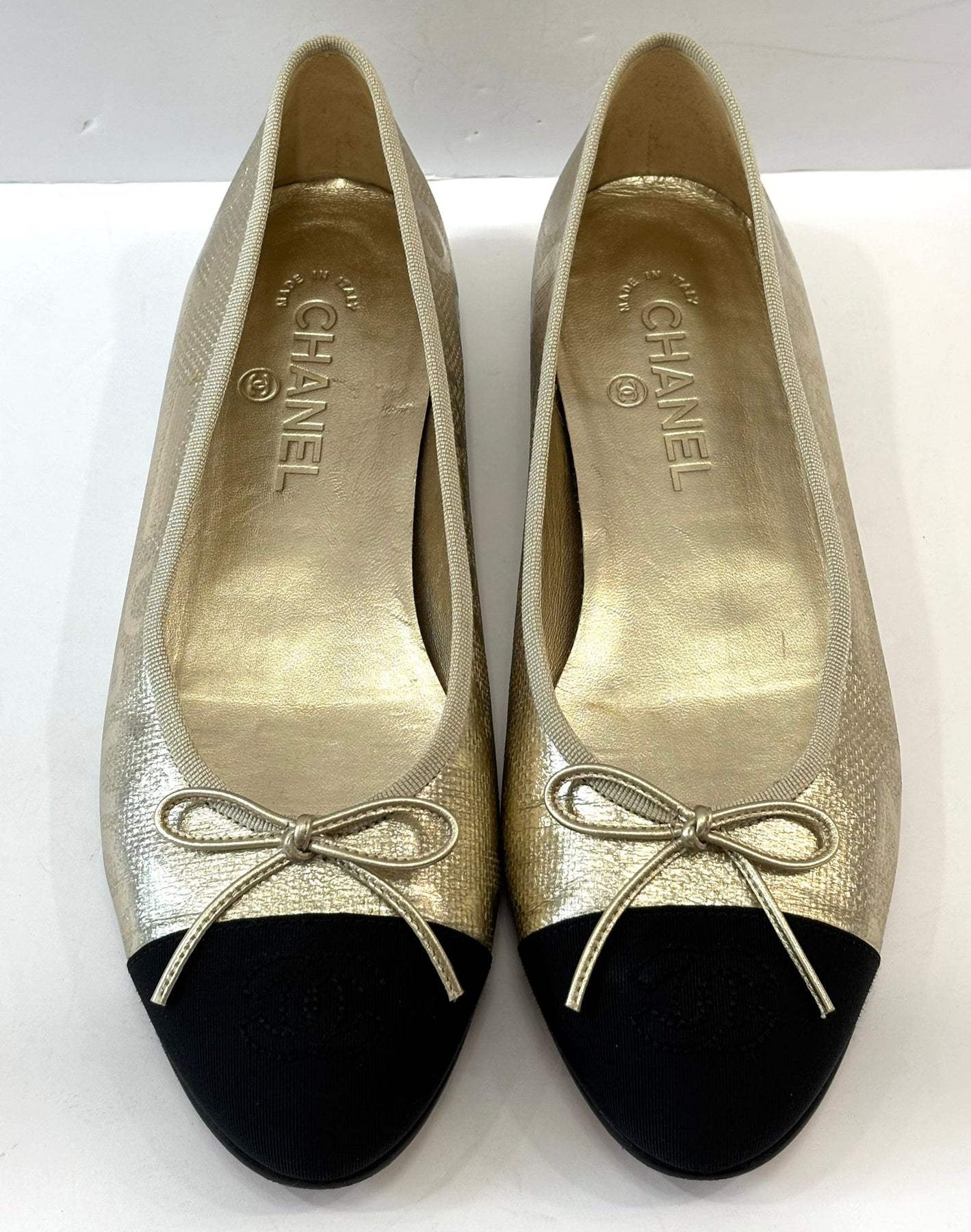 A symbol of effortless Parisian chic, the Chanel Ballerina Flats are the epitome of timeless elegance and everyday luxury. Expertly crafted in Italy from supple leather, these flats feature Chanel’s signature two-tone design and the iconic interlocking CC logo at the toe — a mark of sophistication recognized worldwide.