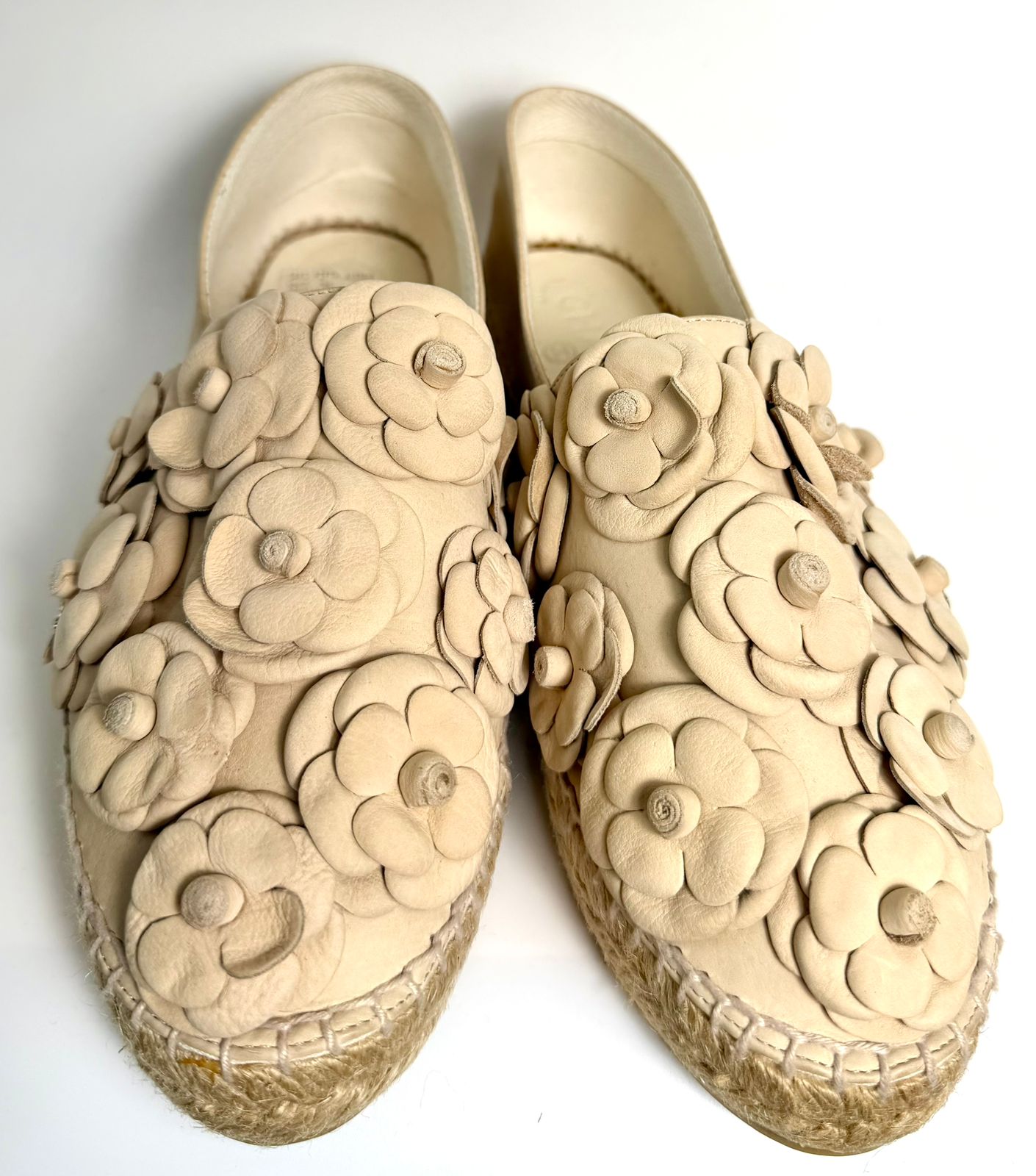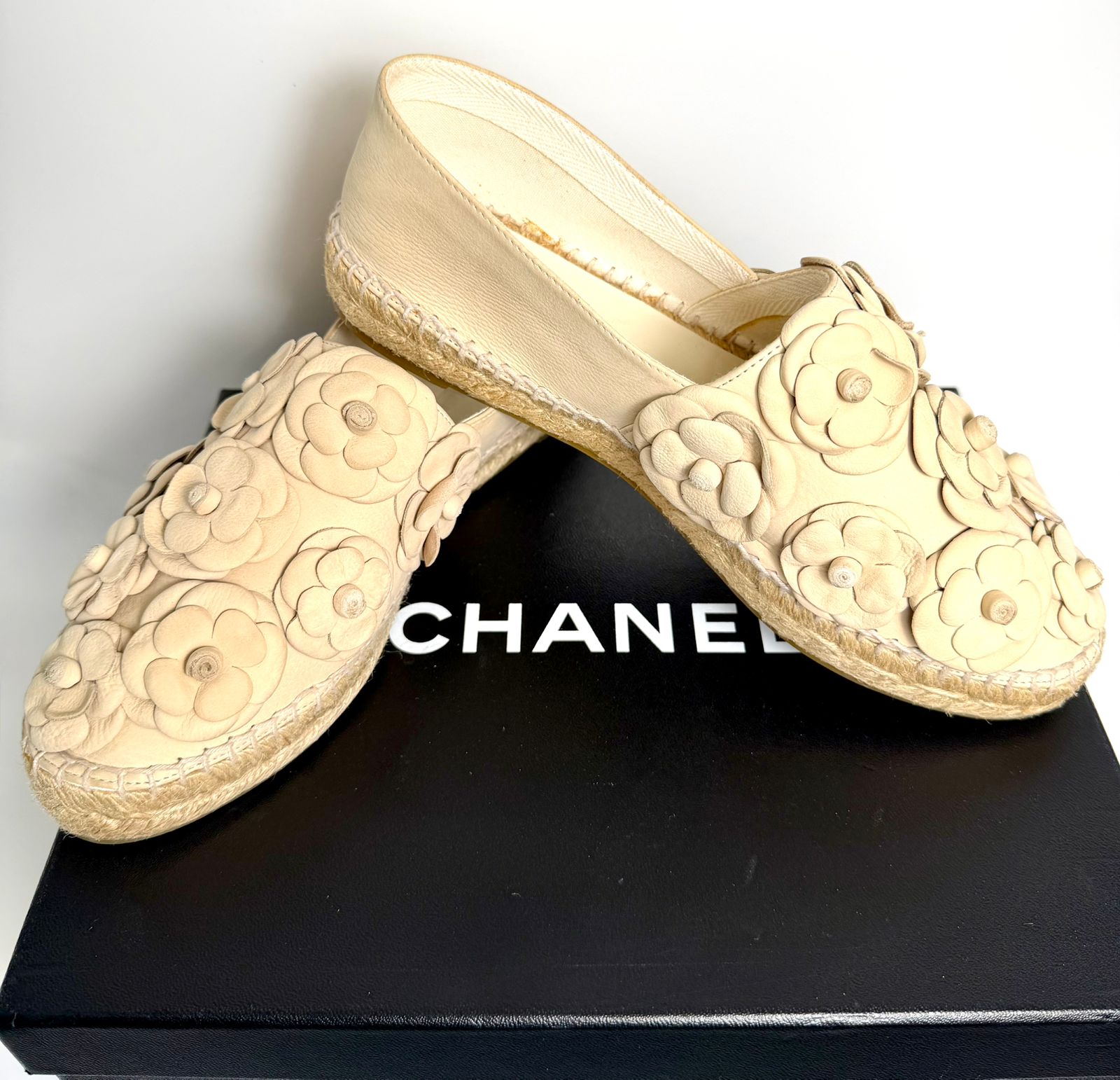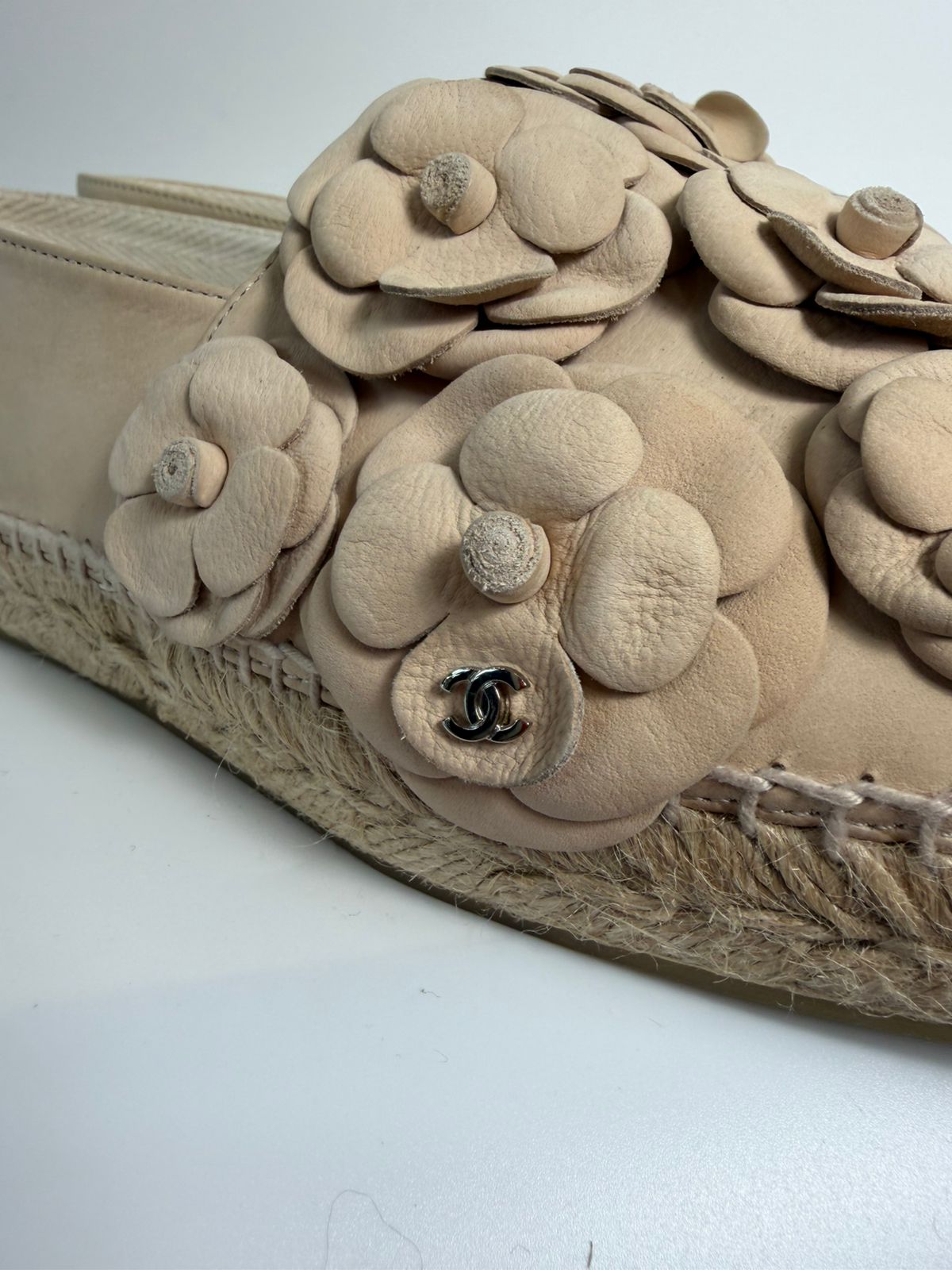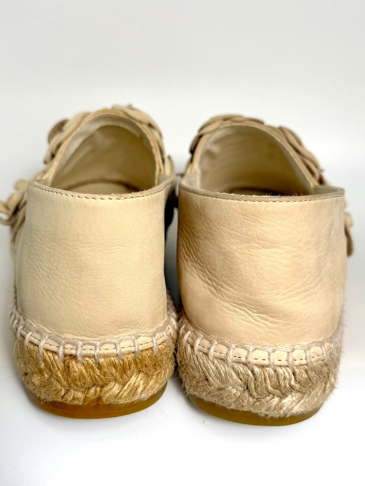 CHANEL LEATHER CC CAMELIA ESPADRILLES