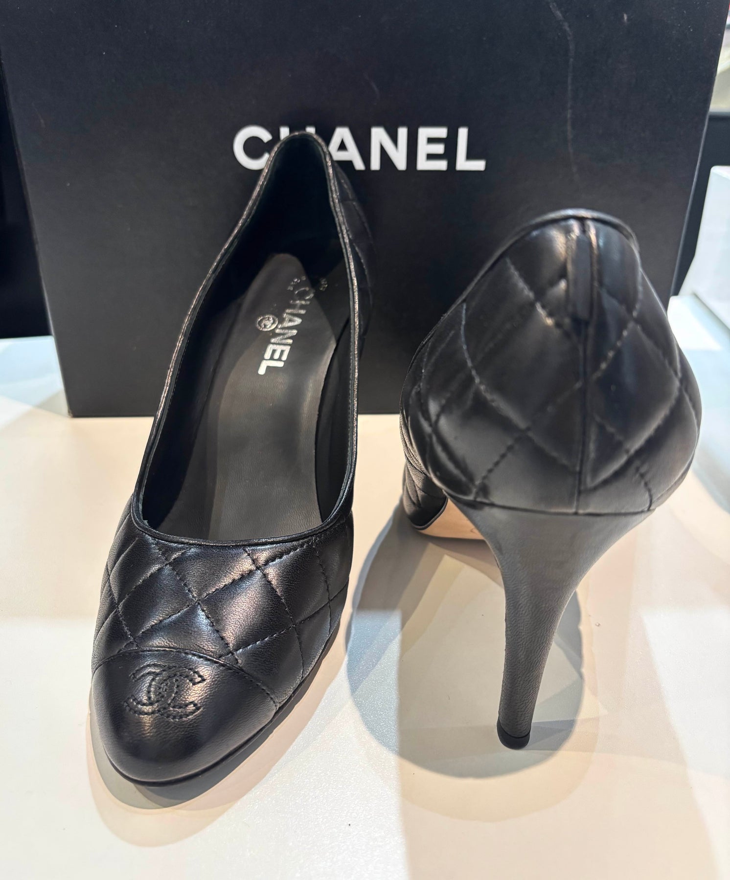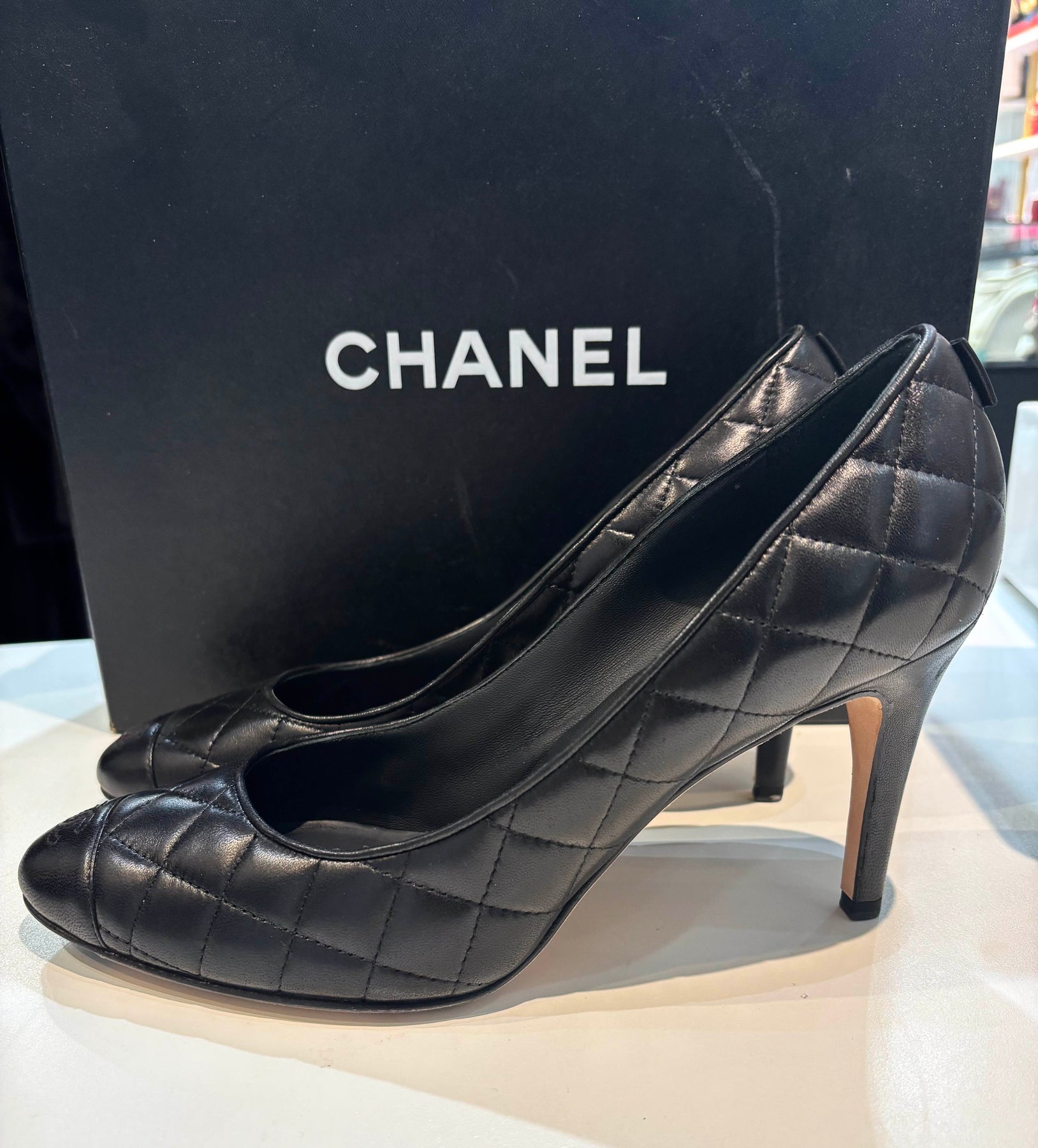 CHANEL CC QUILTED LAMBSKIN LEATHER PUMPS