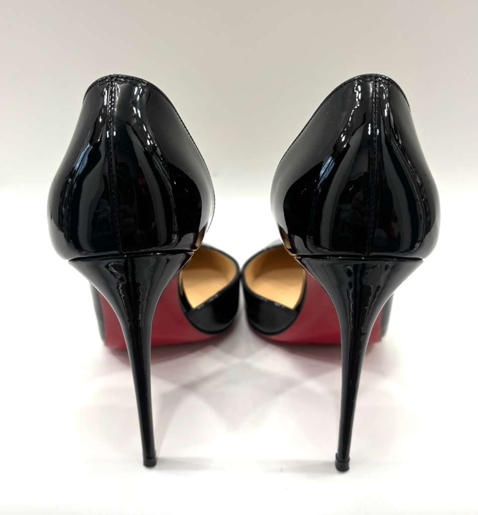 Step into timeless elegance with the Christian Louboutin 100 mm Irizia Pumps, a refined staple that perfectly balances polished design and seductive appeal. Crafted with luxurious materials Shiny Calf Patent leather, these pumps exemplify Louboutin’s iconic aesthetic, highlighted by the instantly recognizable red-lacquered sole.