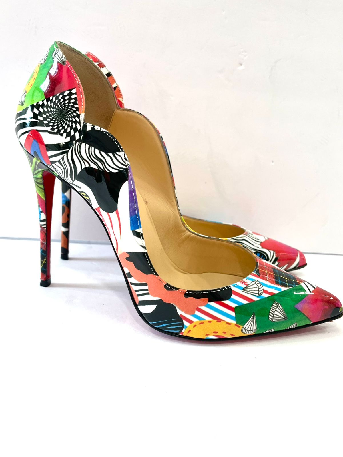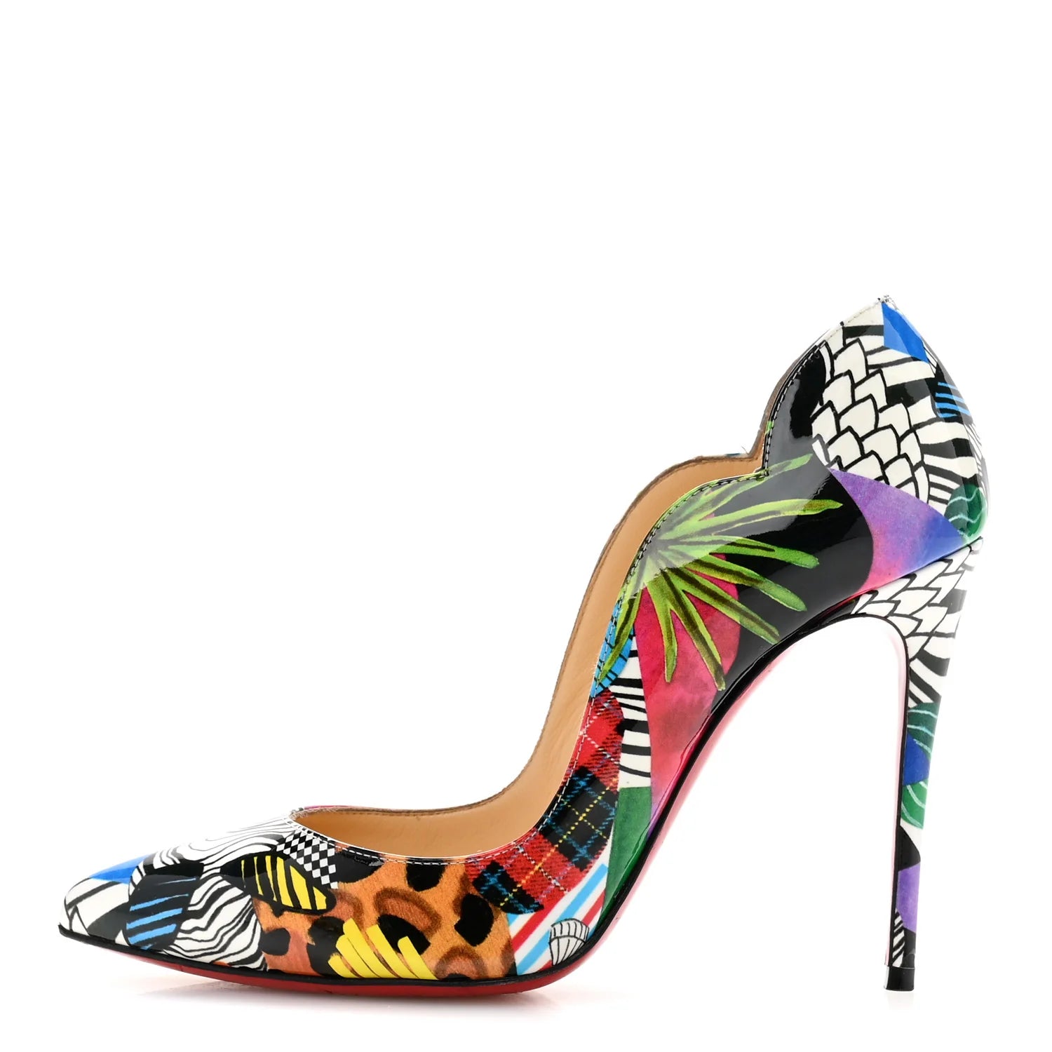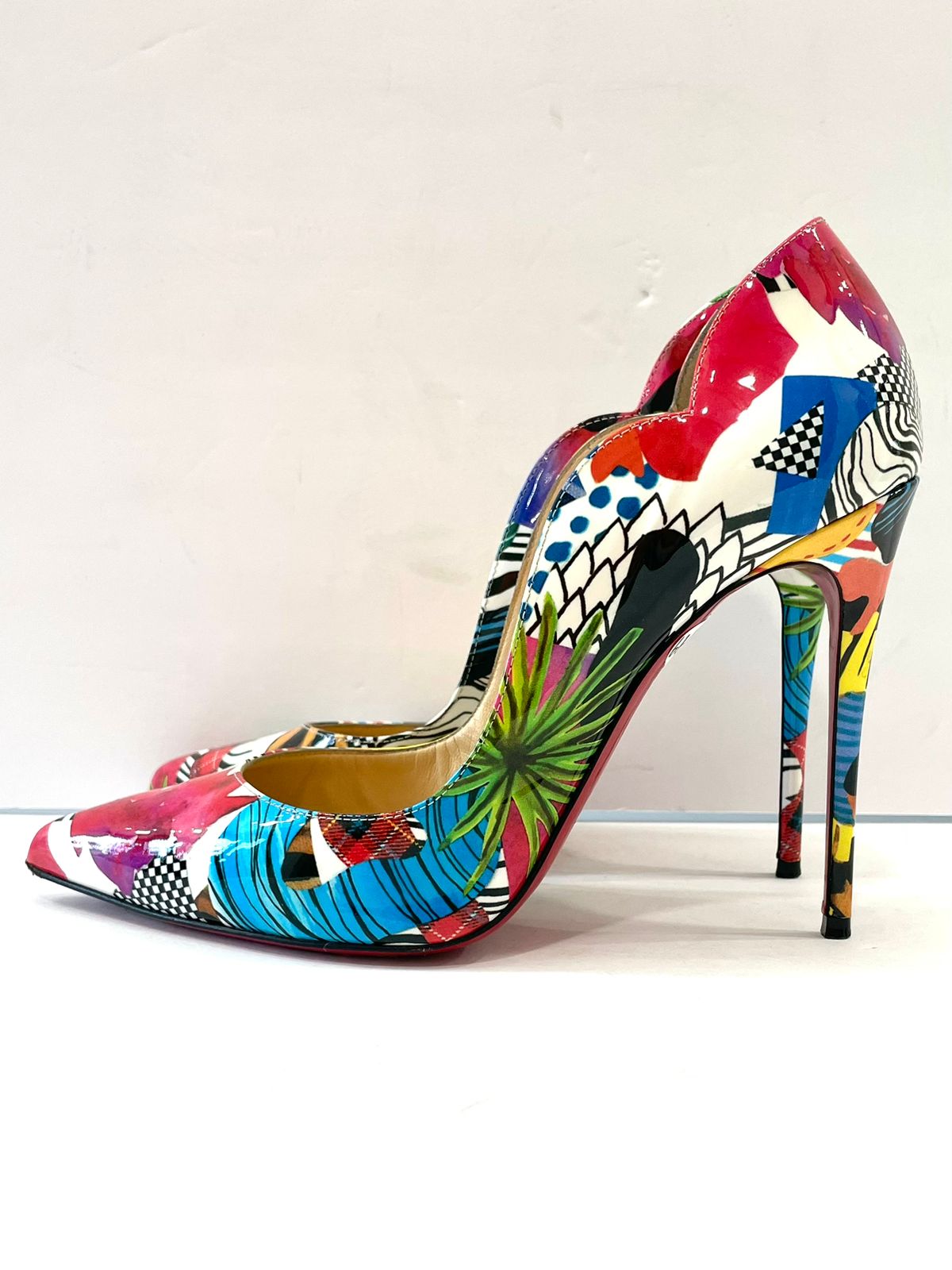 CHRISTIAN LOUBOUTIN MULTICOLOR PRINT PATENT LEATHER HOT CHIC PUMPS