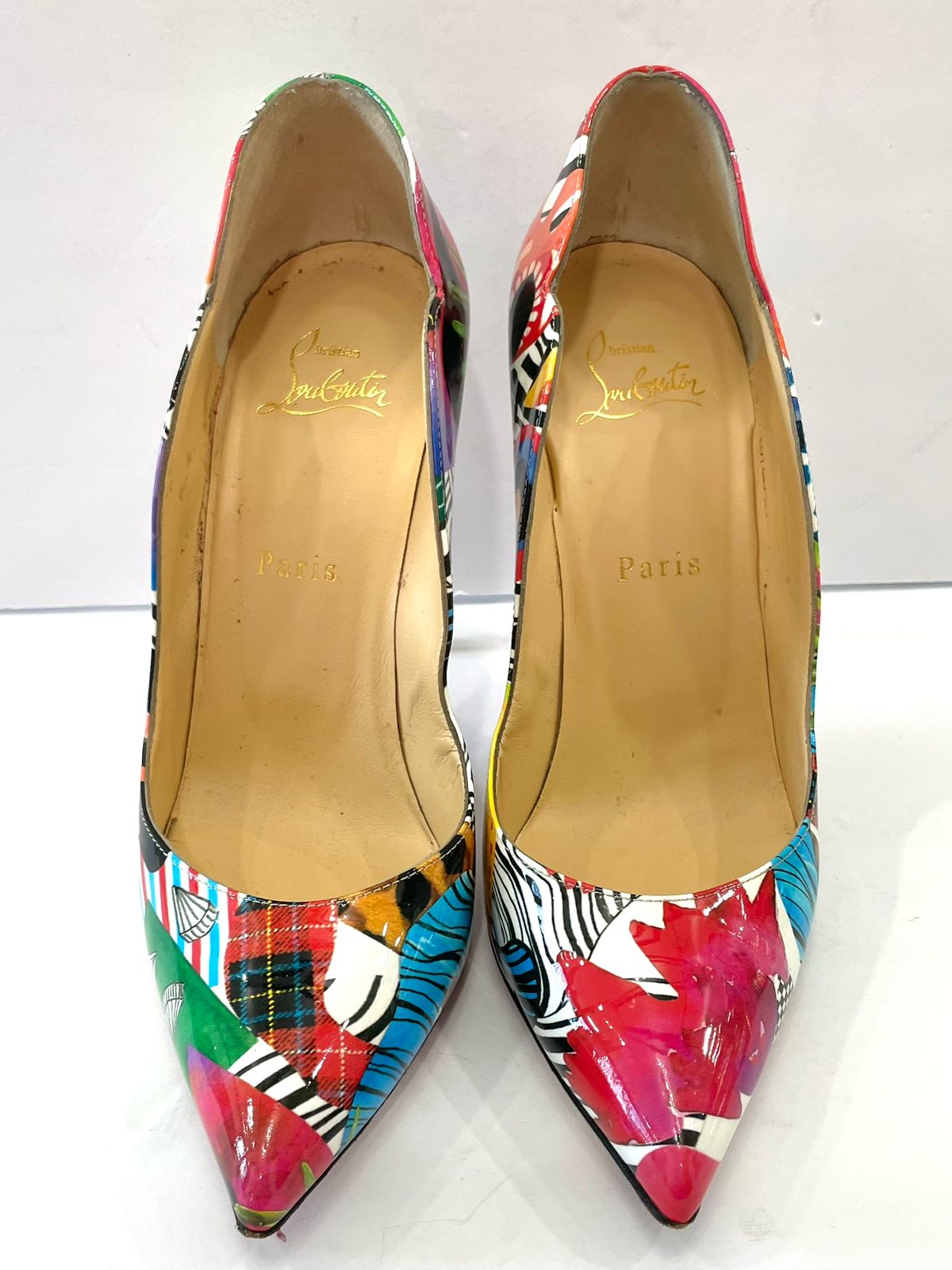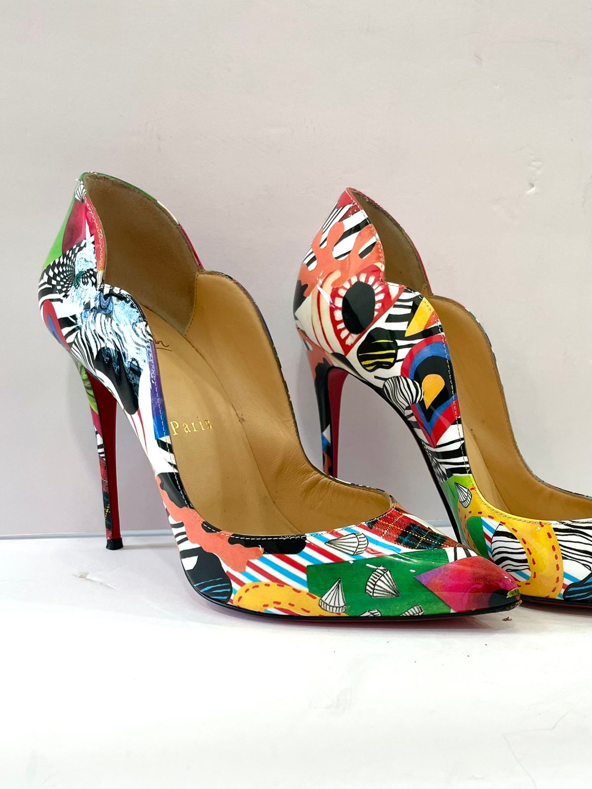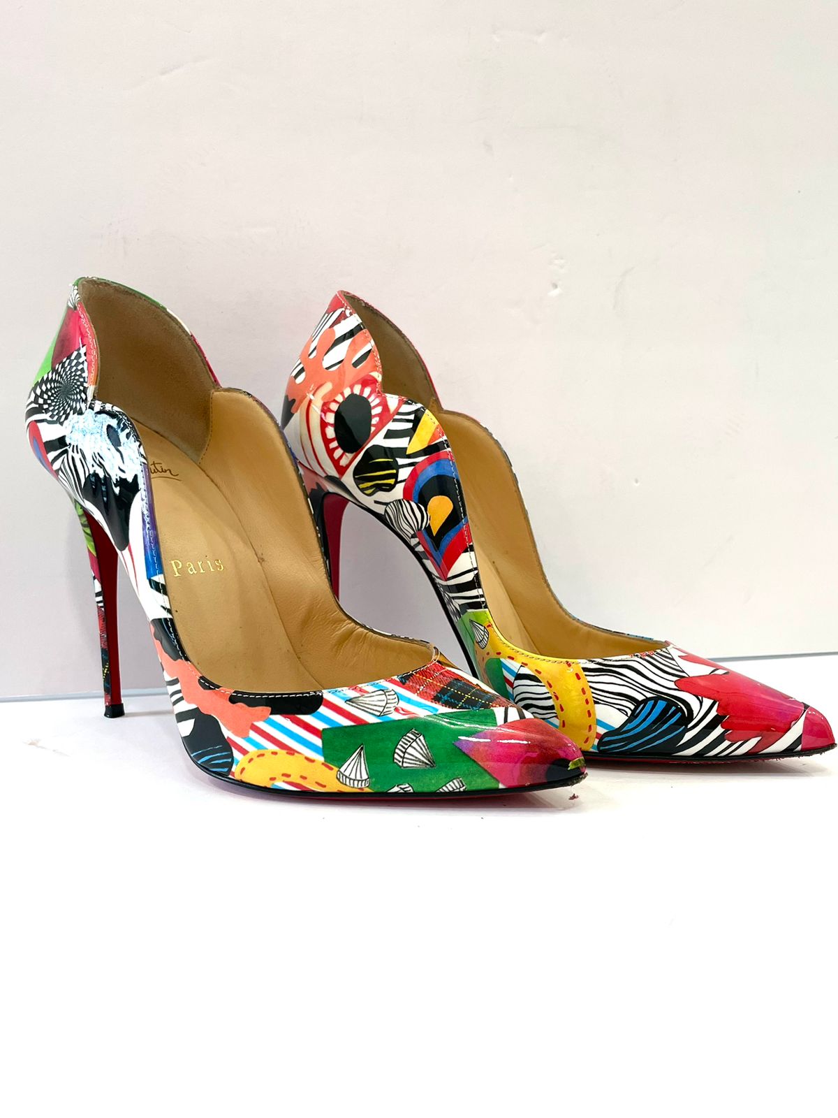 CHRISTIAN LOUBOUTIN MULTICOLOR PRINT PATENT LEATHER HOT CHIC PUMPS