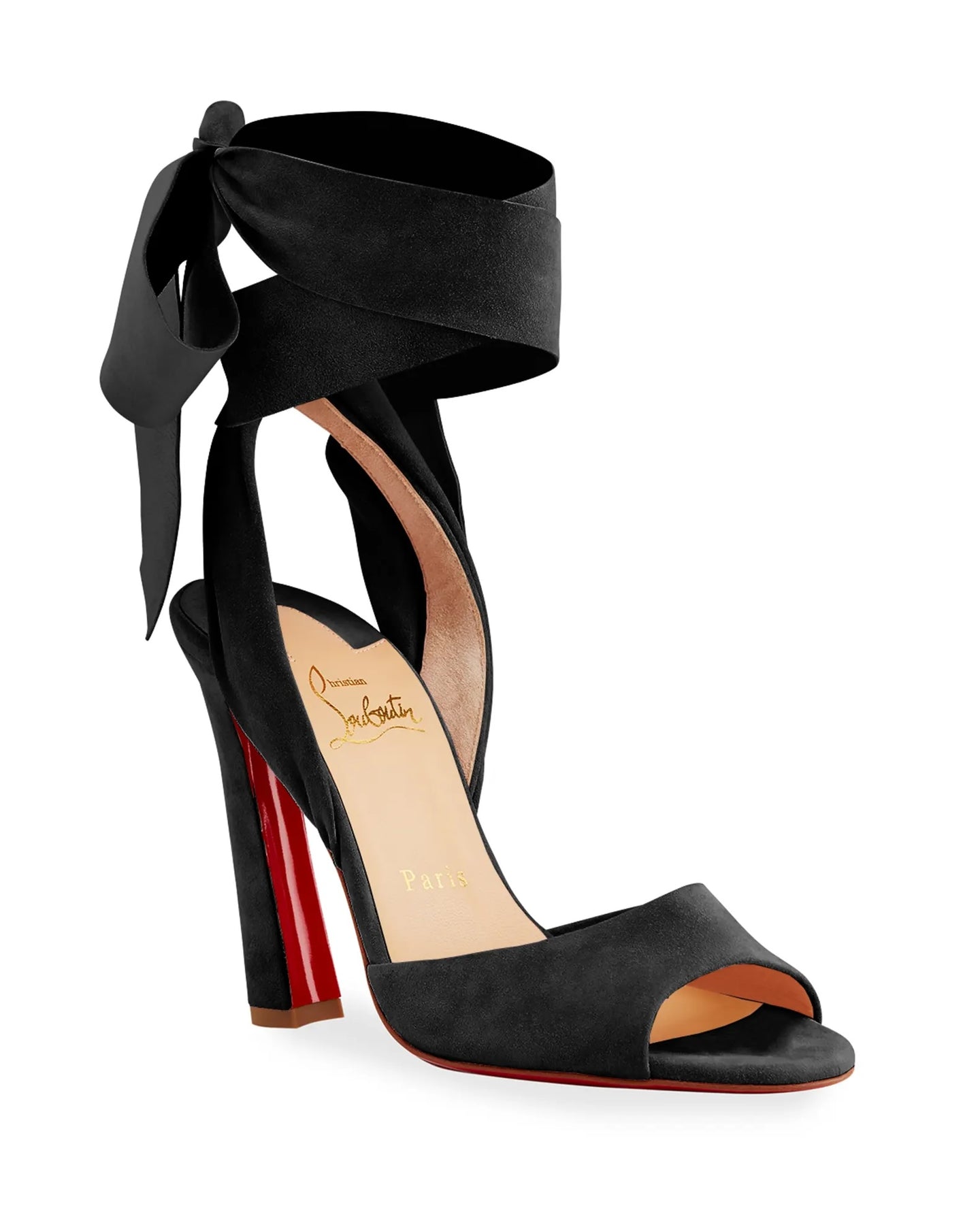 CHRISTIAN LOUBOUTIN ROSE AMELIE ANKLE-TIE SUEDE SANDALS