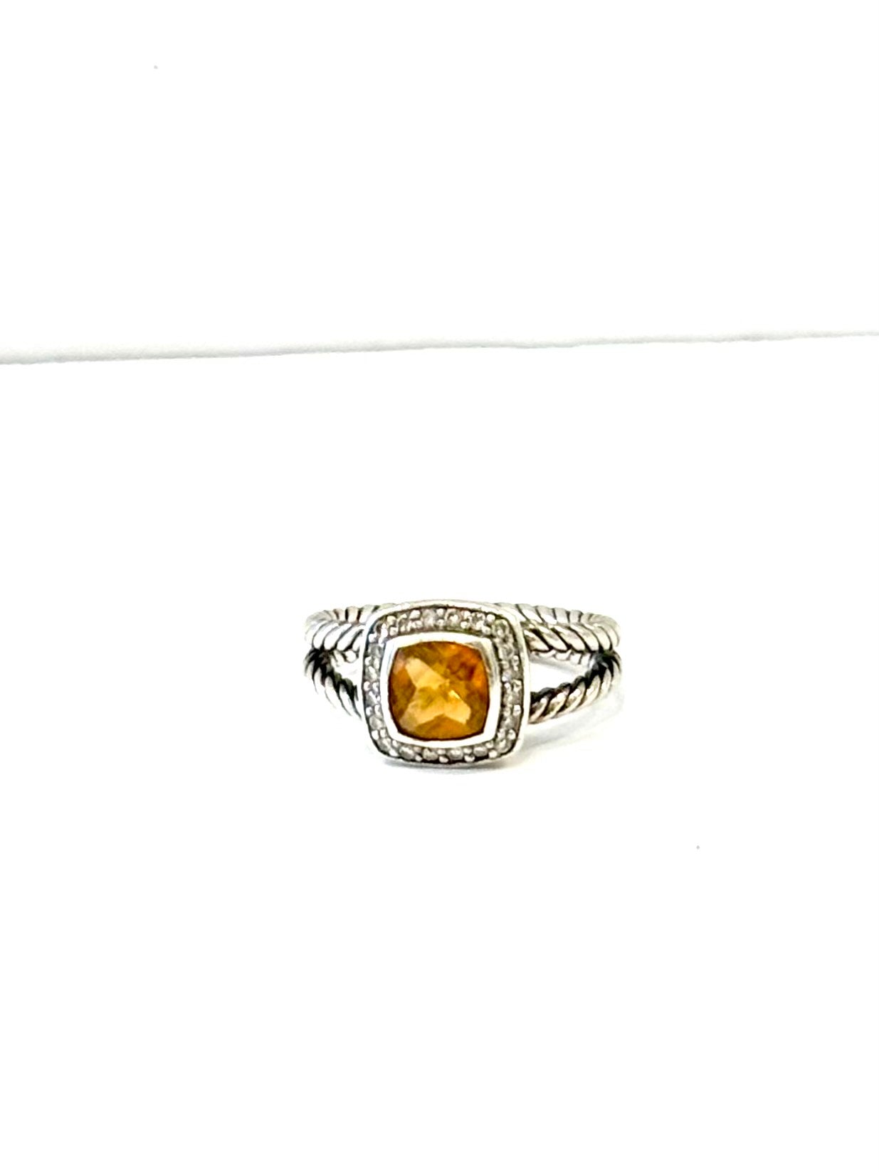 Elegant, radiant, and timeless, the David Yurman Petite Albion Ring is a stunning expression of the designer’s iconic artistry. Crafted in sterling silver, the ring features a 7mm cushion-cut citrine gemstone, prized for its warm golden glow and remarkable clarity. The faceted stone is framed by a delicate halo of sparkling pavé diamonds, enhancing its brilliance and creating a beautifully balanced contrast.