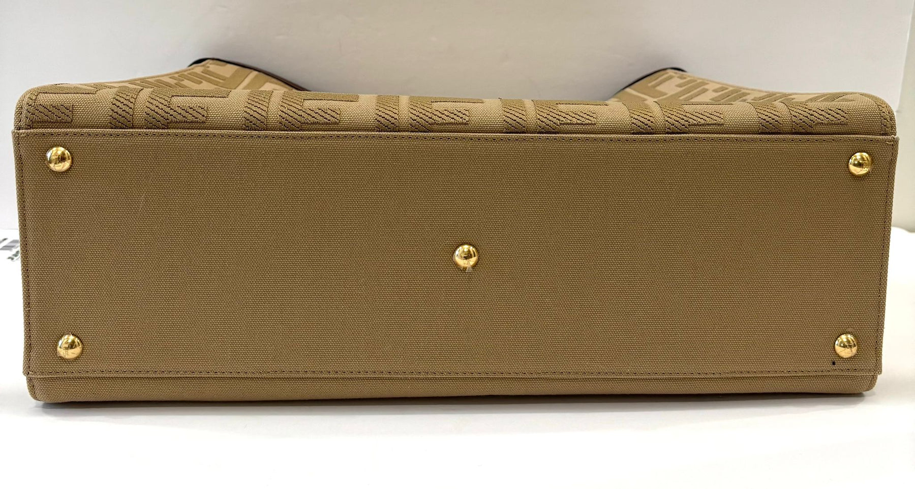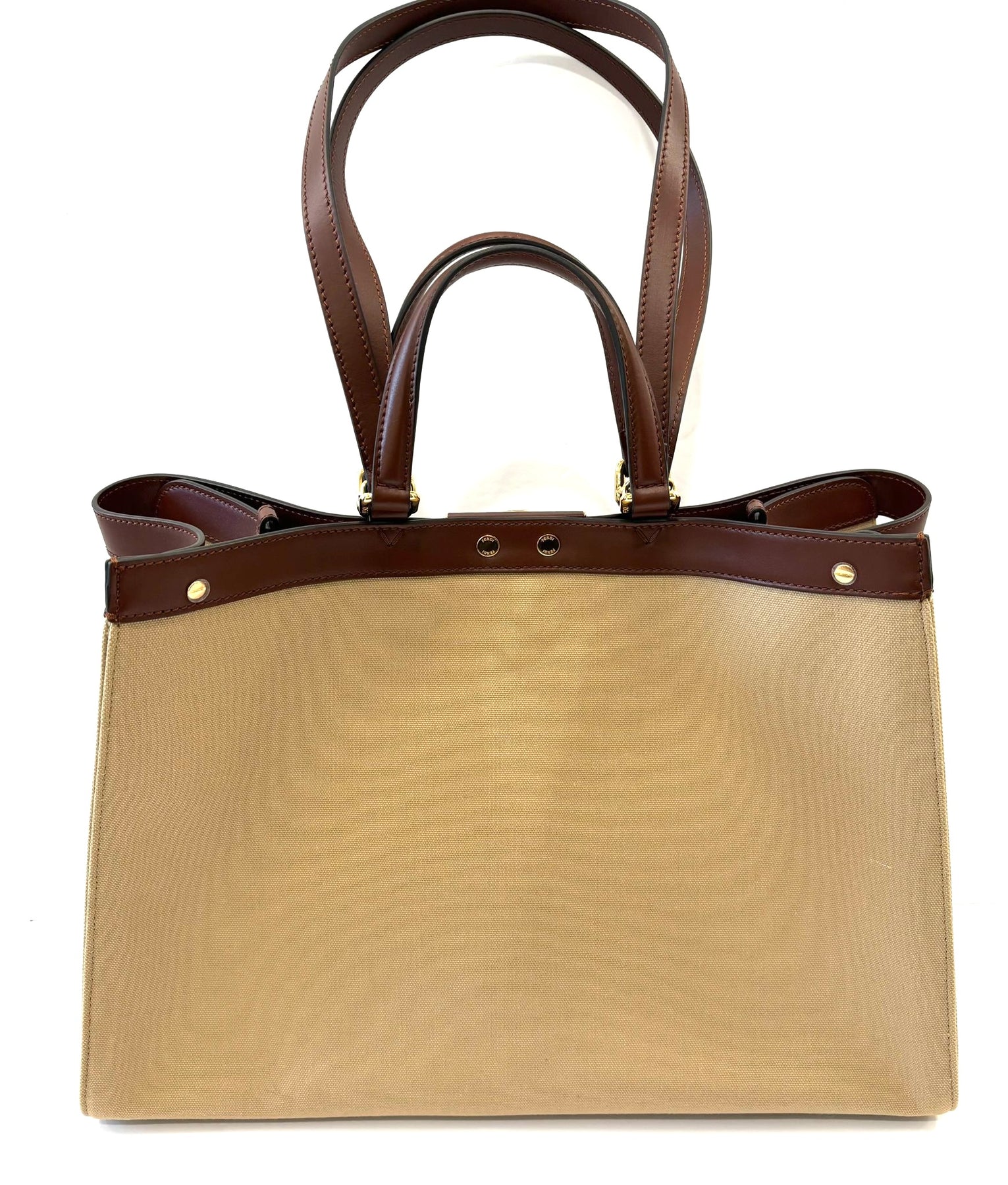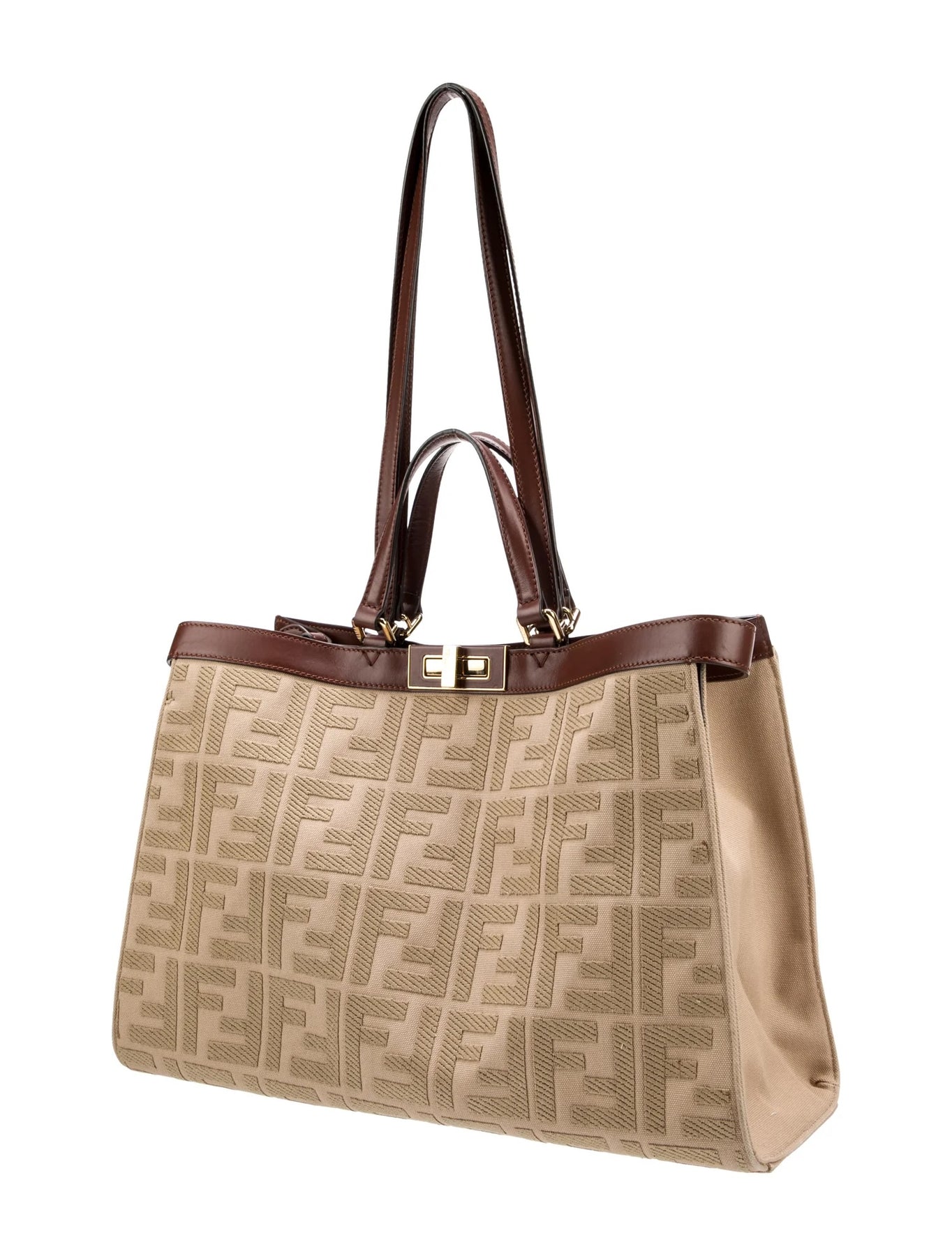 Elevate your Collection with this Stunning Fendi Peekaboo X-Lite Tote, crafted in beige Zucca canvas and paired with smooth brown leather trim. Lightweight yet beautifully structured, this iconic piece blends timeless luxury with effortless everyday functionality. The classic FF monogram pattern brings signature Fendi style, while the minimal interior keeps the bag easy to carry without added bulk.