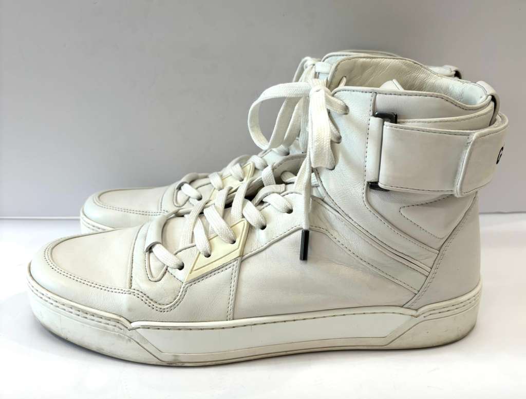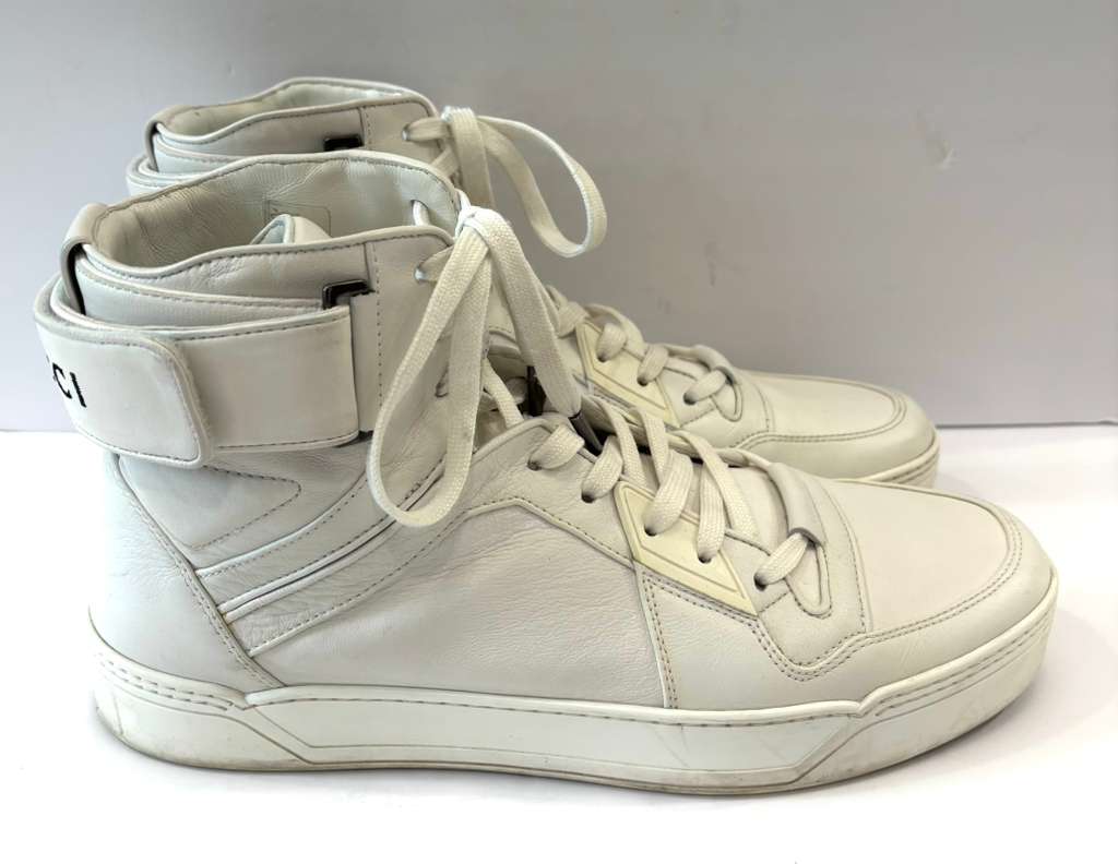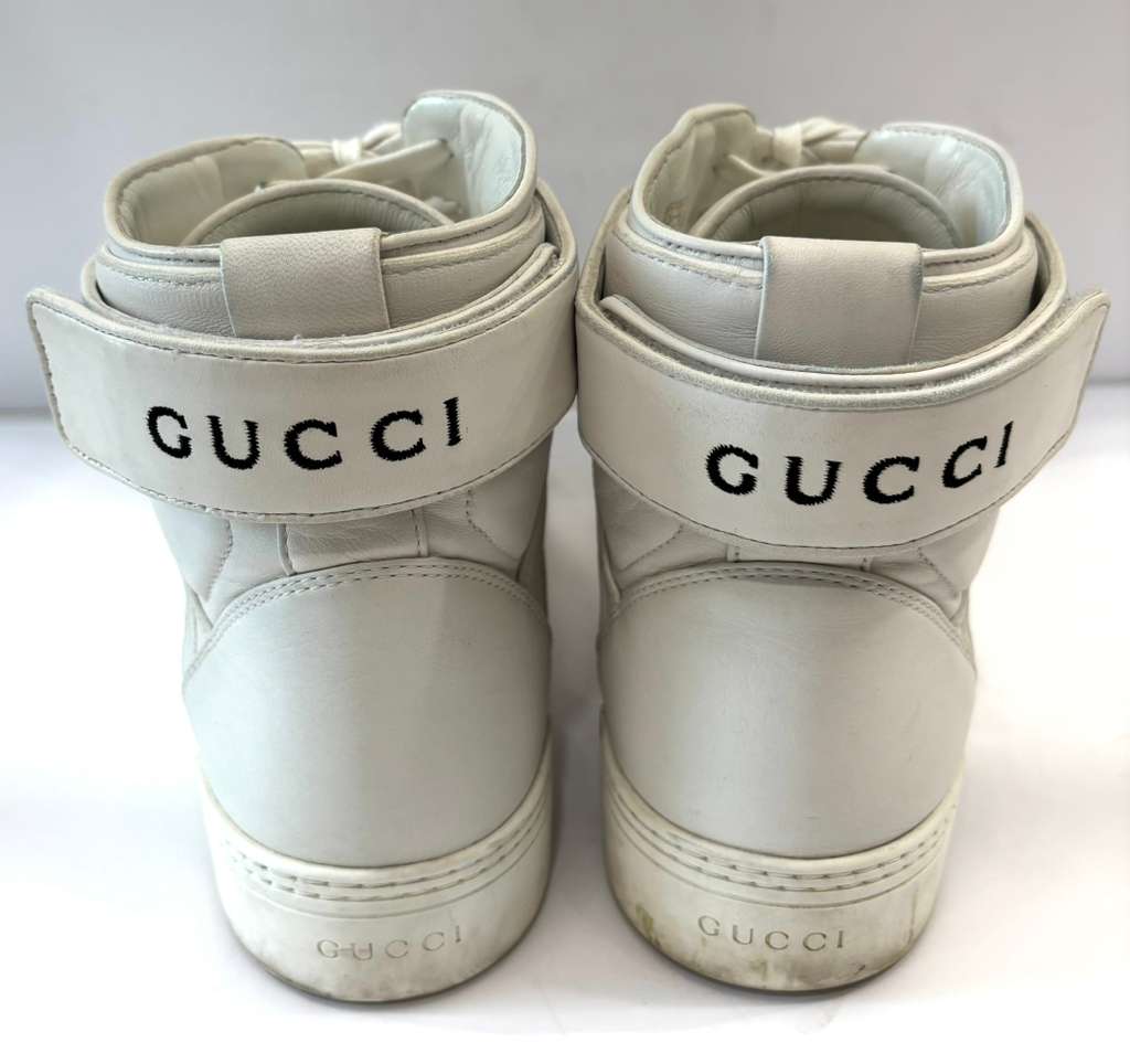 Step up your streetwear game with the Gucci Basketball-Inspired High-Top Sneakers, where iconic Italian luxury meets bold athletic energy. Drawing inspiration from classic 1990s basketball silhouettes, these high-top sneakers blend heritage style with contemporary flair and craftsmanship. Constructed in Italy from premium materials — including Gucci’s innovative Demetra or soft stretch leather — they’re designed for eye-catching style and all-day comfort on urban streets. Signature details like the Interlocking G logo badge, layered paneled uppers, padded ankle support, and lace-up fastening amplify the sporty aesthetic, while the durable rubber sole delivers traction and everyday wearability.