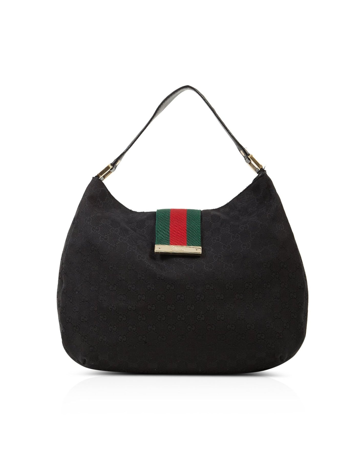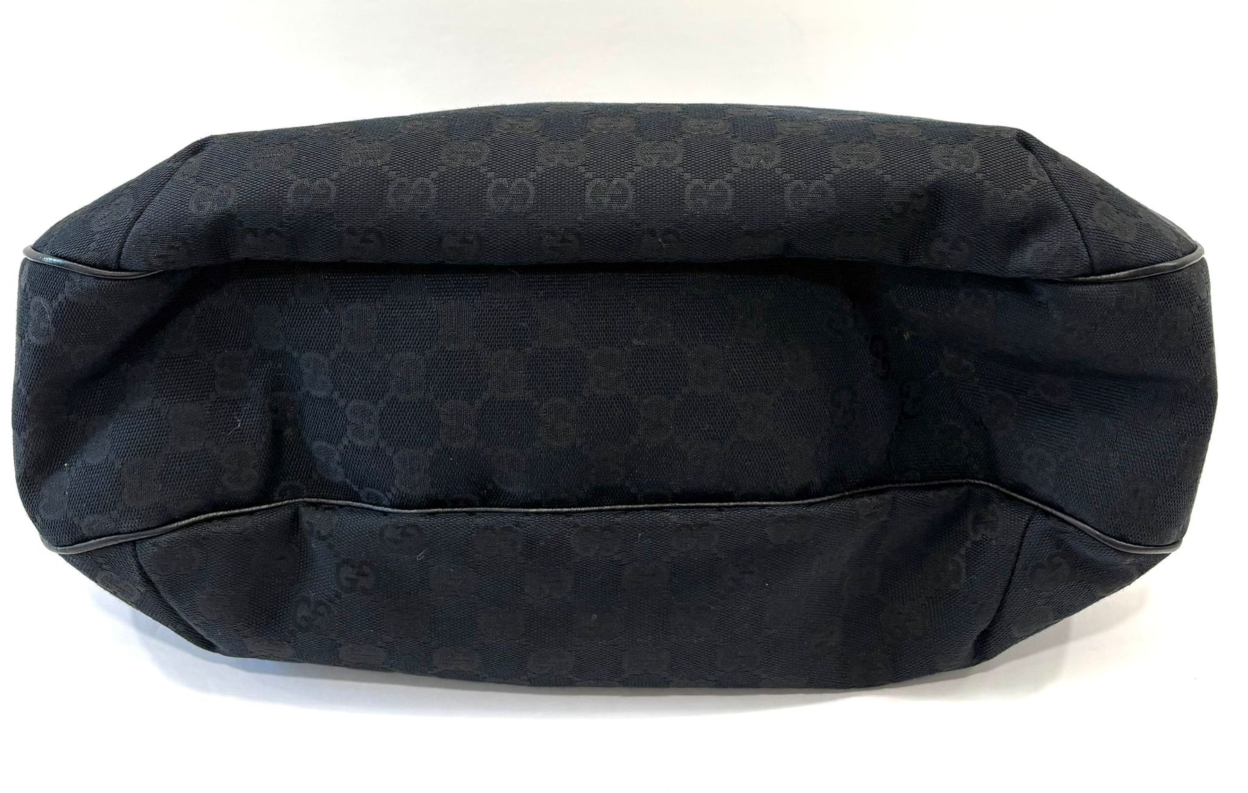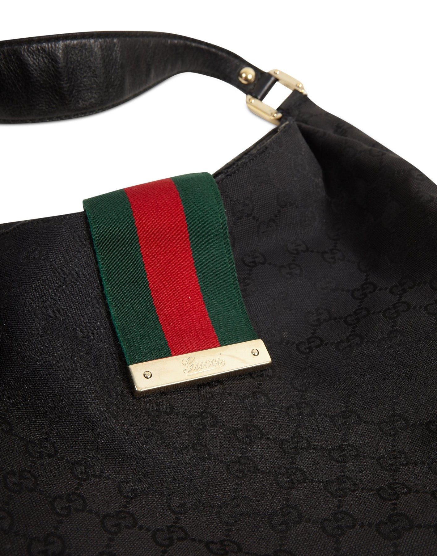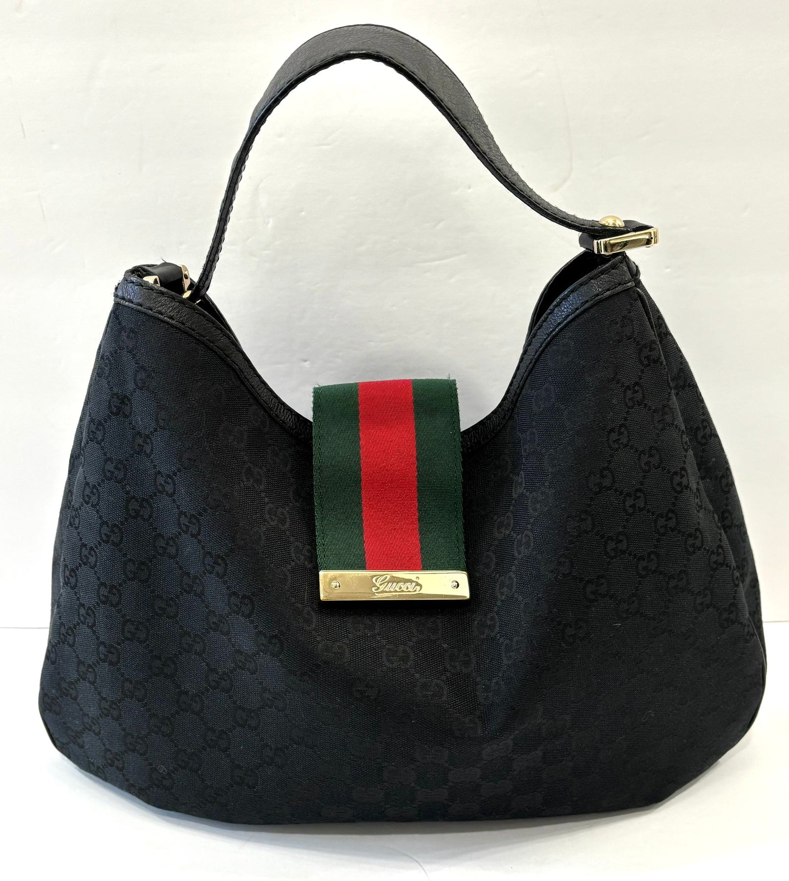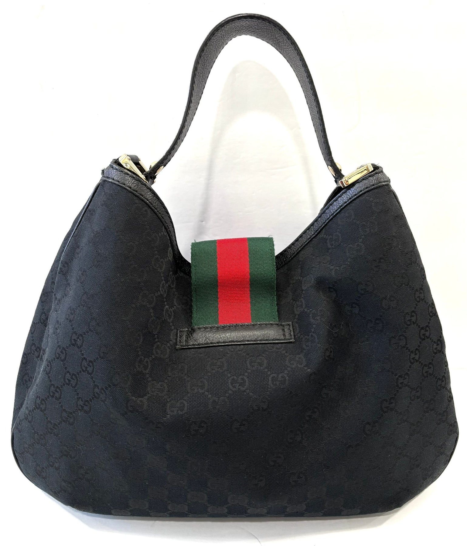 Effortlessly stylish and unmistakably Gucci, the Black GG Canvas & Leather Web Hobo Bag blends everyday functionality with signature luxury. Crafted from durable black GG Monogram canvas and accented with smooth black leather trim, this hobo silhouette offers a sleek, modern look that pairs seamlessly with any wardrobe.
