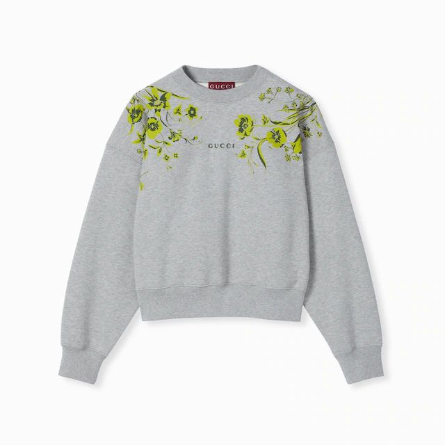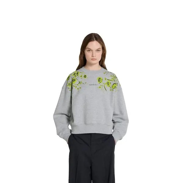 GUCCI COTTON JERSEY FLORAL PRINT SWEATSHIRT