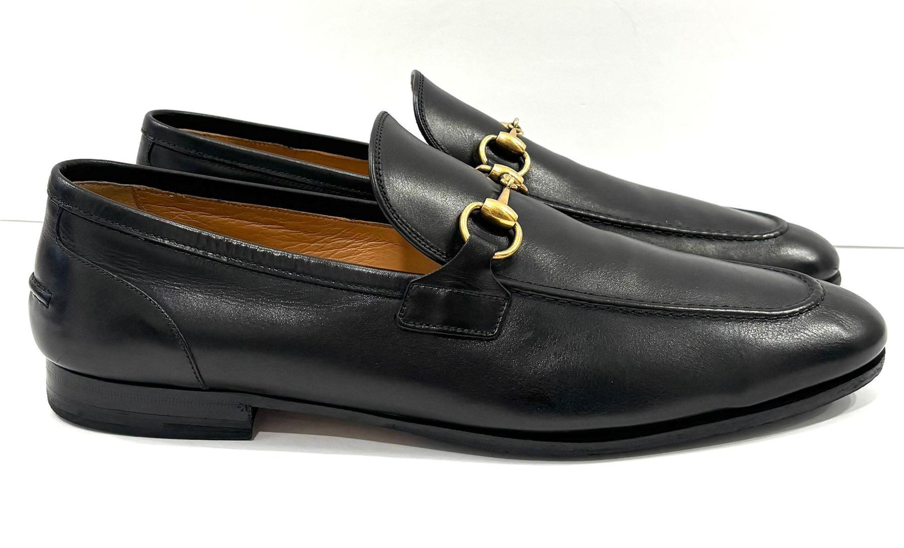 Gucci’s iconic Horsebit detail—a symbol of the brand’s equestrian roots—adds a distinguished touch of luxury. The soft leather lining and flexible construction ensure exceptional comfort, while the elongated toe and slim shape deliver a polished, contemporary finish.