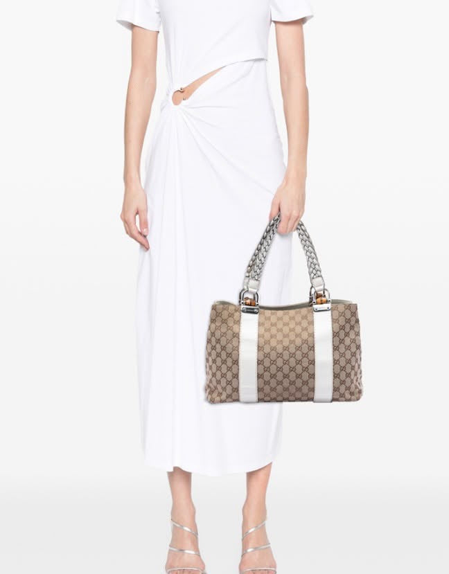 Combining archival Gucci design codes—GG canvas and bamboo detailing—the Libeccio tote stands as a versatile piece that merges vintage inspiration with functional modern styling.