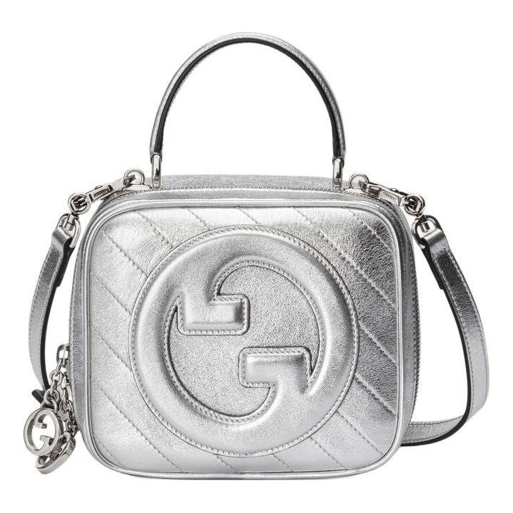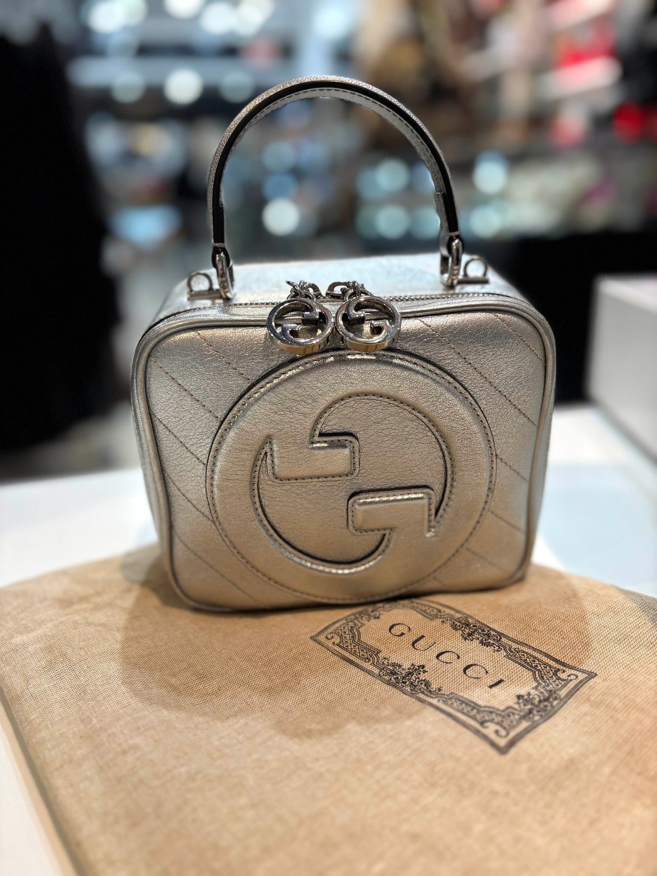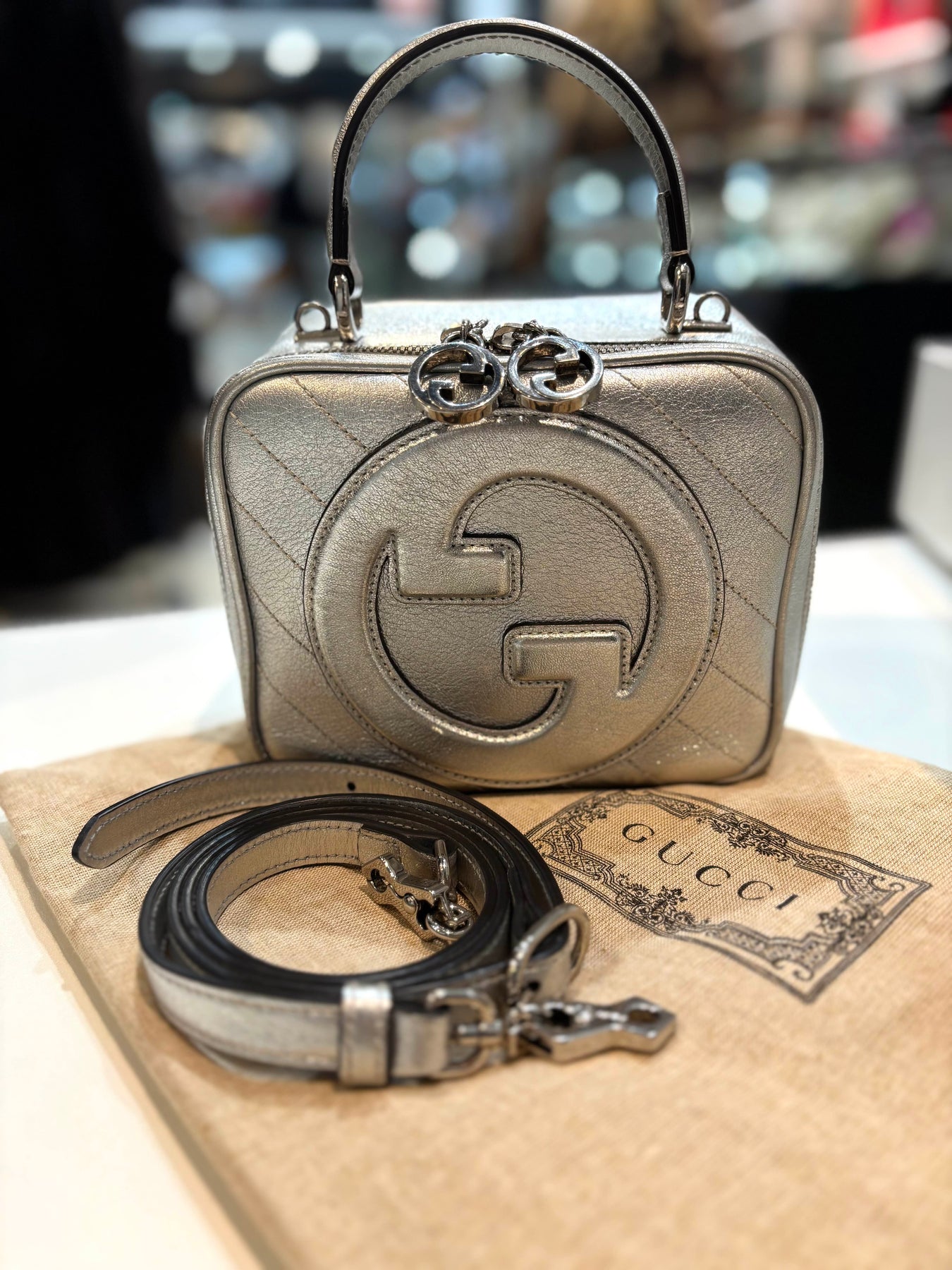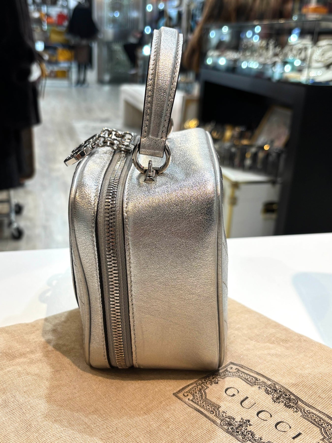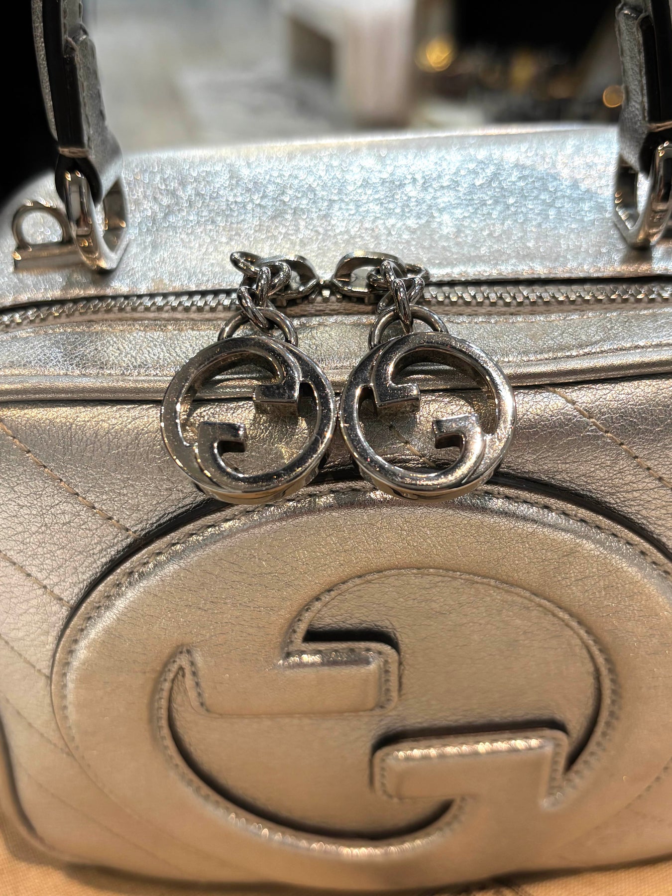 GUCCI BLONDIE METALLIC LEATHER TOP HANDLE BAG WITH STRAP
