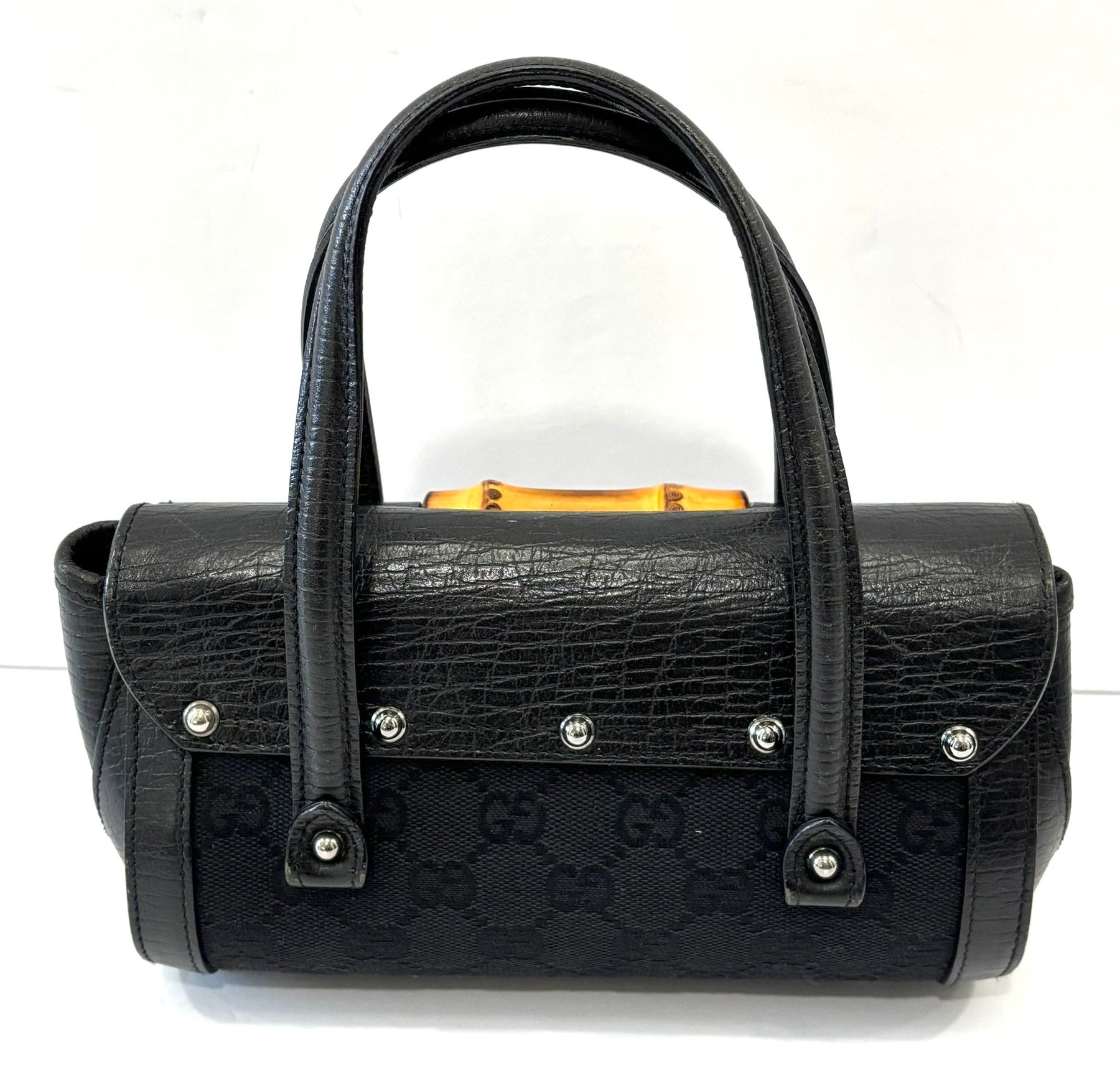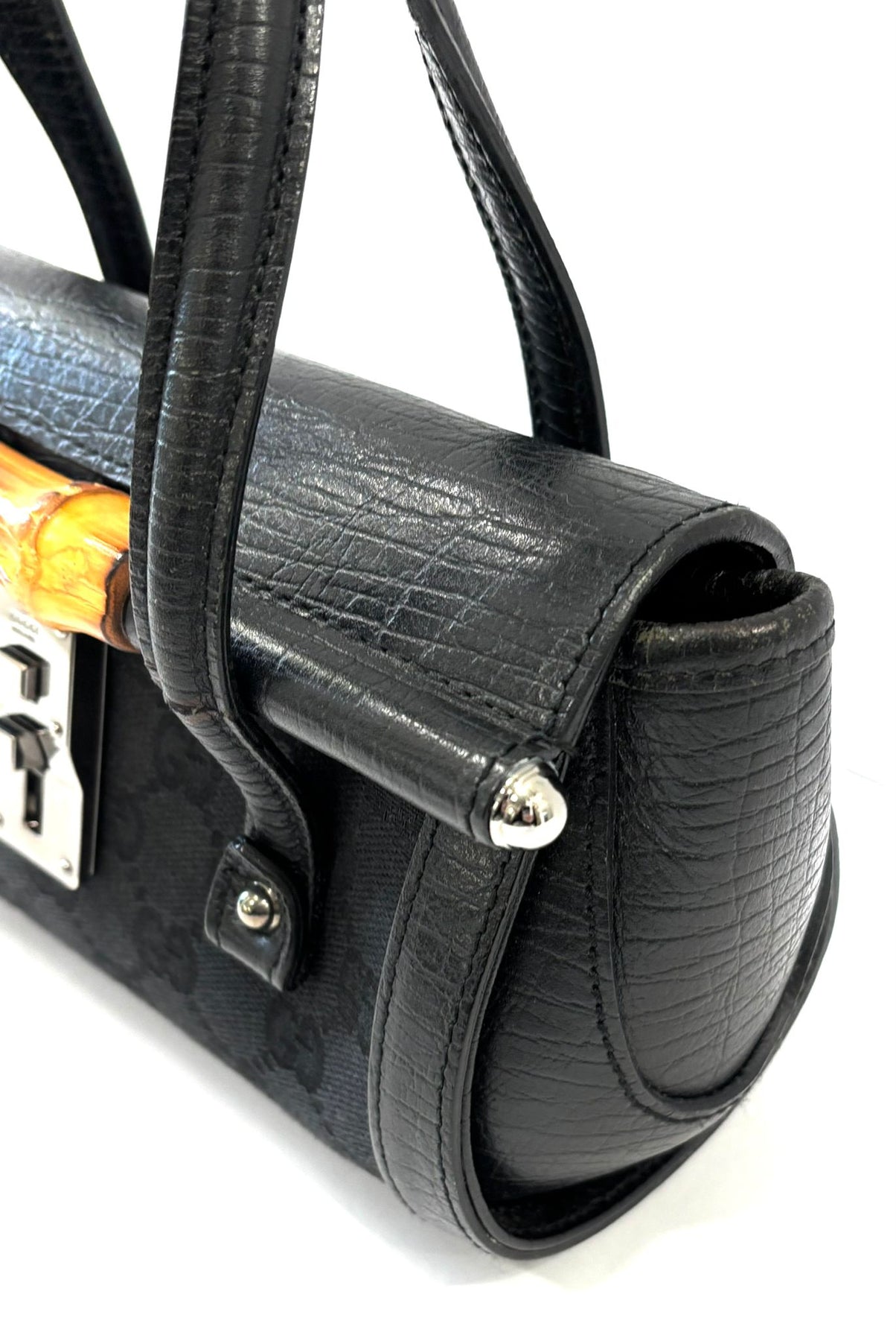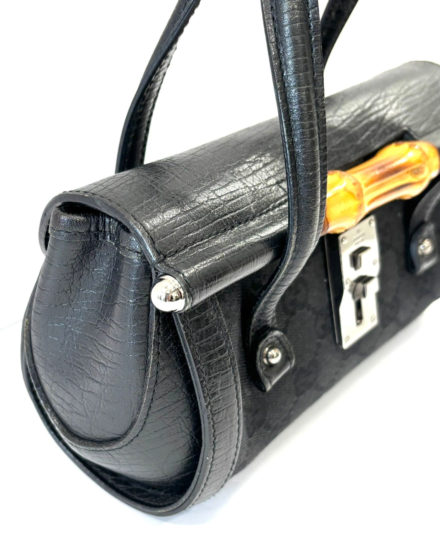 GUCCI SMALL GG MONOGRAM CALFSKIN LEATHER CANVAS BAMBOO BULLET BAG