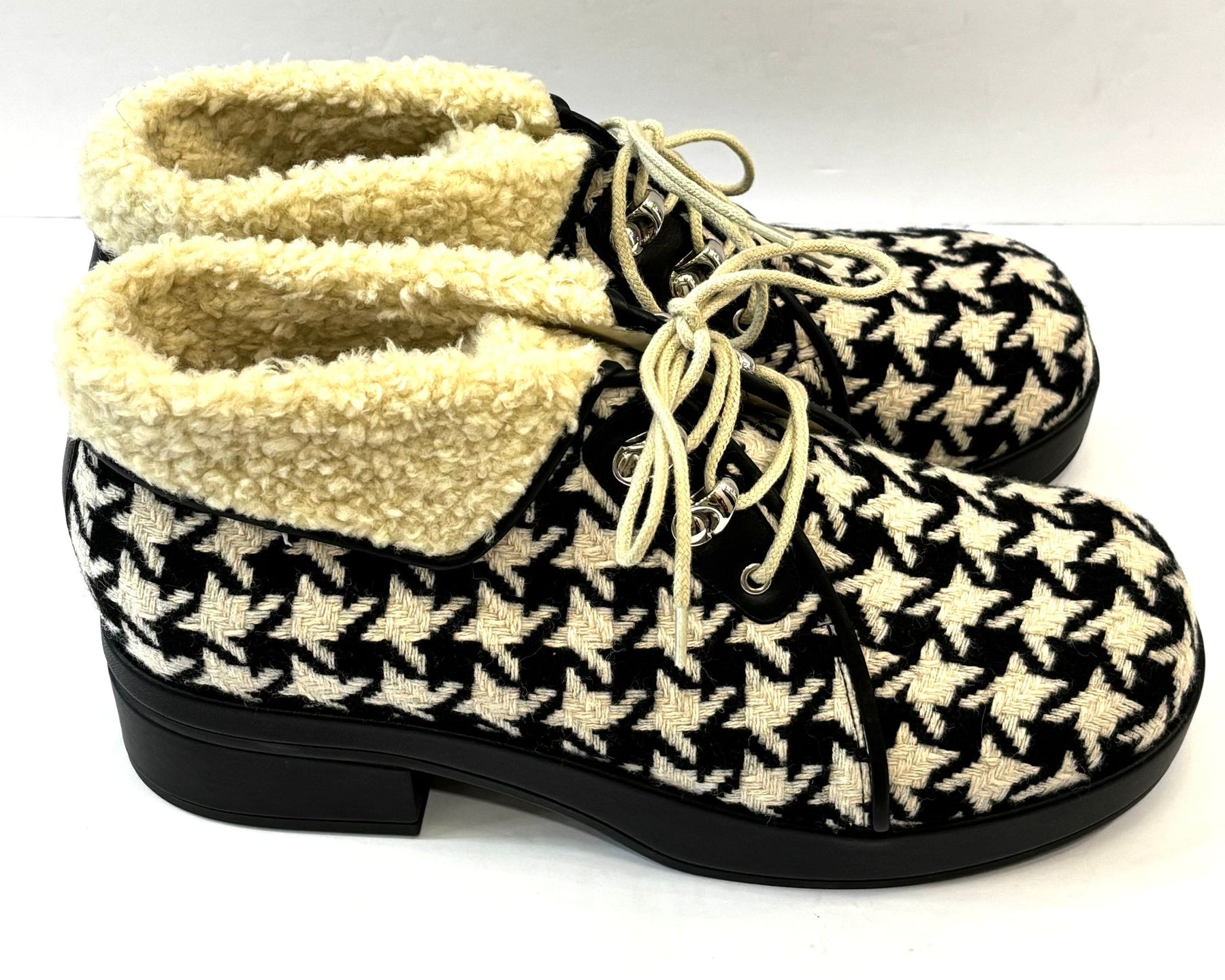 GUCCI WOOL HOUNDSTOOTH PRINT HIKING BOOTS