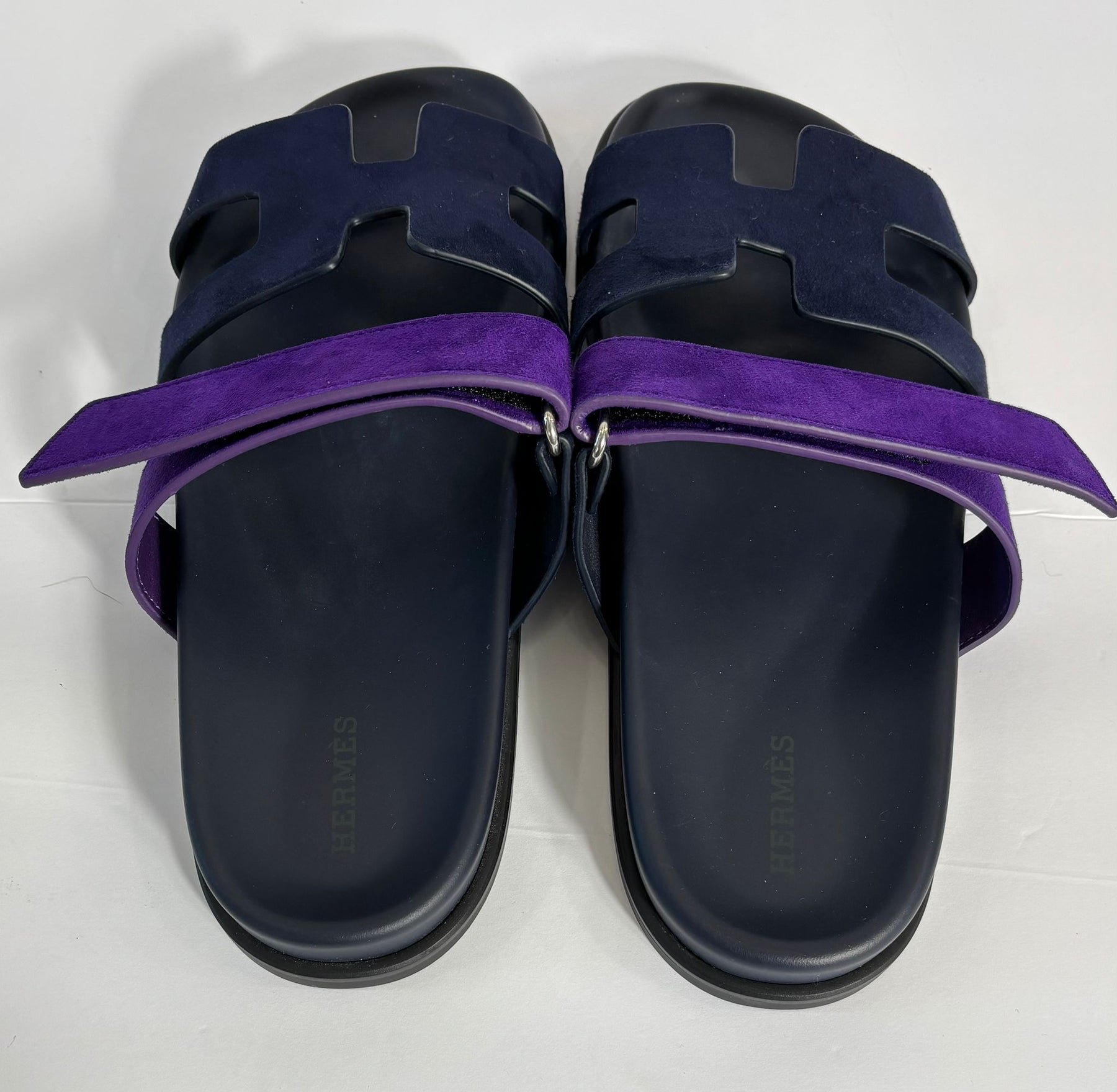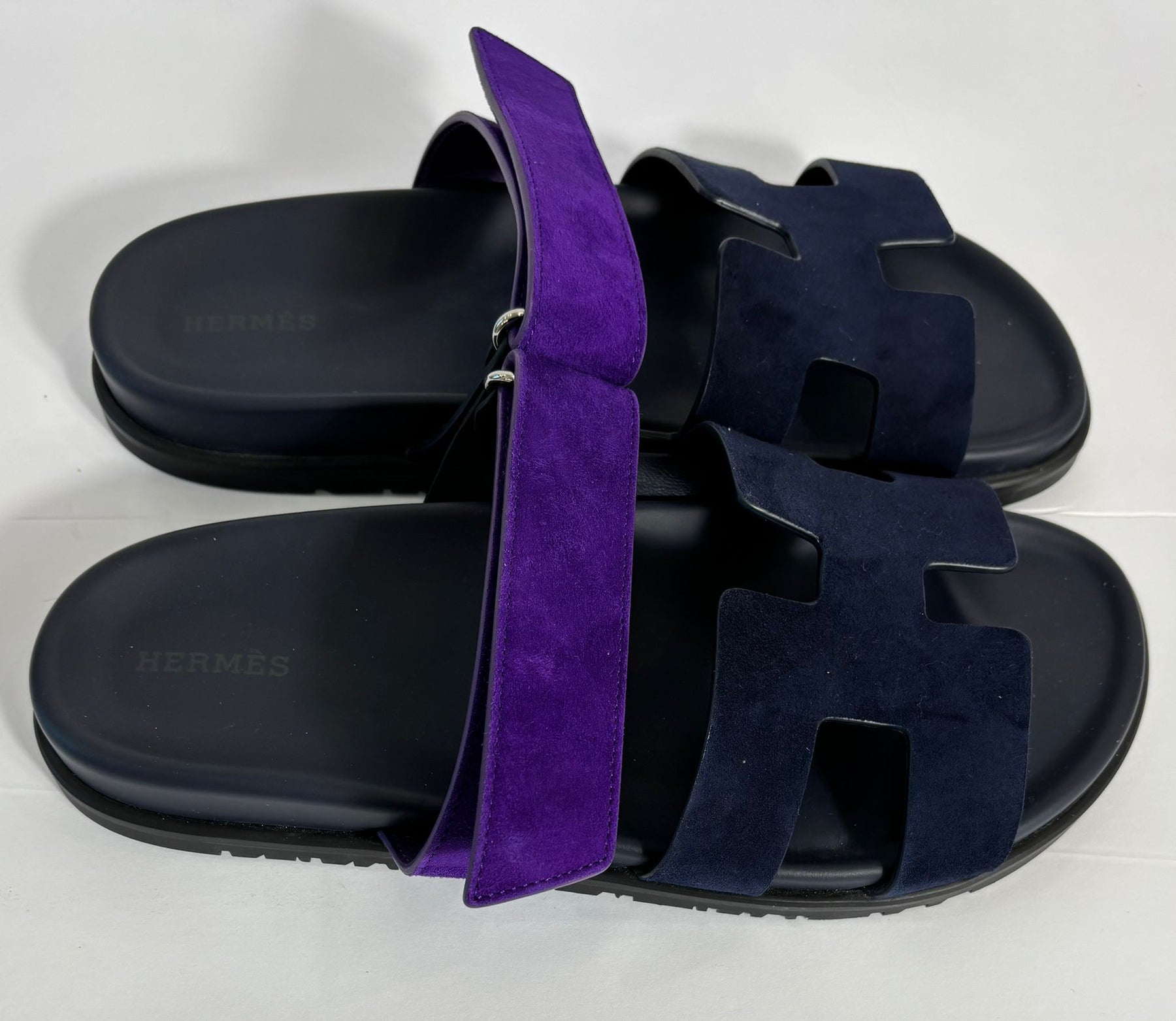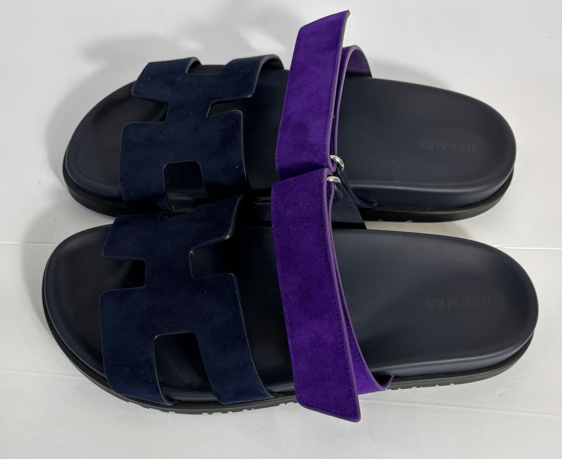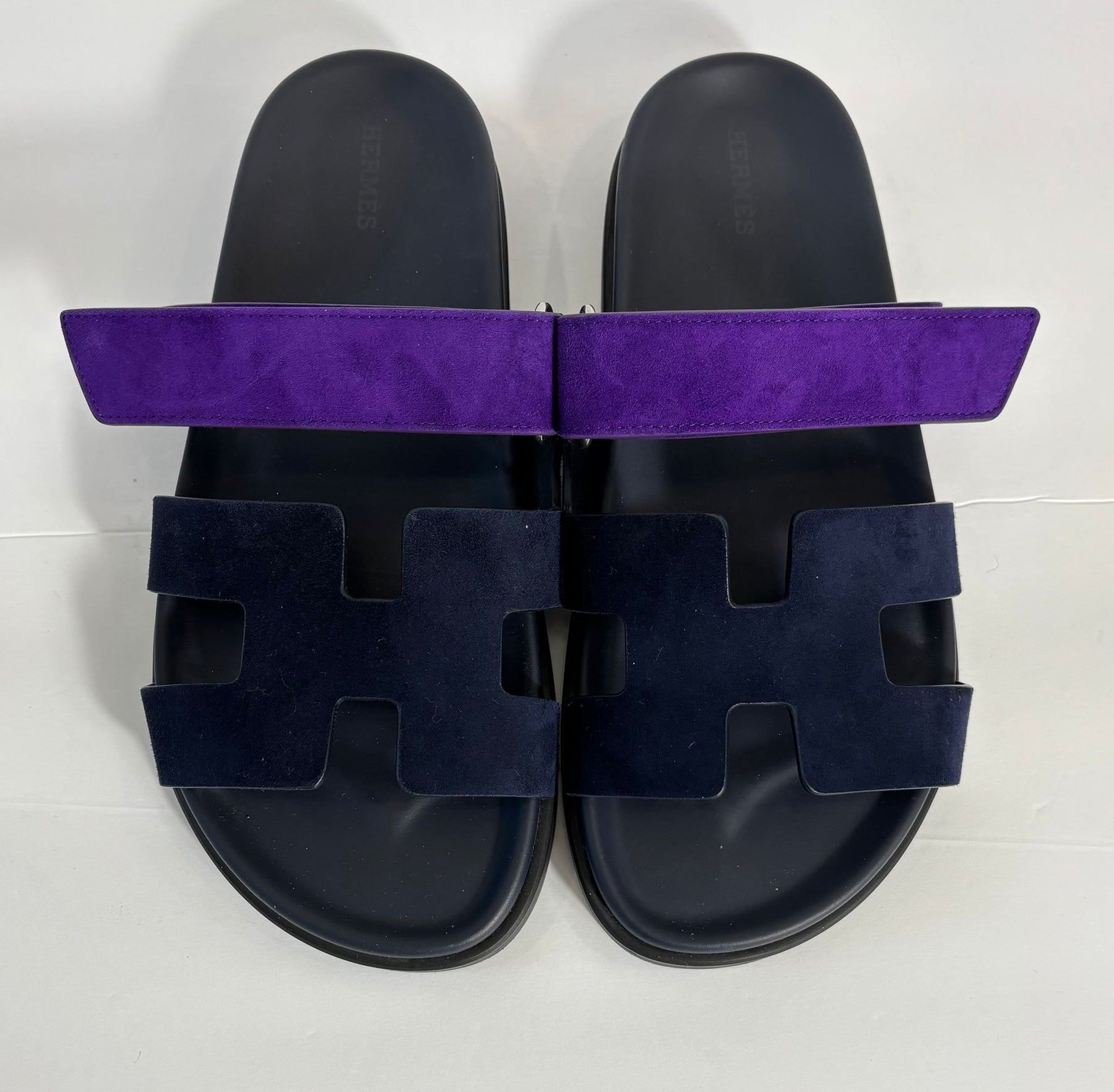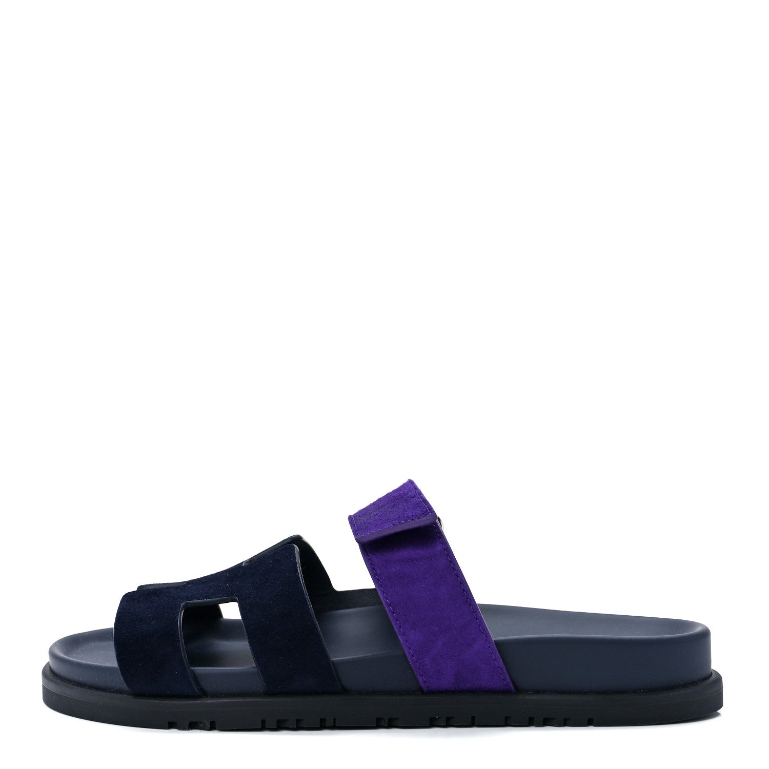 Crafted in supple suede leather, the upper showcases Hermès' timeless craftsmanship, while the ergonomic footbed provides all-day comfort. Subtle branding and sleek tonal stitching complete the look, making the Chypre a versatile choice—whether worn with tailored separates or relaxed resortwear.