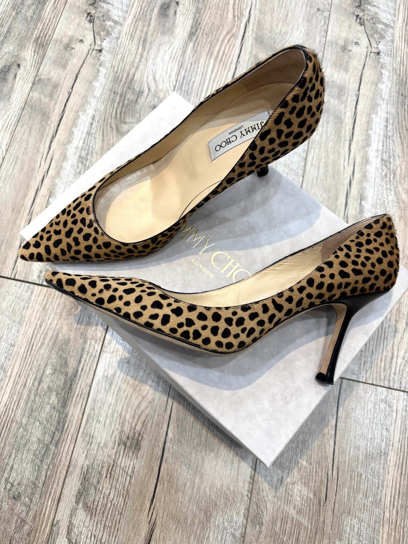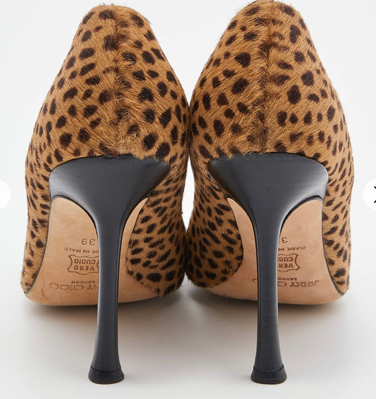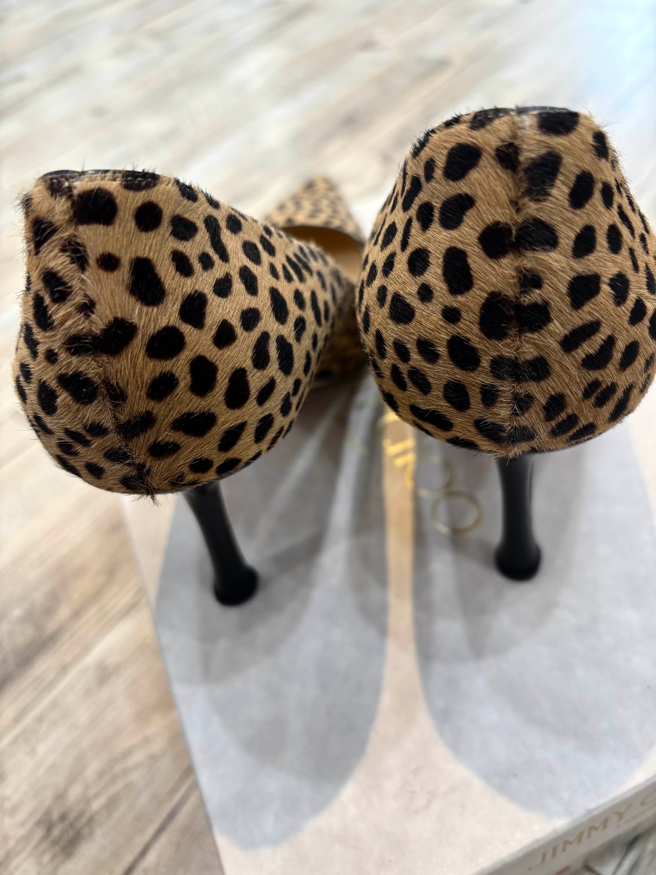 JIMMY CHOO LEOPARD PRINT PONY HAIR PUMPS