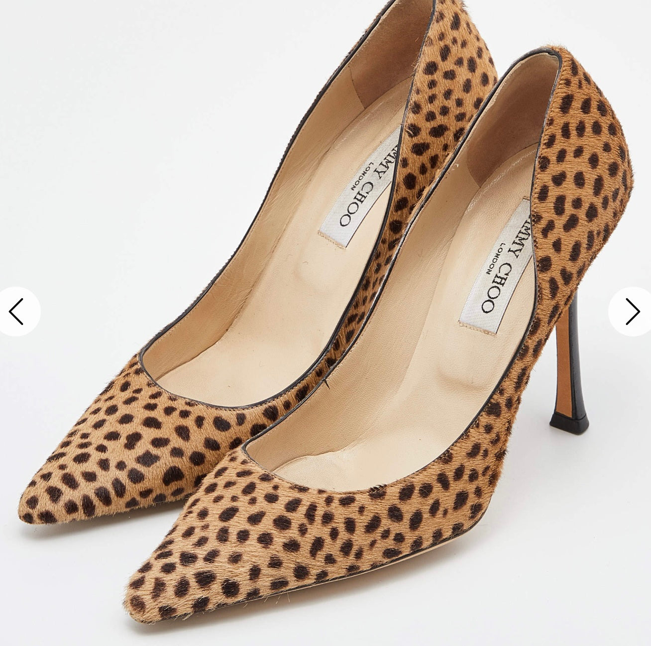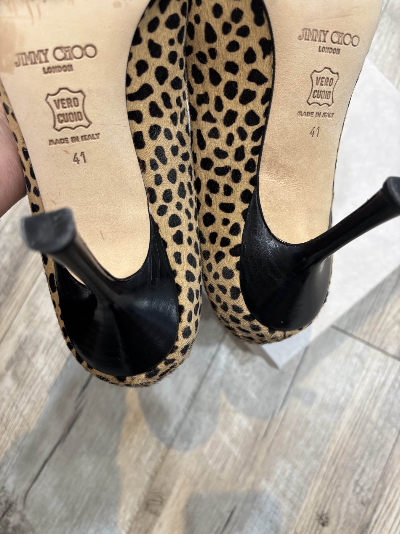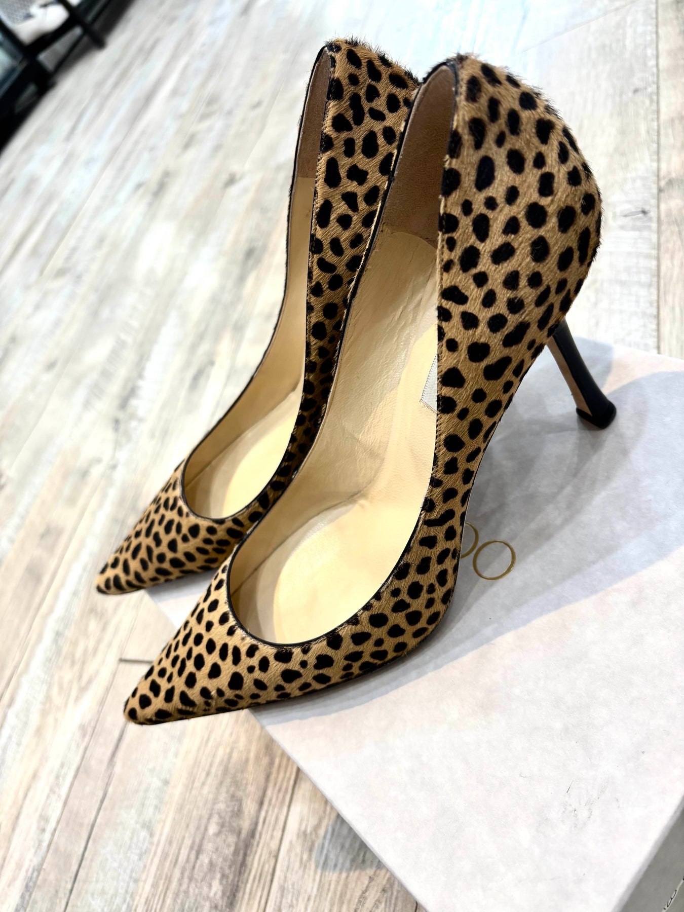 JIMMY CHOO LEOPARD PRINT PONY HAIR PUMPS