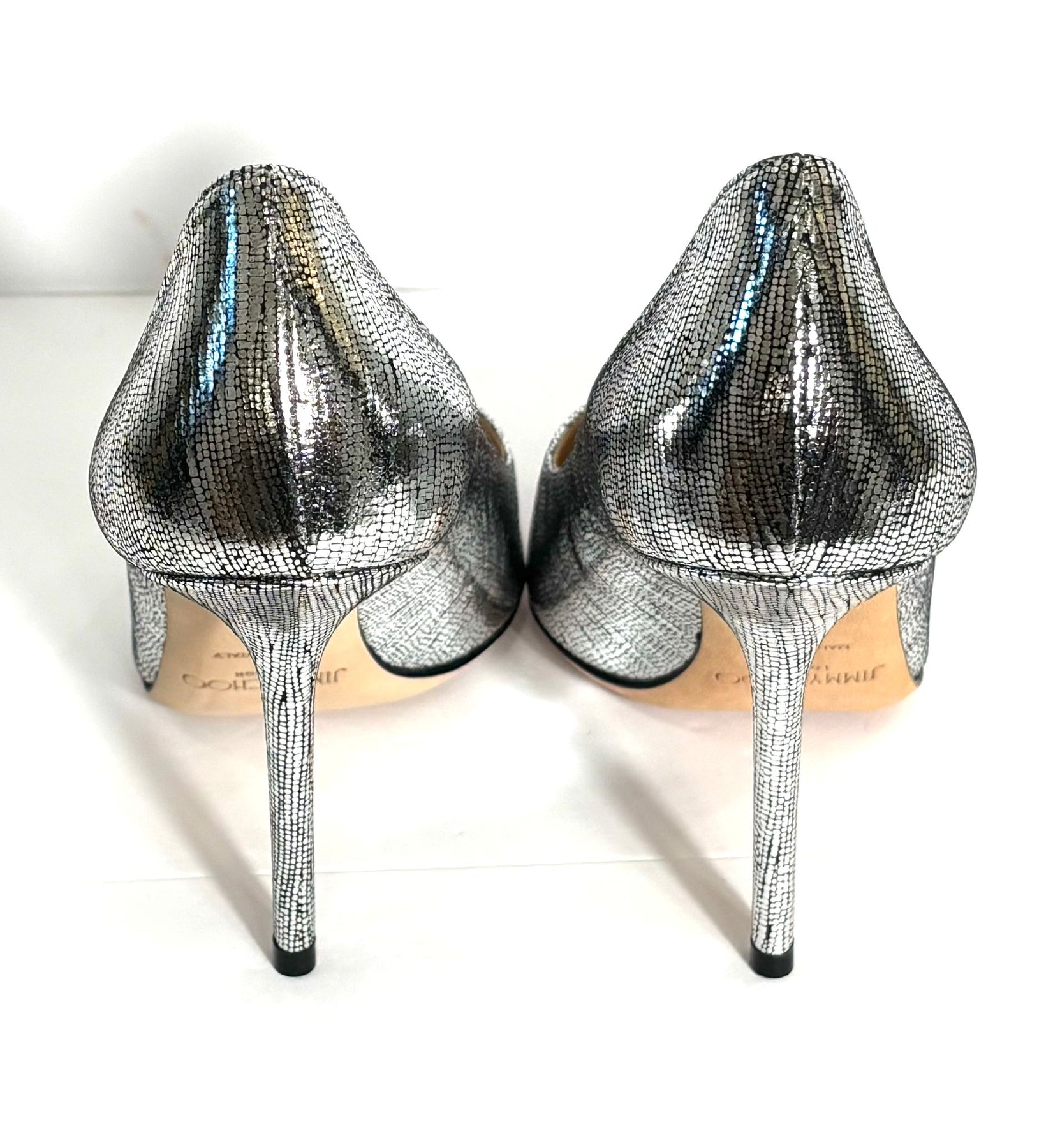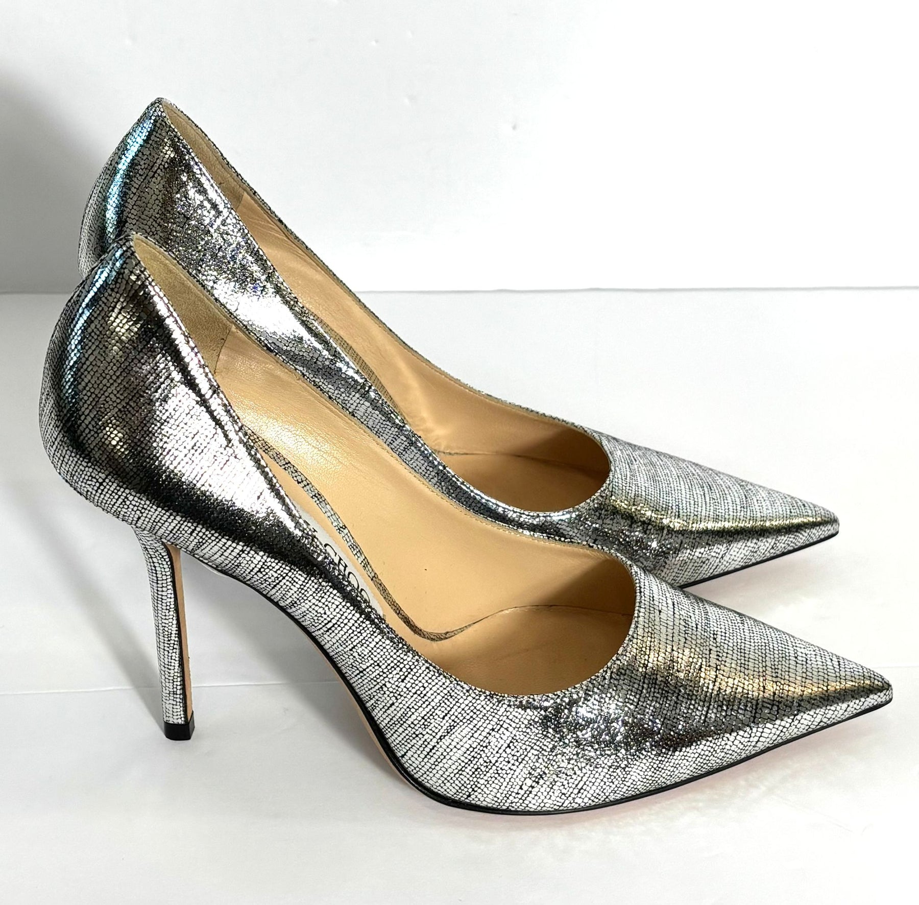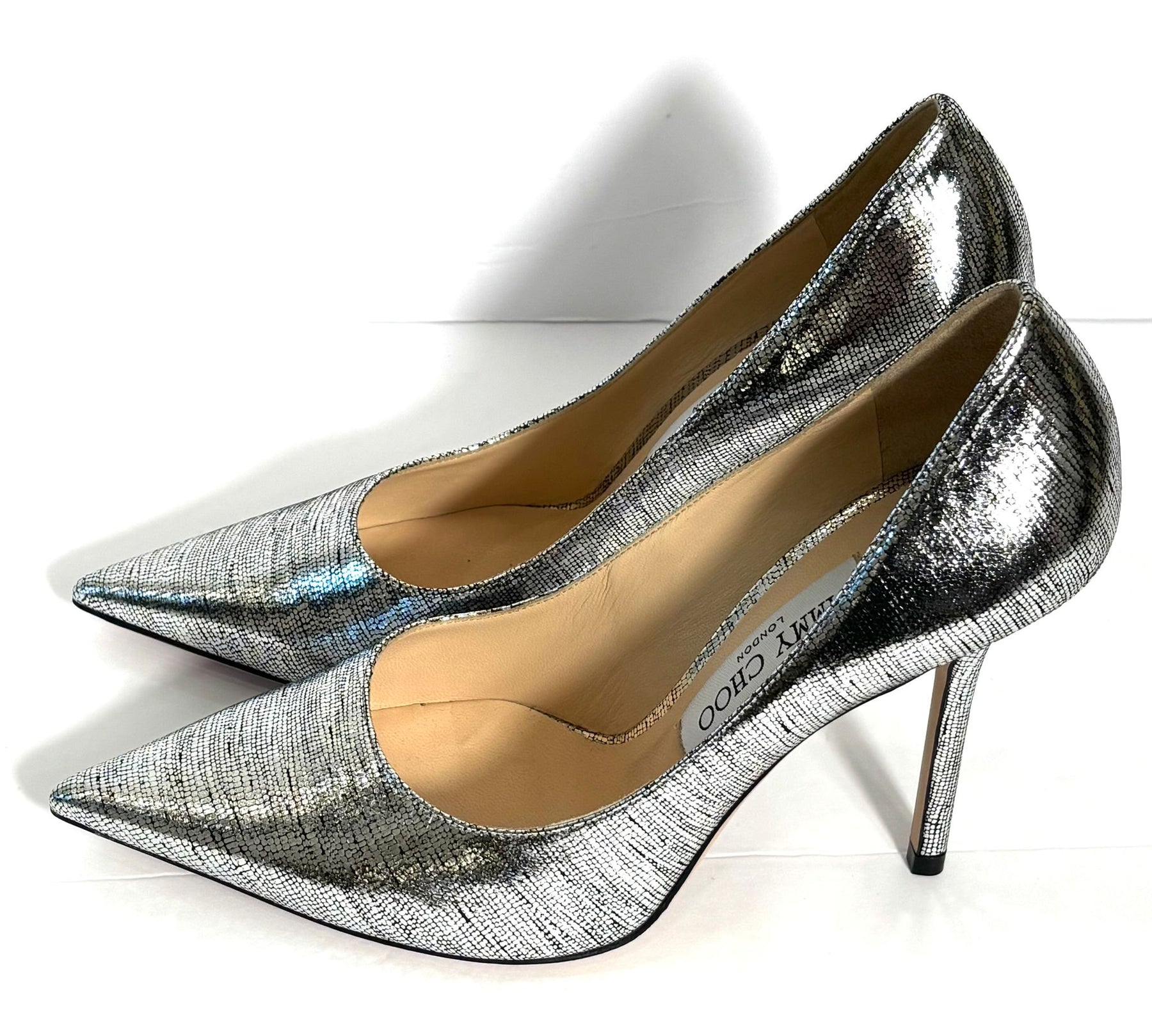 Step into exquisite elegance with the Love 85 pumps — a refined silhouette that encapsulates Jimmy Choo’s signature blend of sophistication and feminity. With an 85 mm (approximately 3.3″) stiletto heel, a sharply pointed toe and graceful arch, these pumps are crafted to elongate the leg and elevate any ensemble.