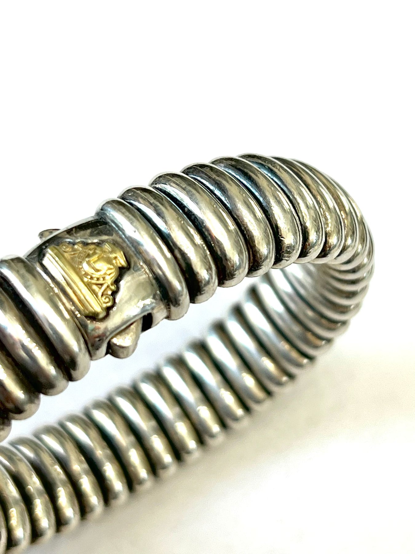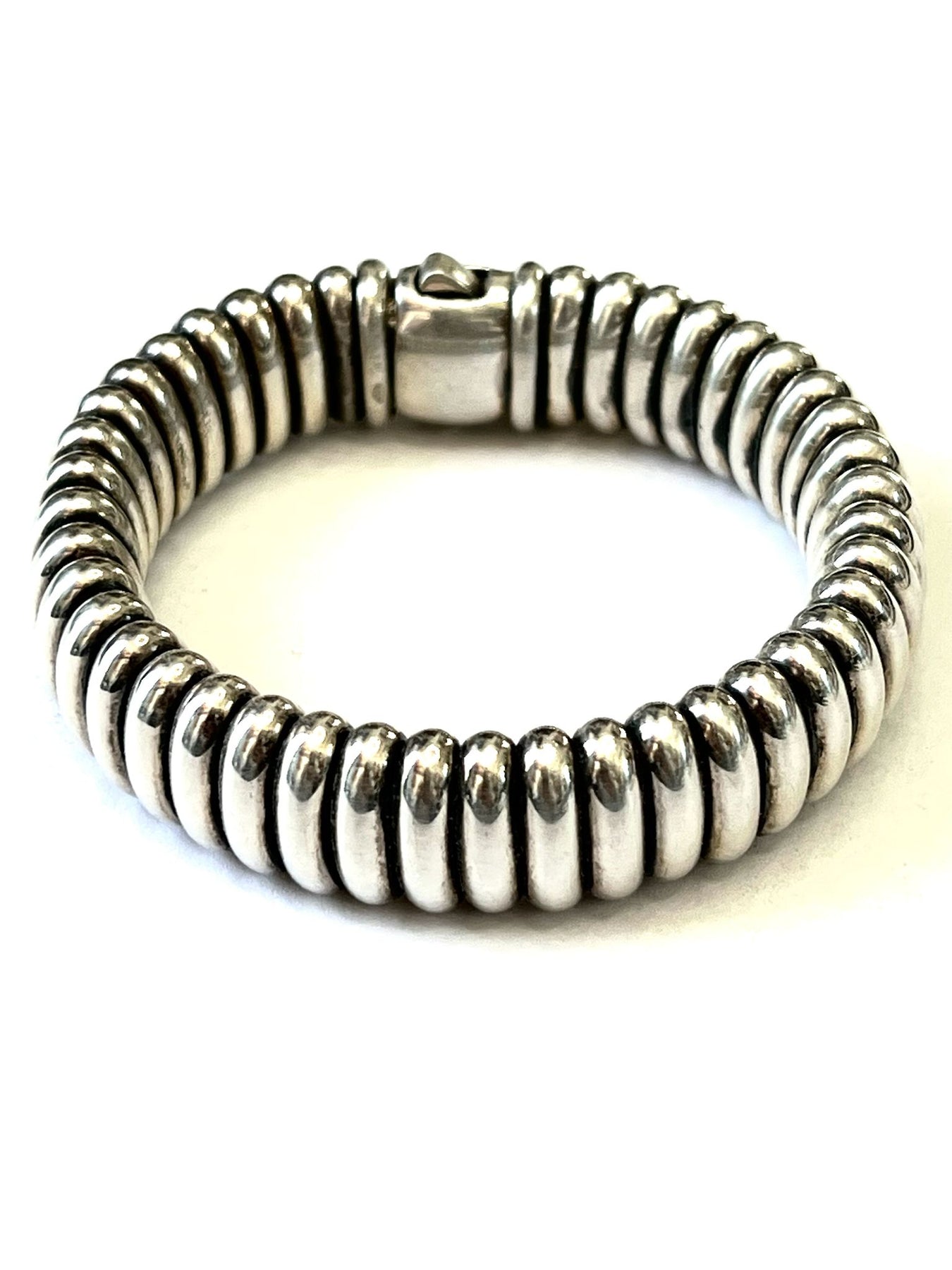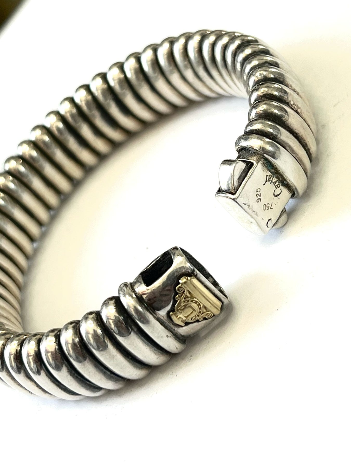 Sculptural and refined, the bracelet’s fluid form contours gracefully to the wrist, offering both comfort and elegance. Whether worn alone or layered, it adds a touch of enduring luxury to any look—day or night.