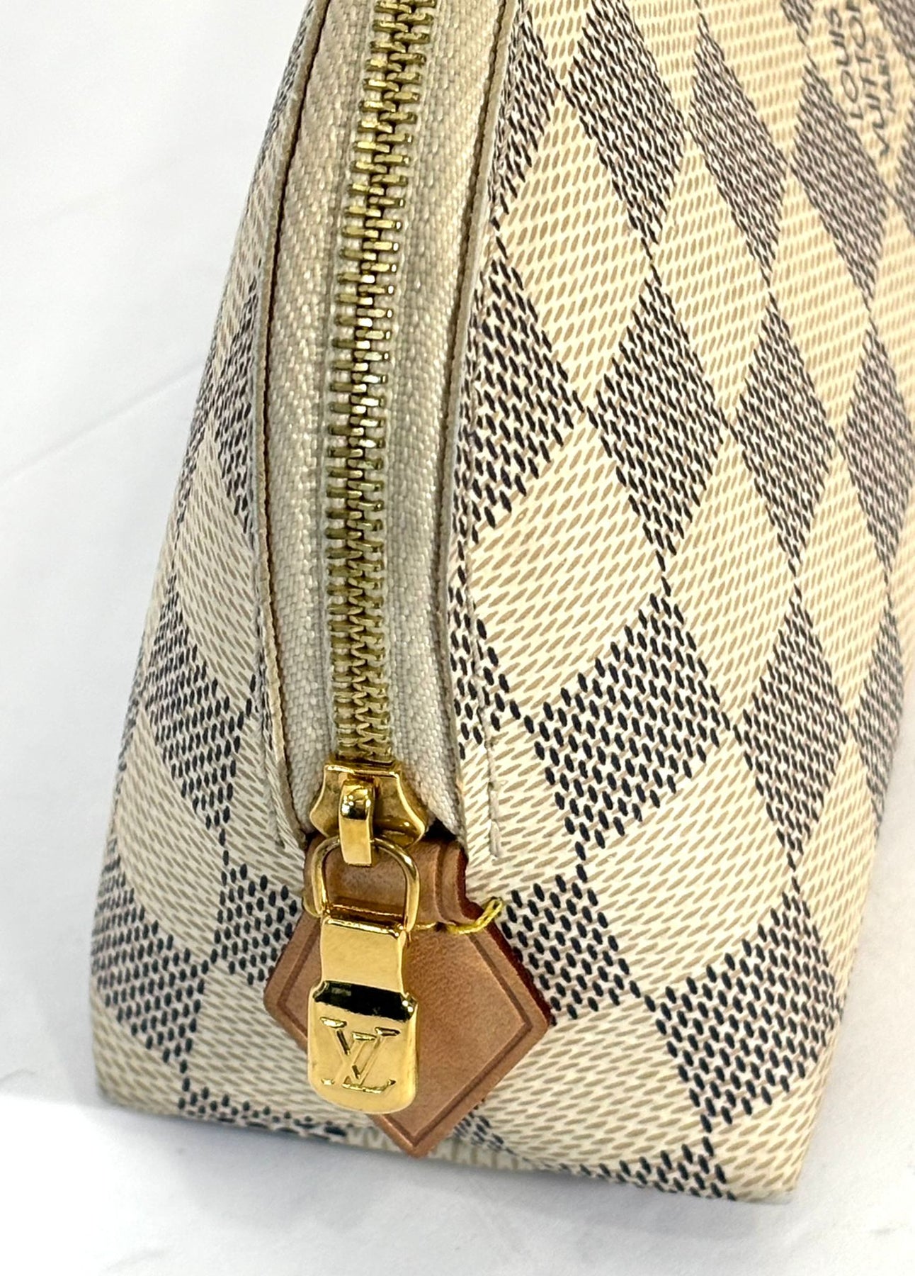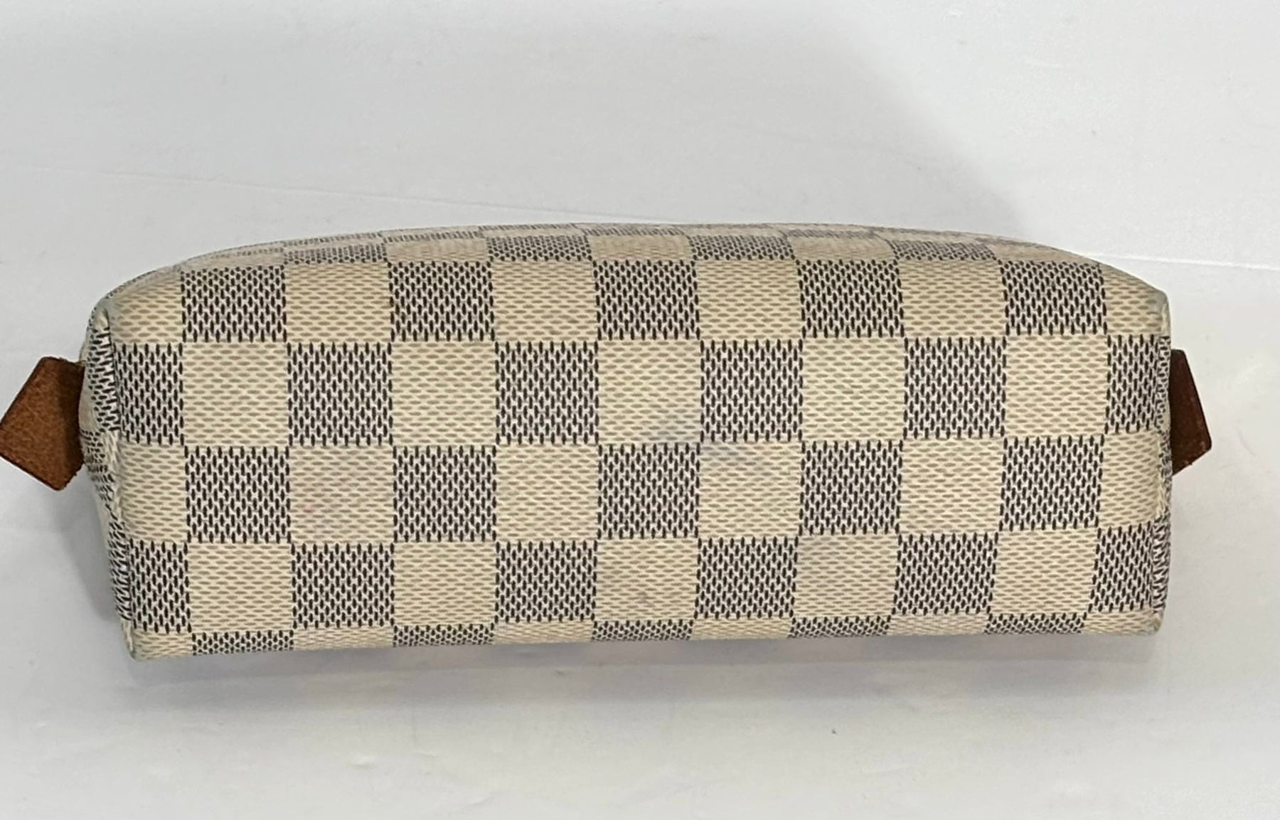 Chic and practical, the Louis Vuitton Damier Azur Cosmetic Pouch is the perfect accessory to keep your beauty essentials organized in style. Crafted from Louis Vuitton’s signature Damier Azur coated canvas, this pouch combines a fresh, summery aesthetic with durable design.