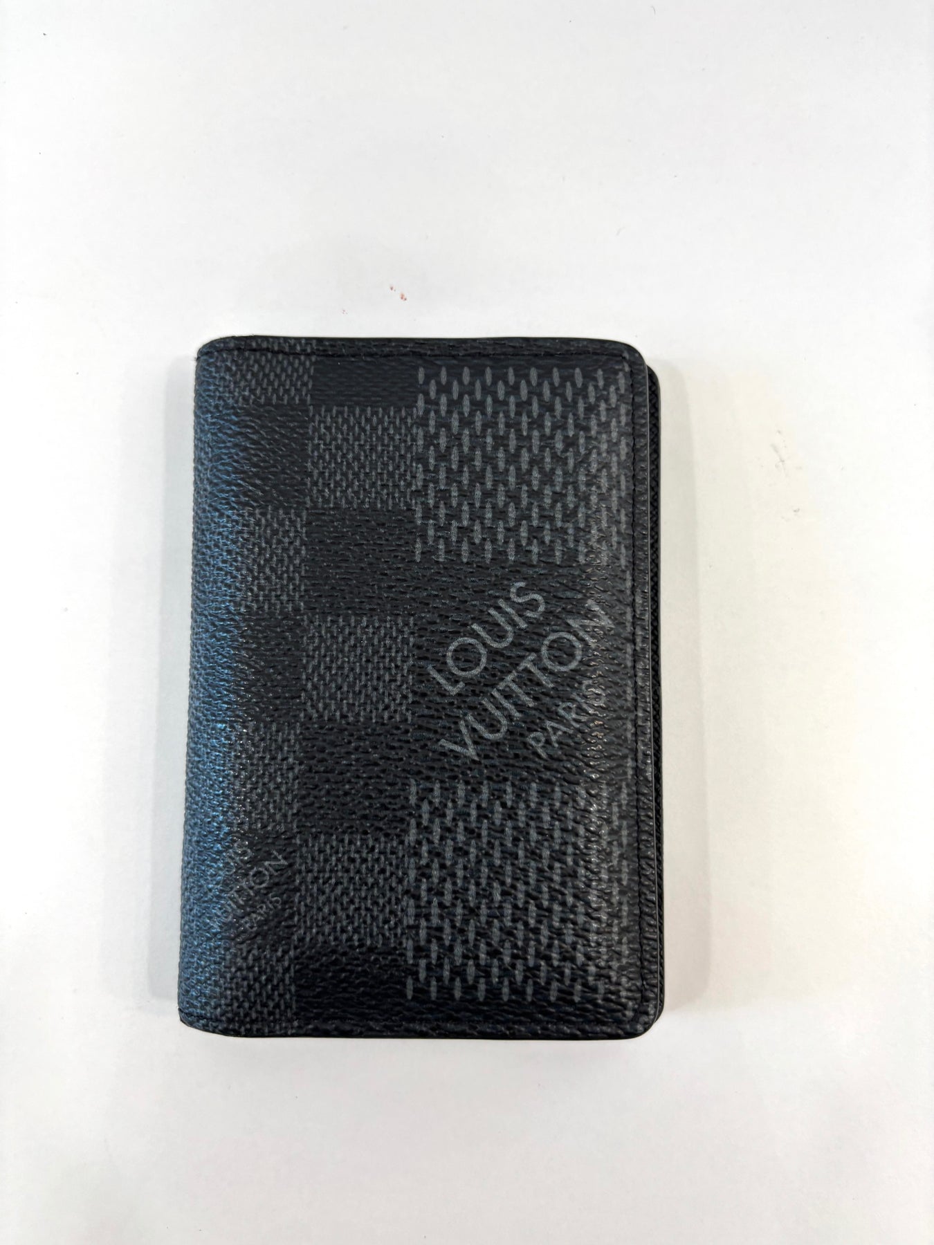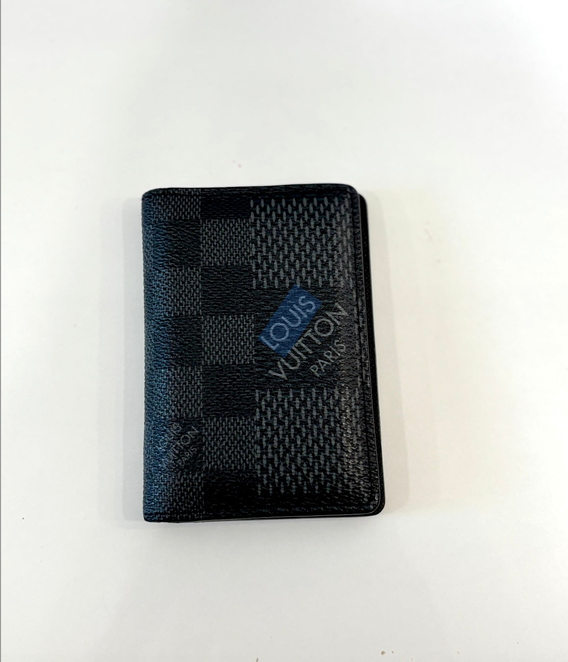Sleek and modern, the Louis Vuitton Pocket Organizer in Damier Graphite 3D coated canvas is a stylish compact wallet designed for maximum functionality. This refined everyday essential features a calf leather lining and offers multiple compartments to keep cards, cash, and papers neatly organized.