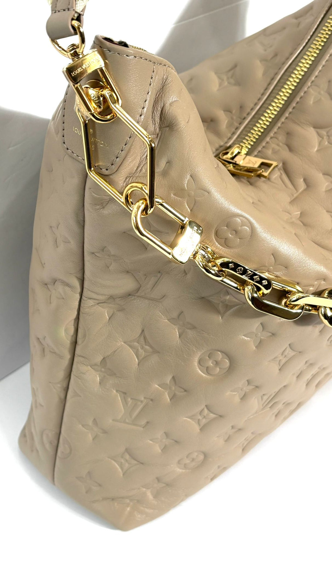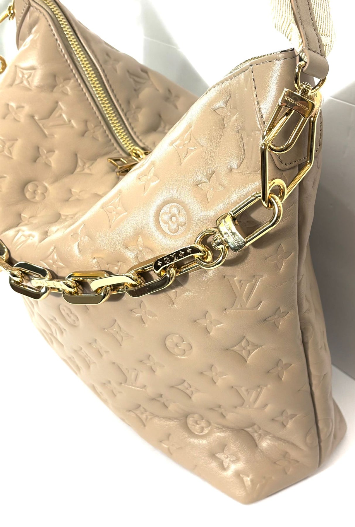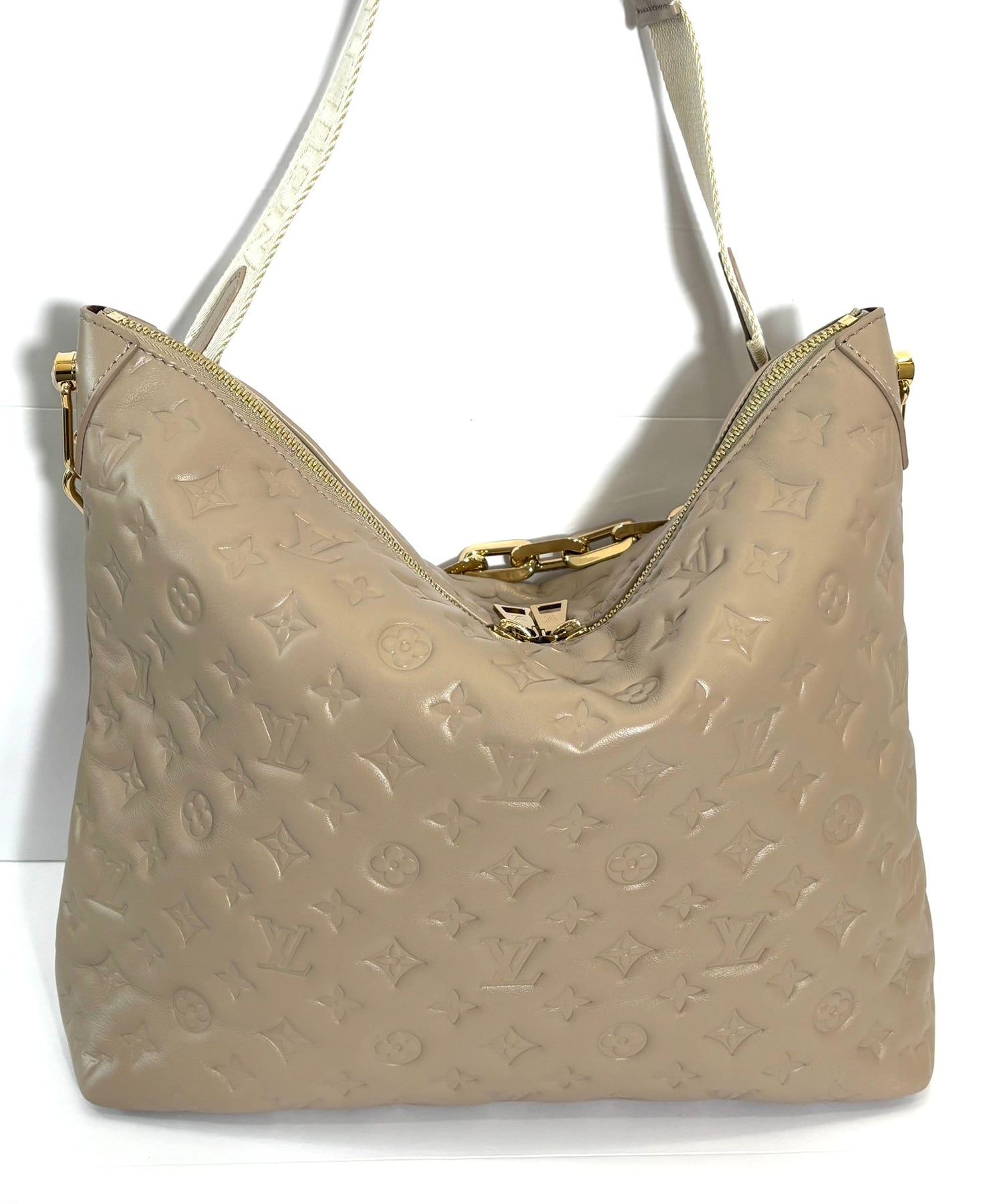 Bold, contemporary, and irresistibly soft, the Louis Vuitton Coussin MM redefines everyday luxury. Crafted from puffy Monogram-embossed lambskin leather, this standout piece brings both comfort and edge to your wardrobe.
