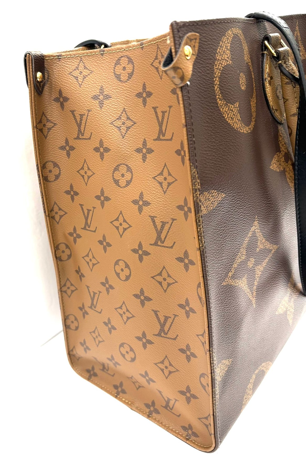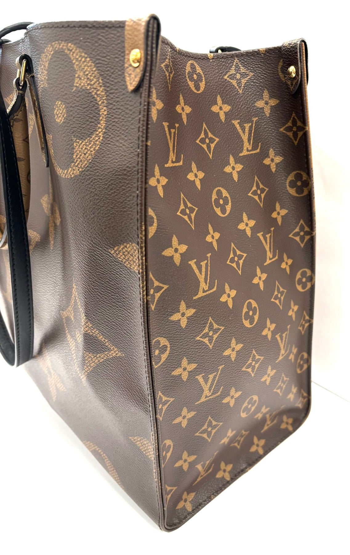 OnTheGo GM tote bag is as striking as it is practical. A Monogram Reverse pattern on the sides and handles creates a stylish contrast in color and scale. With its generous capacity, shoulder straps and iconic Toron top handles, this versatile GM model is an ideal bag for everyday wear.