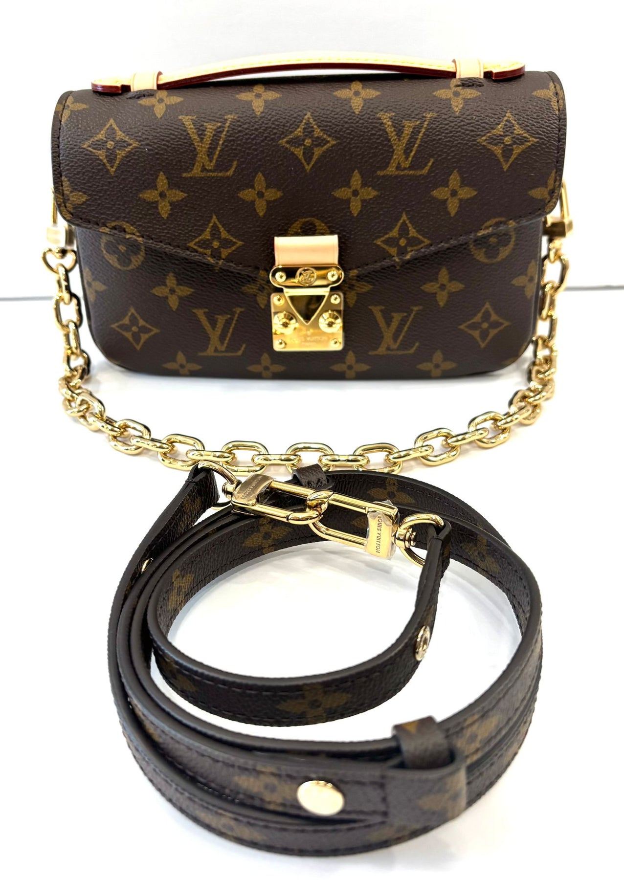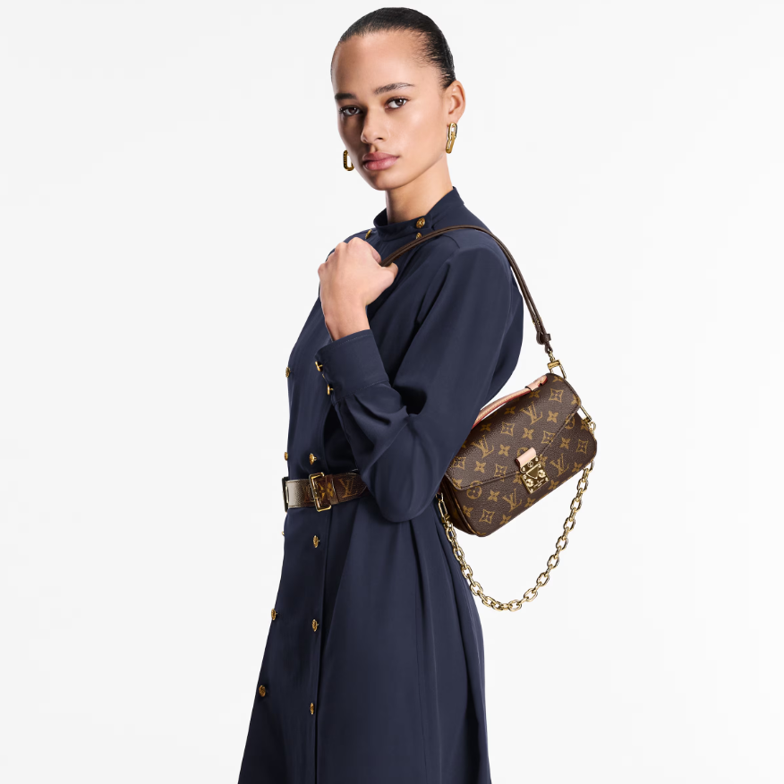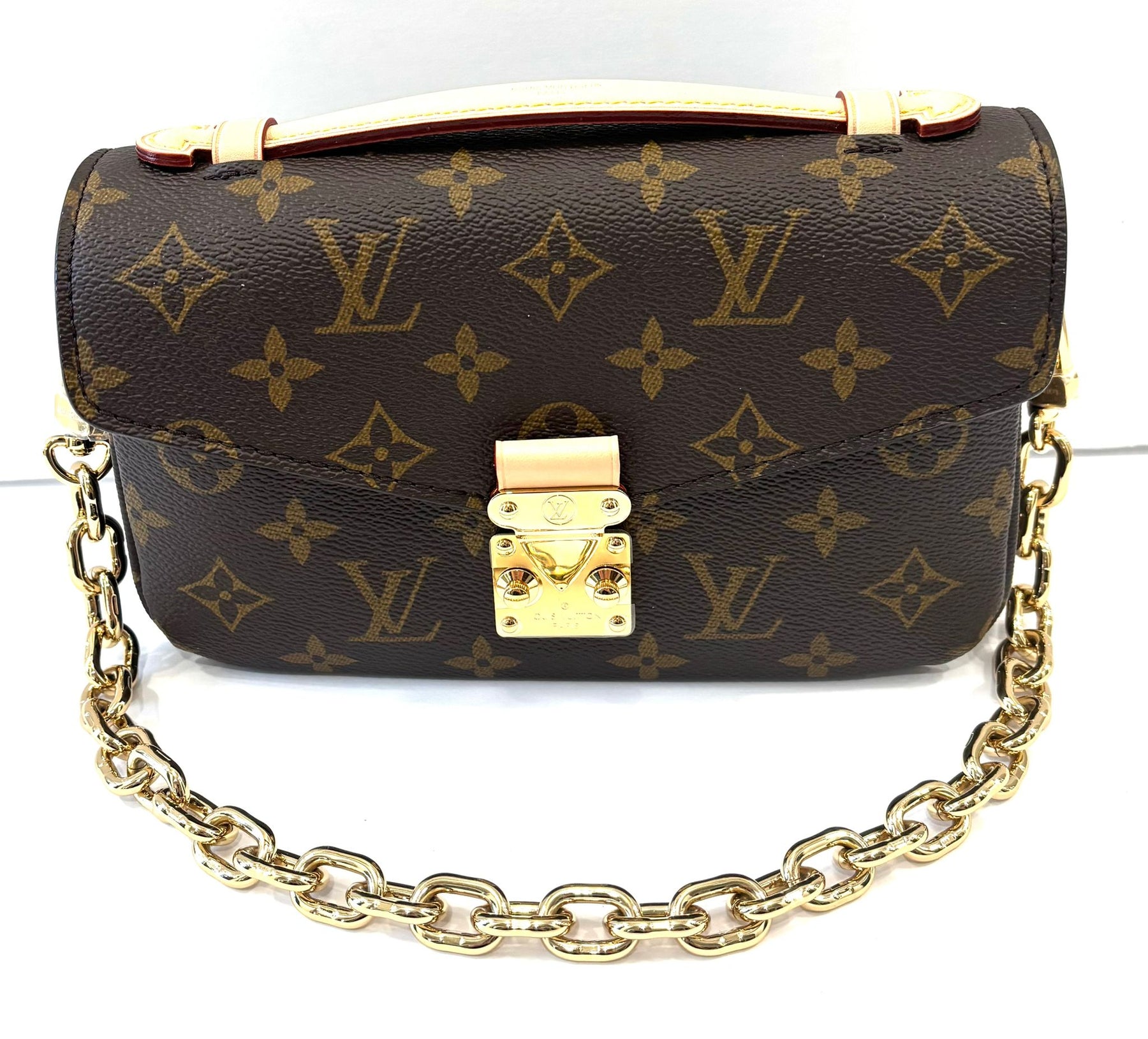 A modern reinterpretation of an iconic House design, the Louis Vuitton Pochette Métis East West combines timeless Monogram canvas with contemporary elegance. Crafted in coated Monogram canvas and accented with natural cowhide-leather trim, this compact yet functional bag is finished with the signature S-lock closure and polished gold-tone hardware.