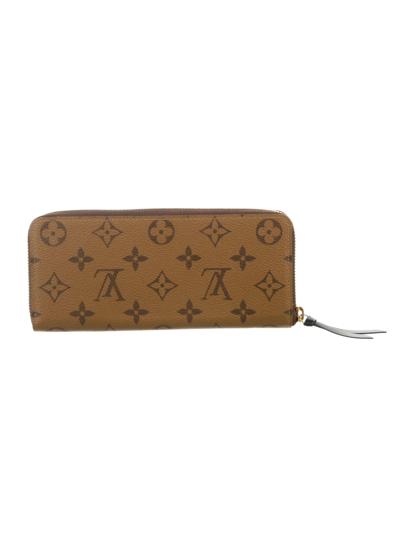 The Louis Vuitton Reverse Monogram Portefeuille Clémence Wallet combines timeless design with modern sophistication. Crafted in Monogram Reverse coated canvas, this elegant and slim wallet features a secure zip-around closure and refined detailing.