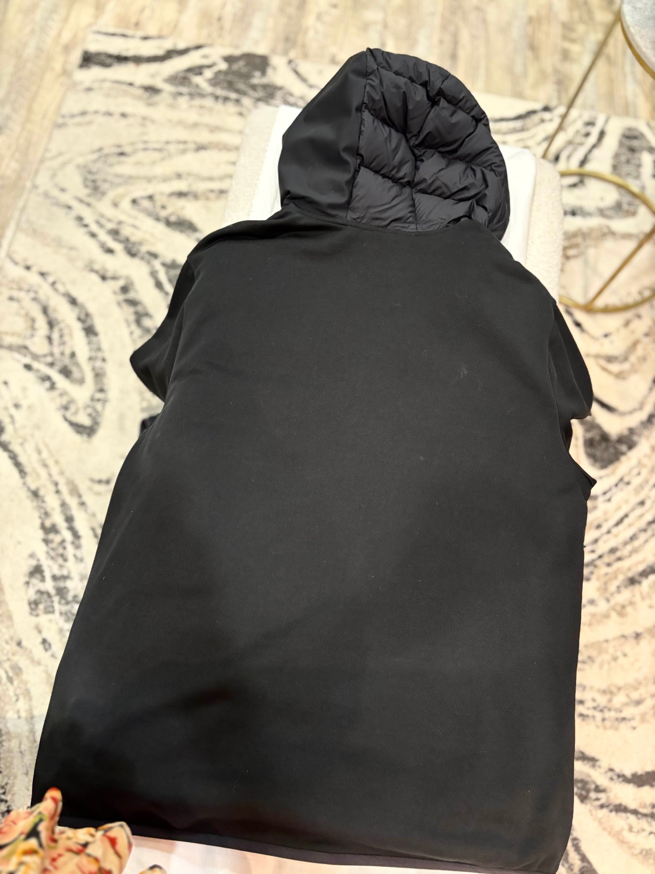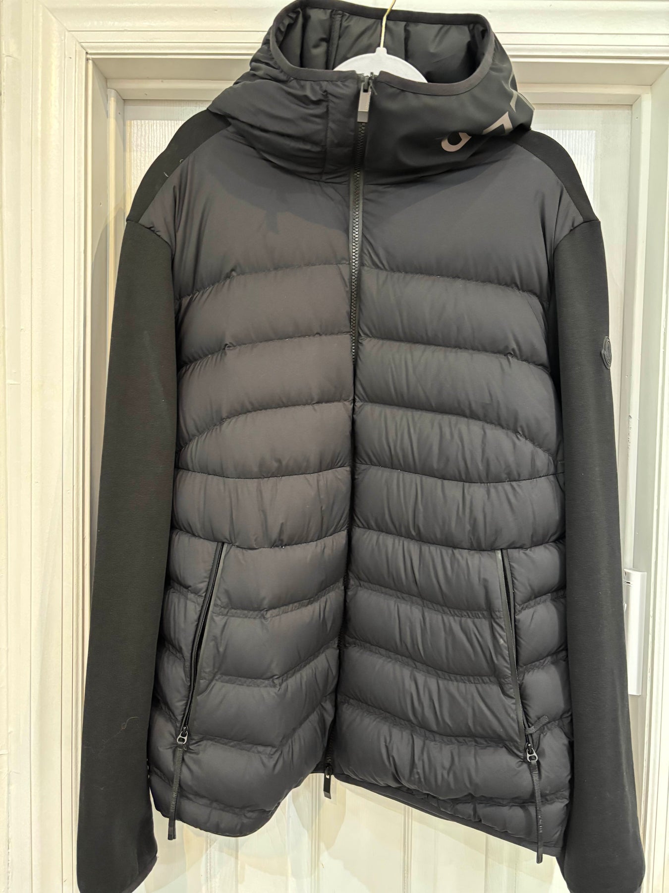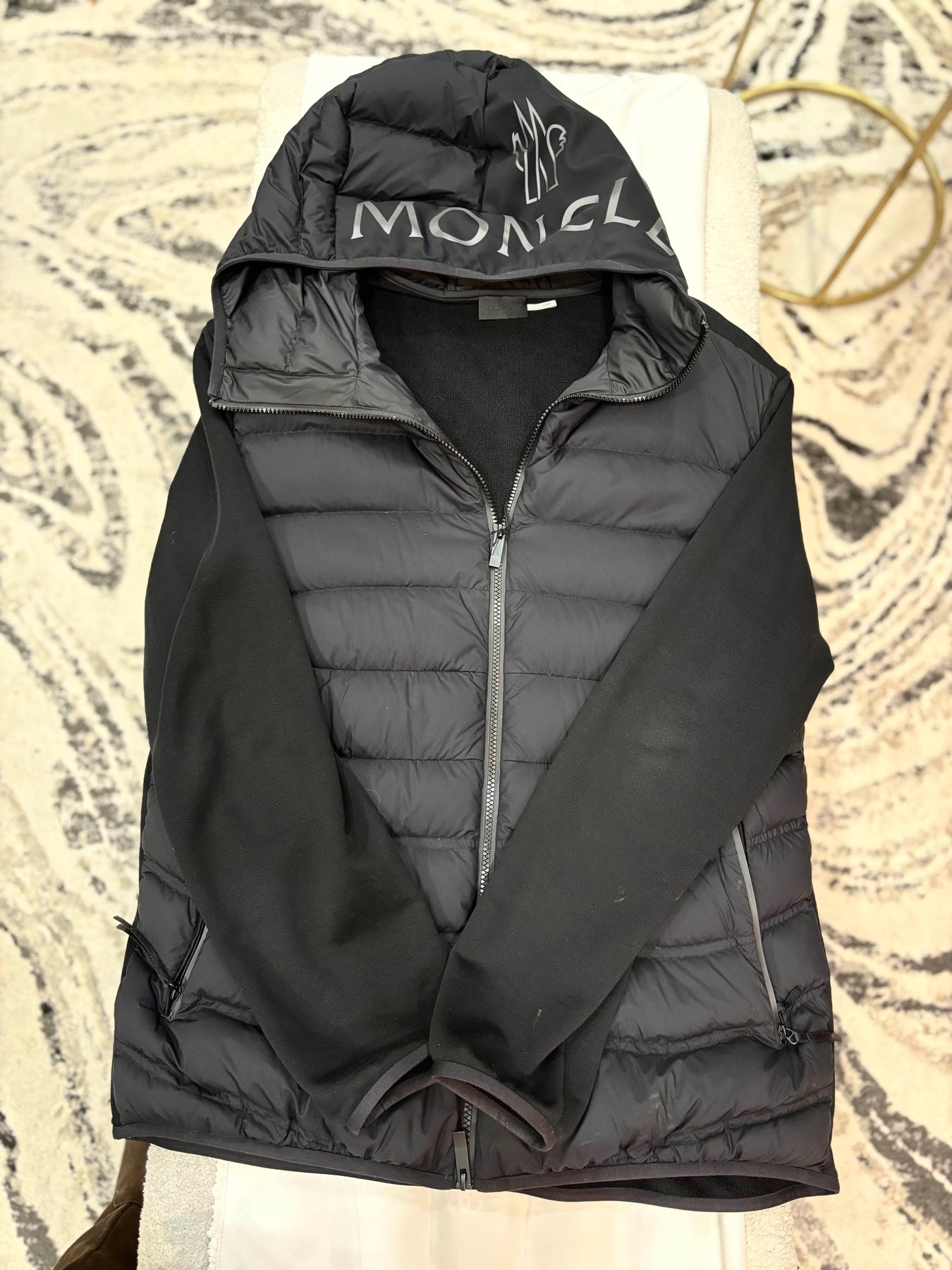 Elevate your outerwear with this premium Moncler men’s hybrid jacket, combining the warmth of a down-filled body with the comfort and flexibility of soft-knit sleeves. Designed for everyday wear with signature luxury detailing, this jacket delivers both functionality and refined style.