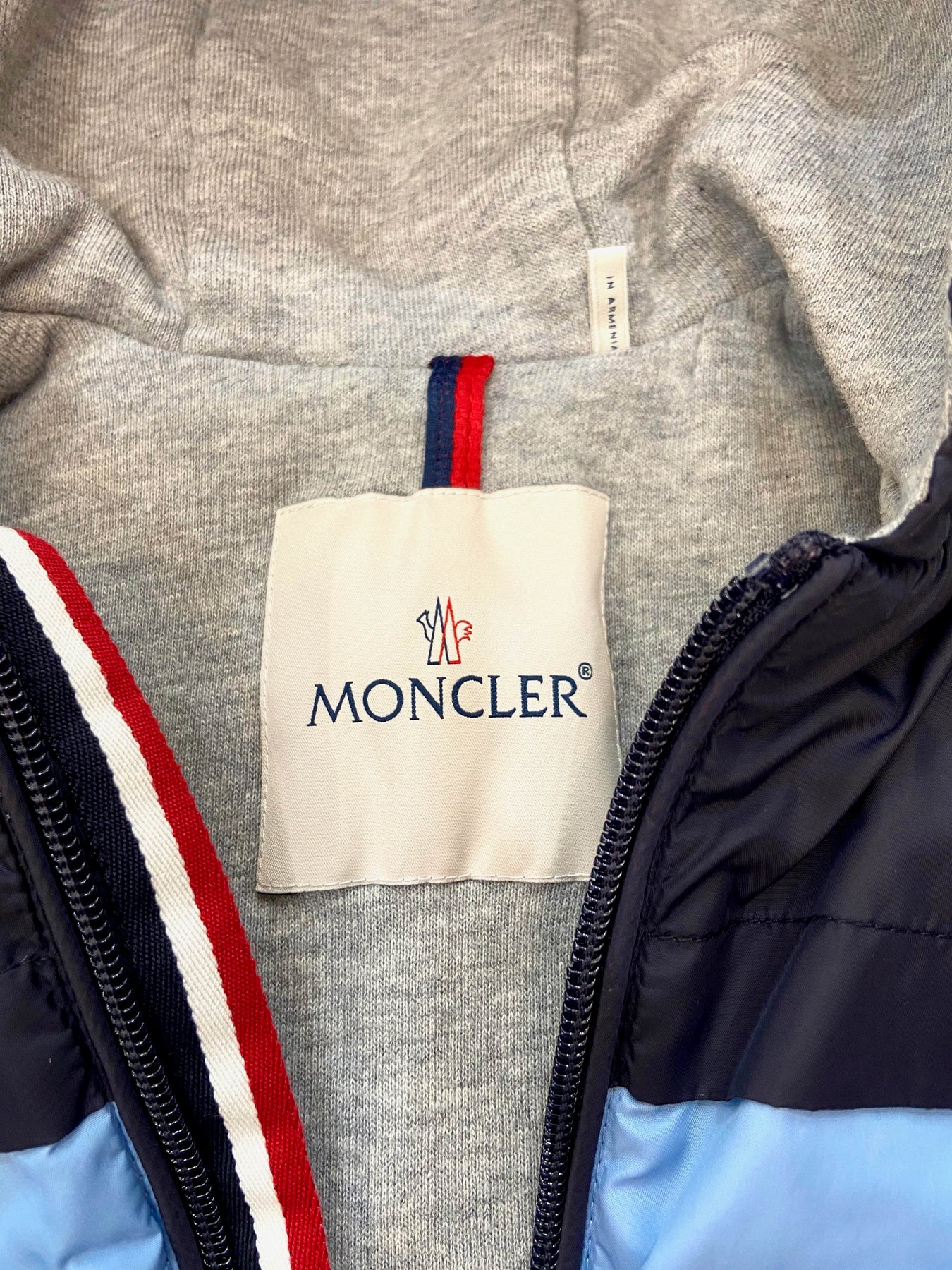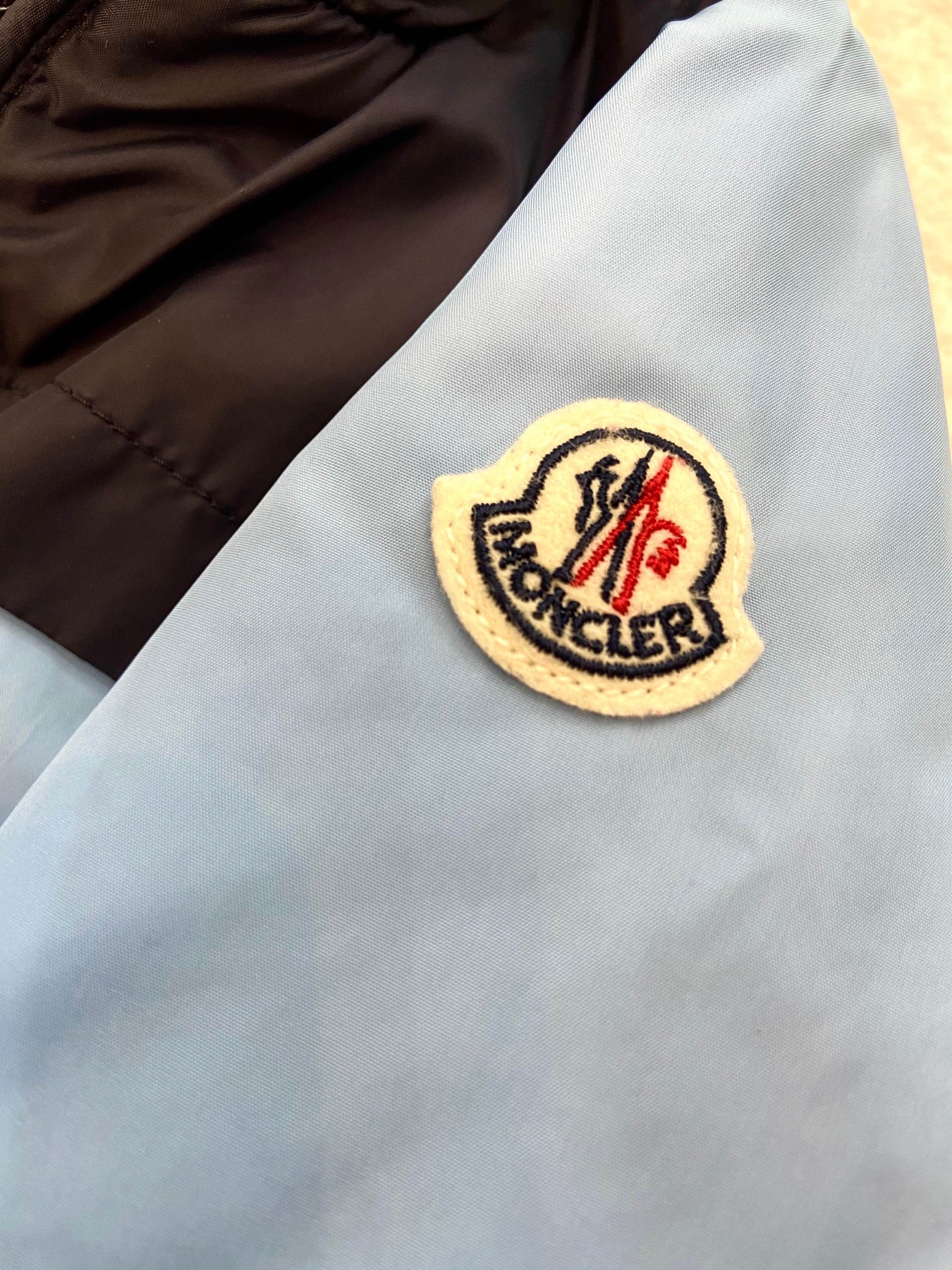 Signature Moncler logo patch on sleeve