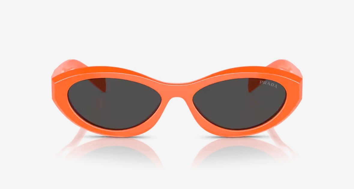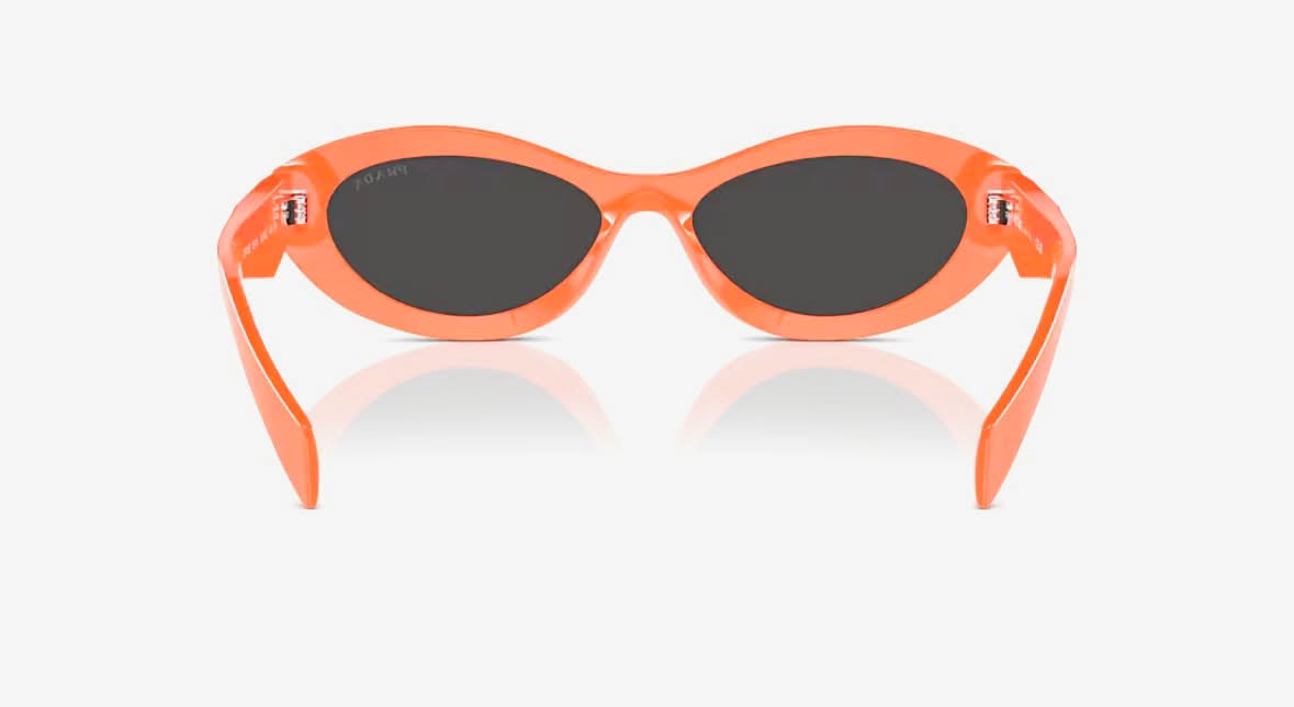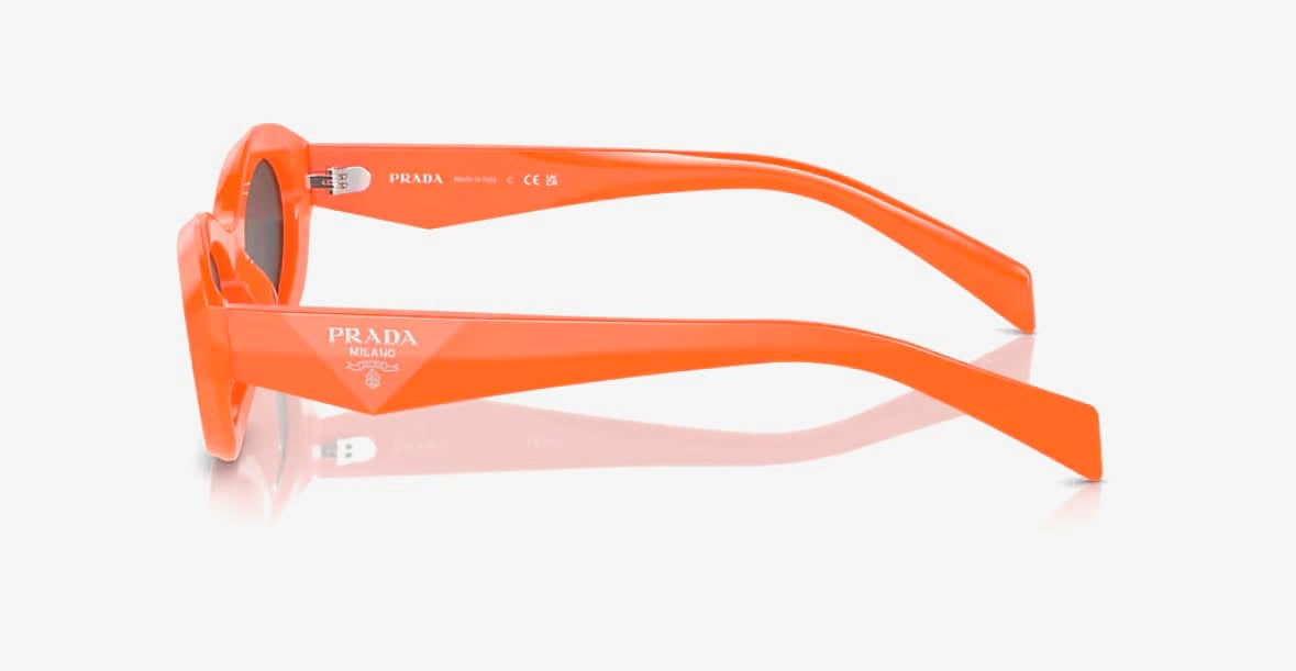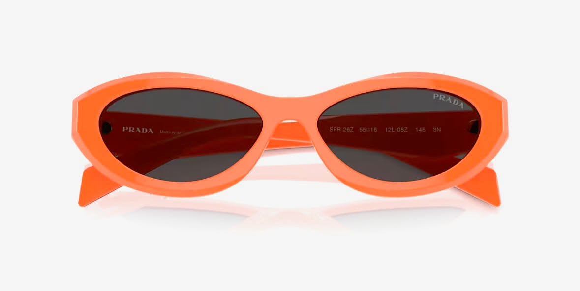 The narrow acetate frame is accented with faceted temples and Prada’s signature triangular logo detail, showcasing the brand’s fashion-forward heritage and meticulous craftsmanship. Whether chosen in classic tones like black or tortoiseshell, or in bold color options such as orange or sage honey tortoise, these sunglasses bring a chic, modern edge to your wardrobe.