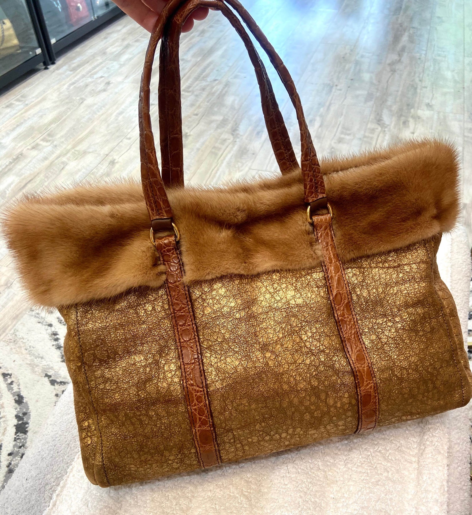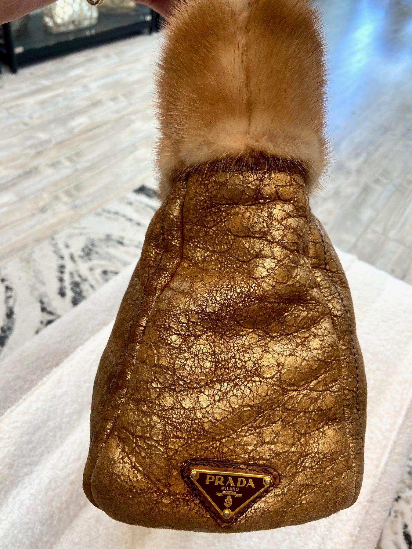 PRADA SHEARLING MINK TRIM TOTE